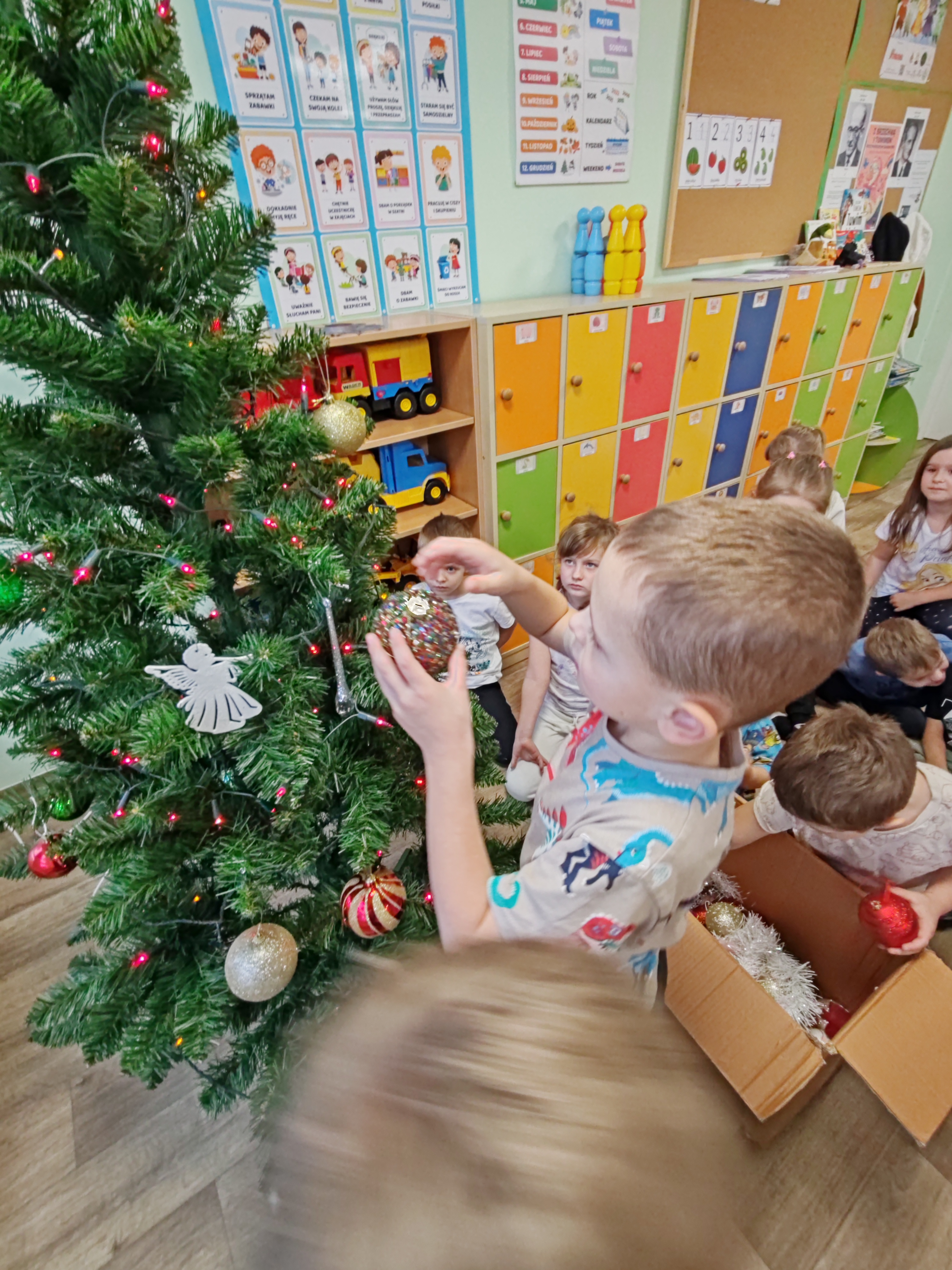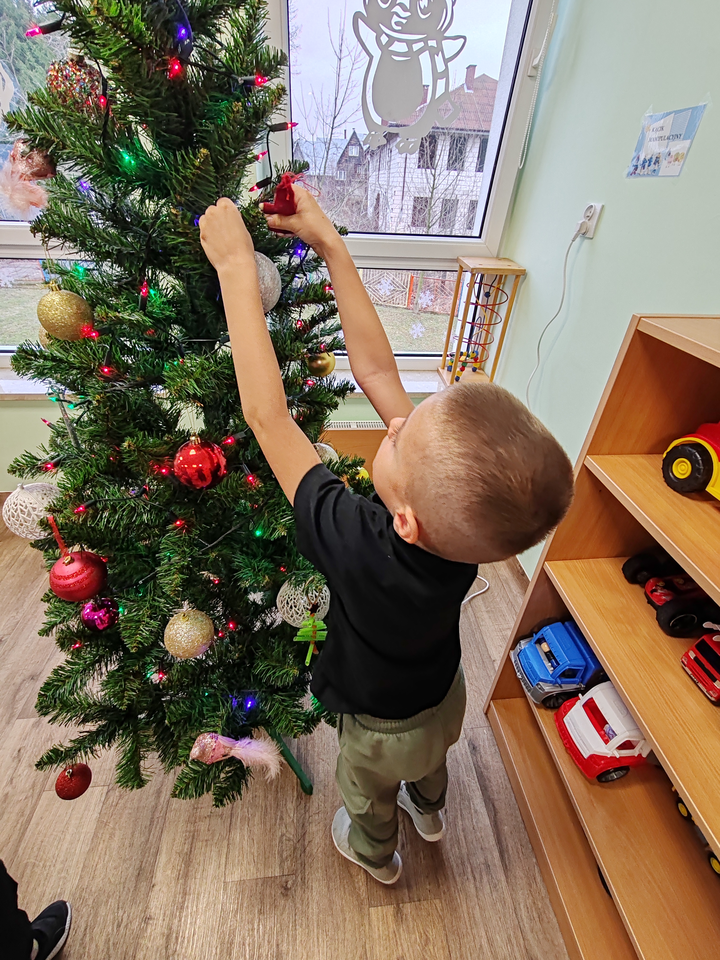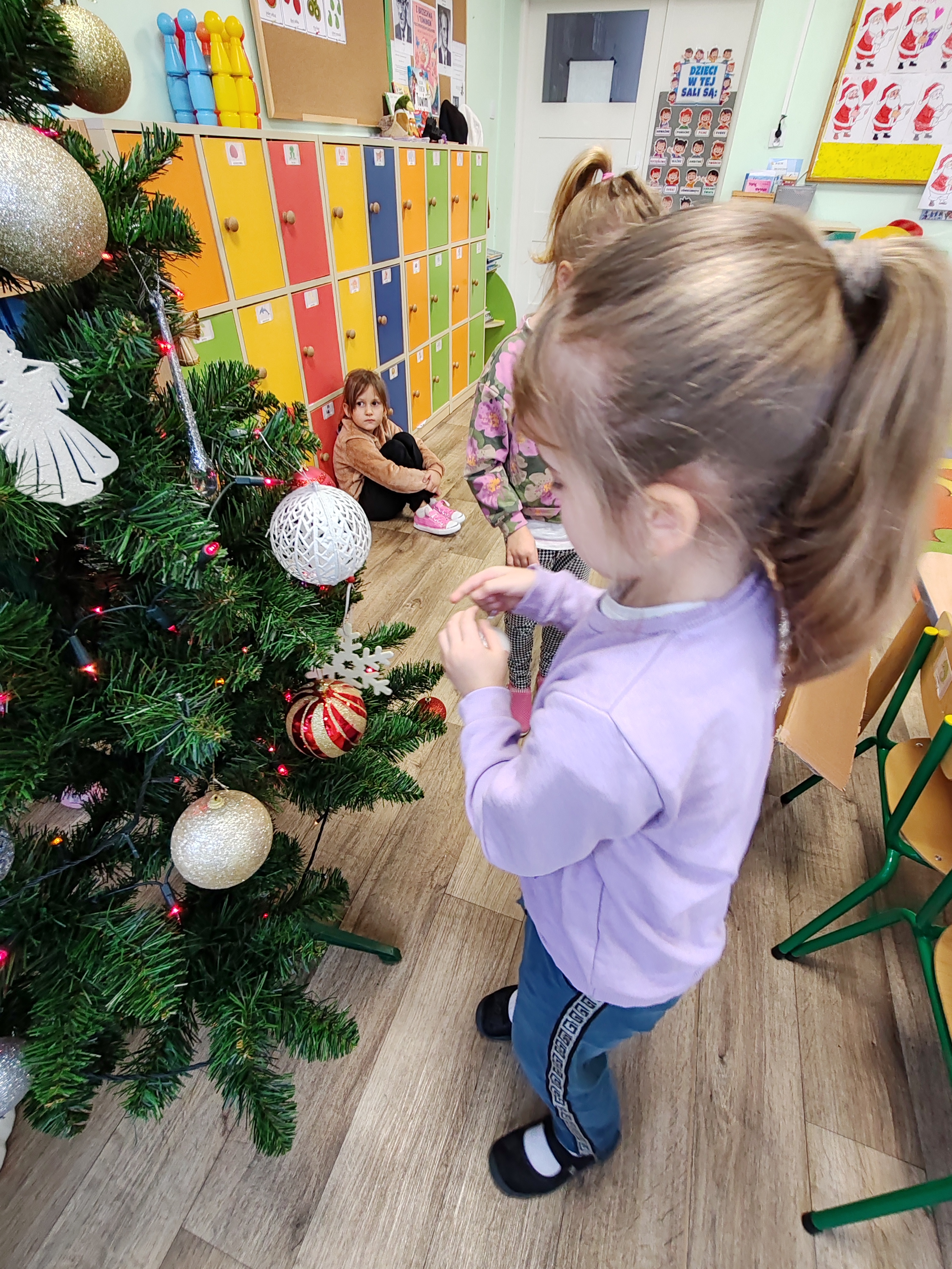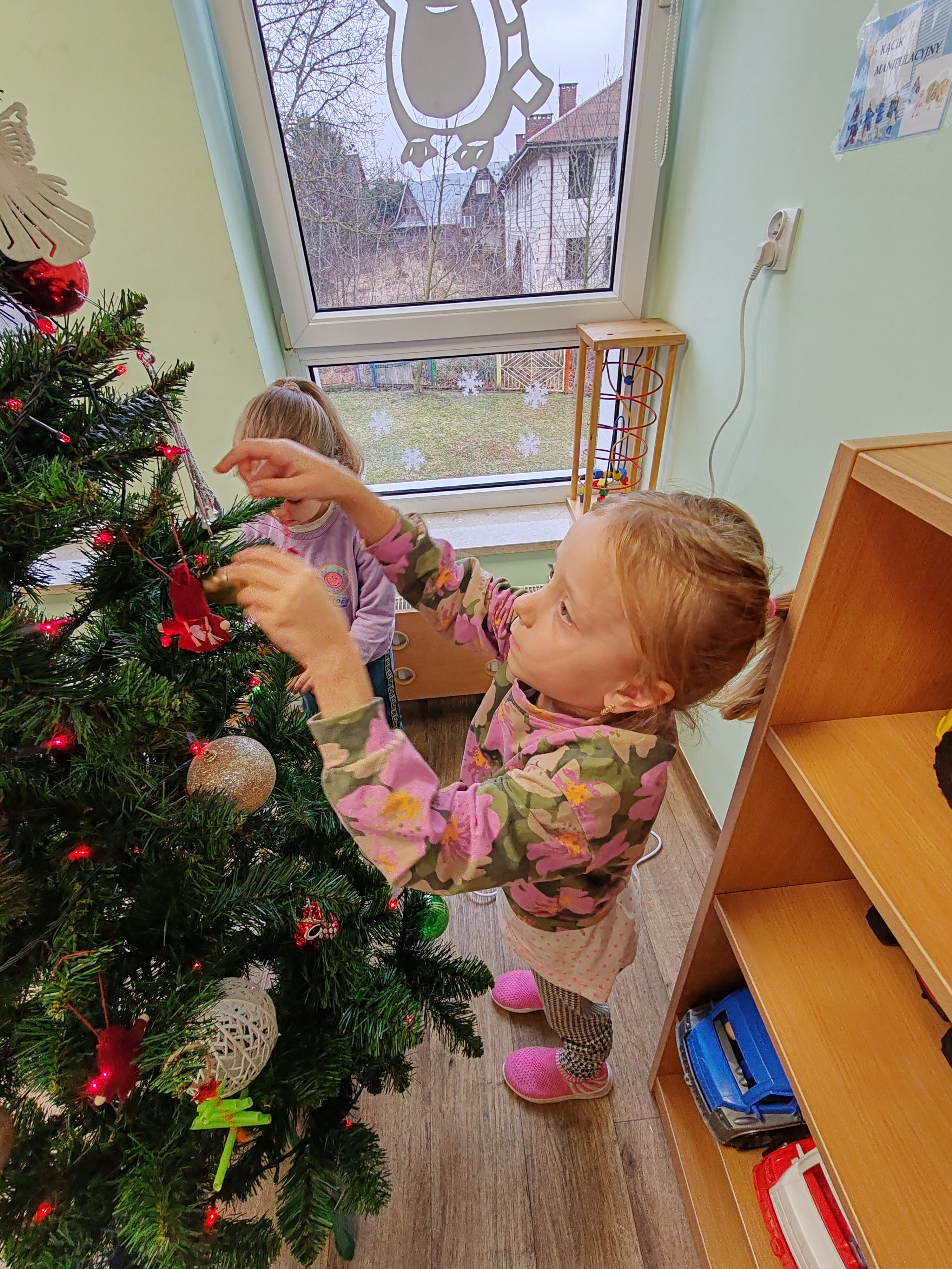 Dzisiaj wspólnie powiesiliśmy ozdoby i światełka na naszej choince.