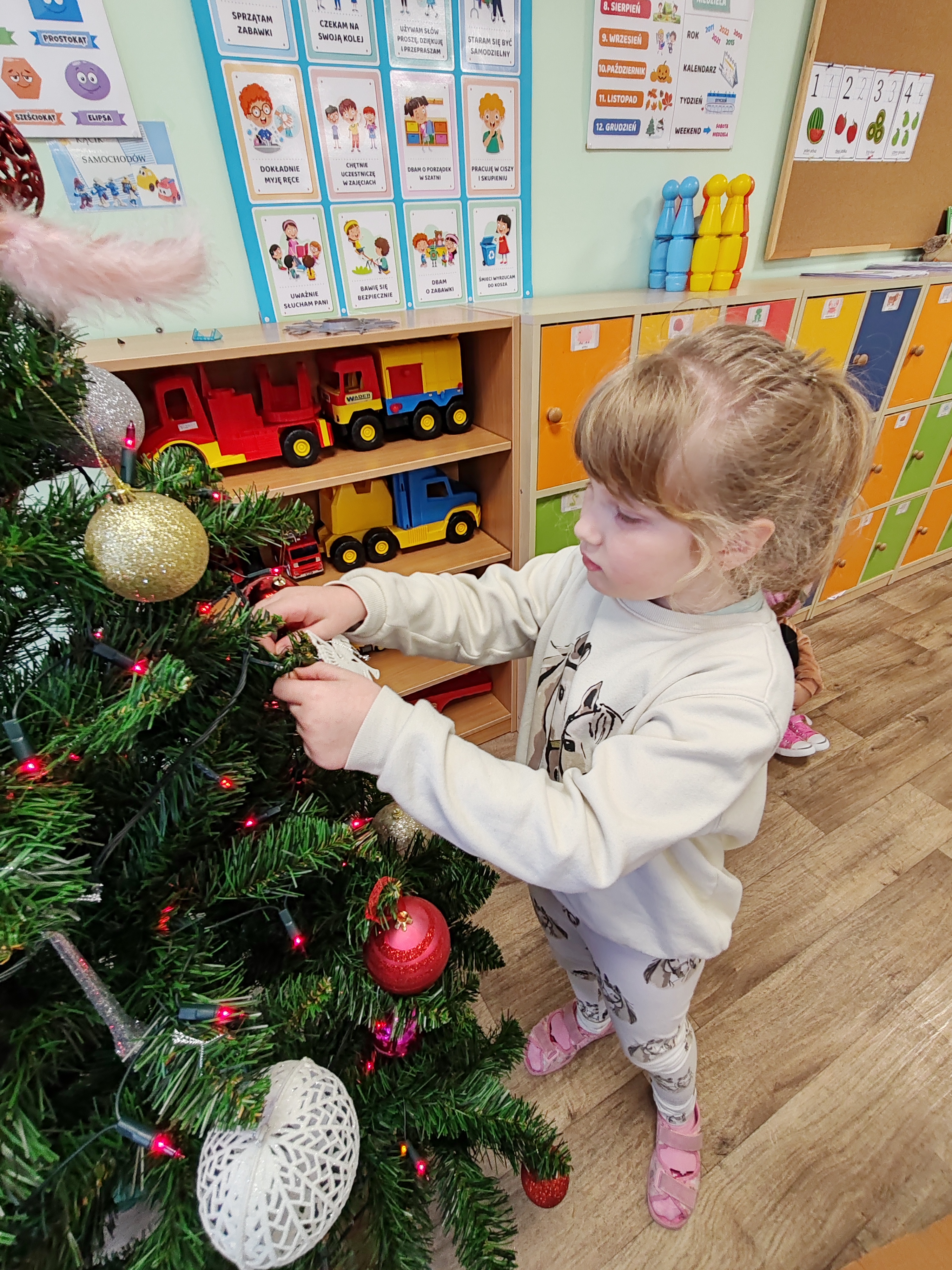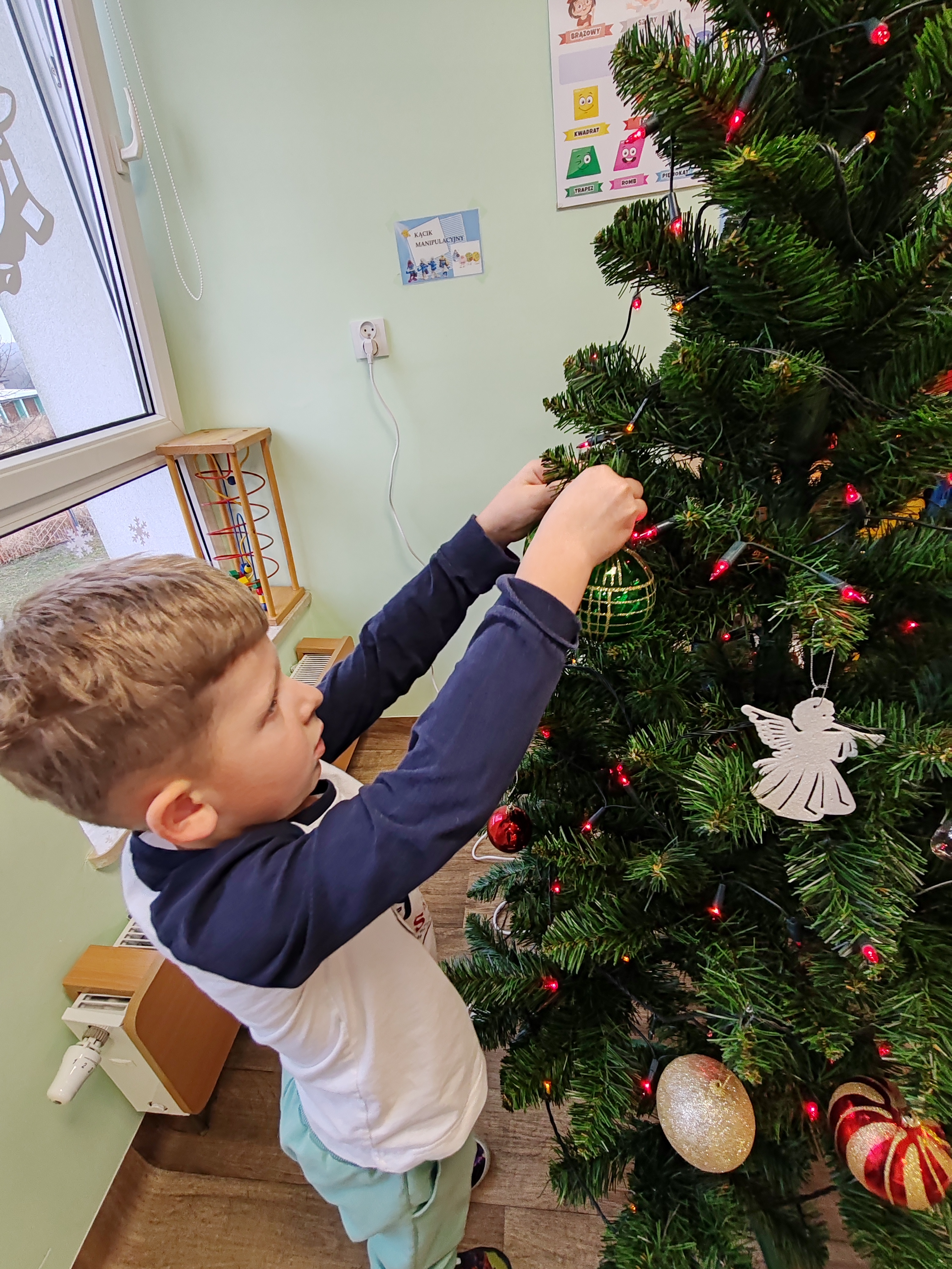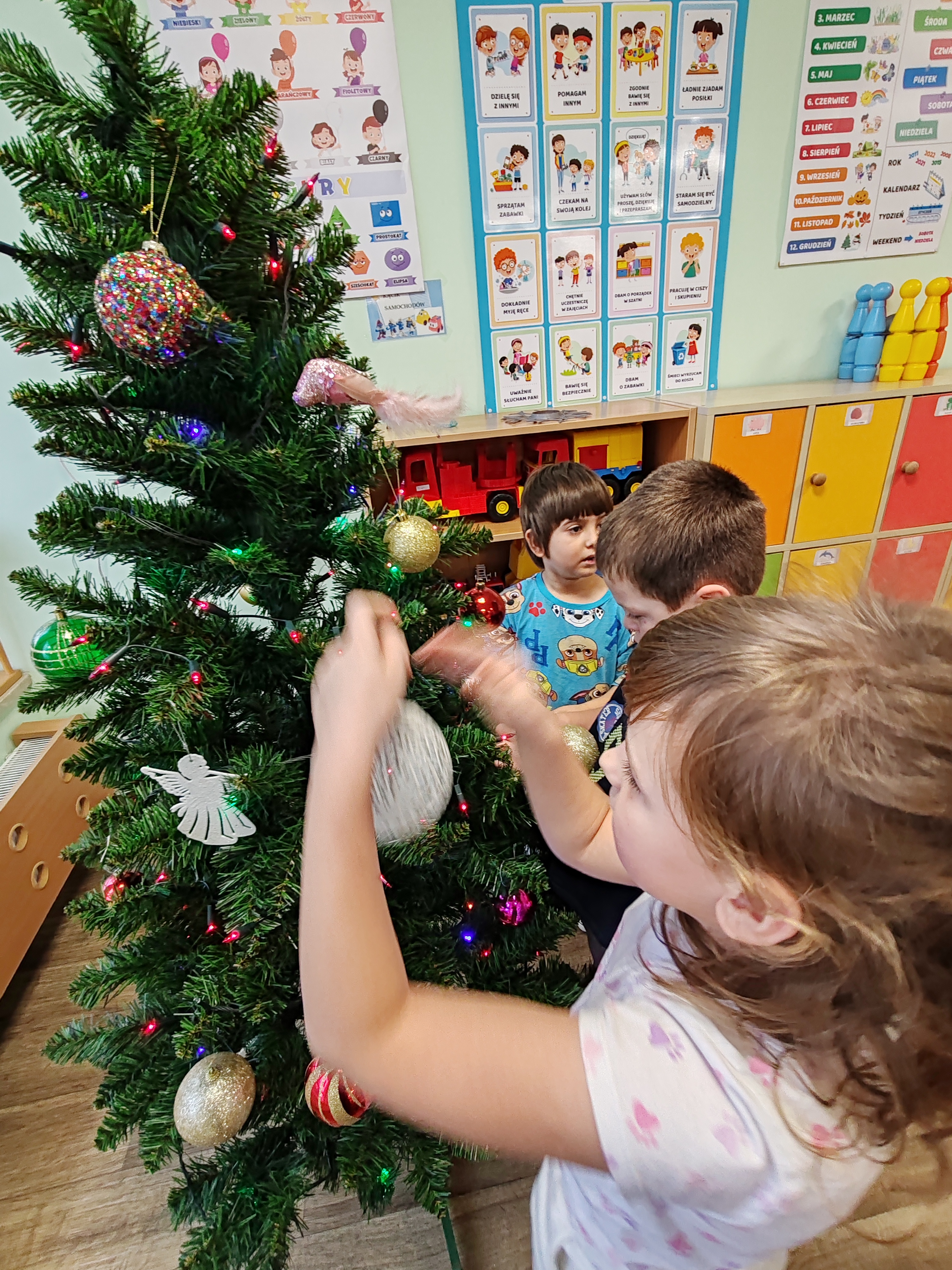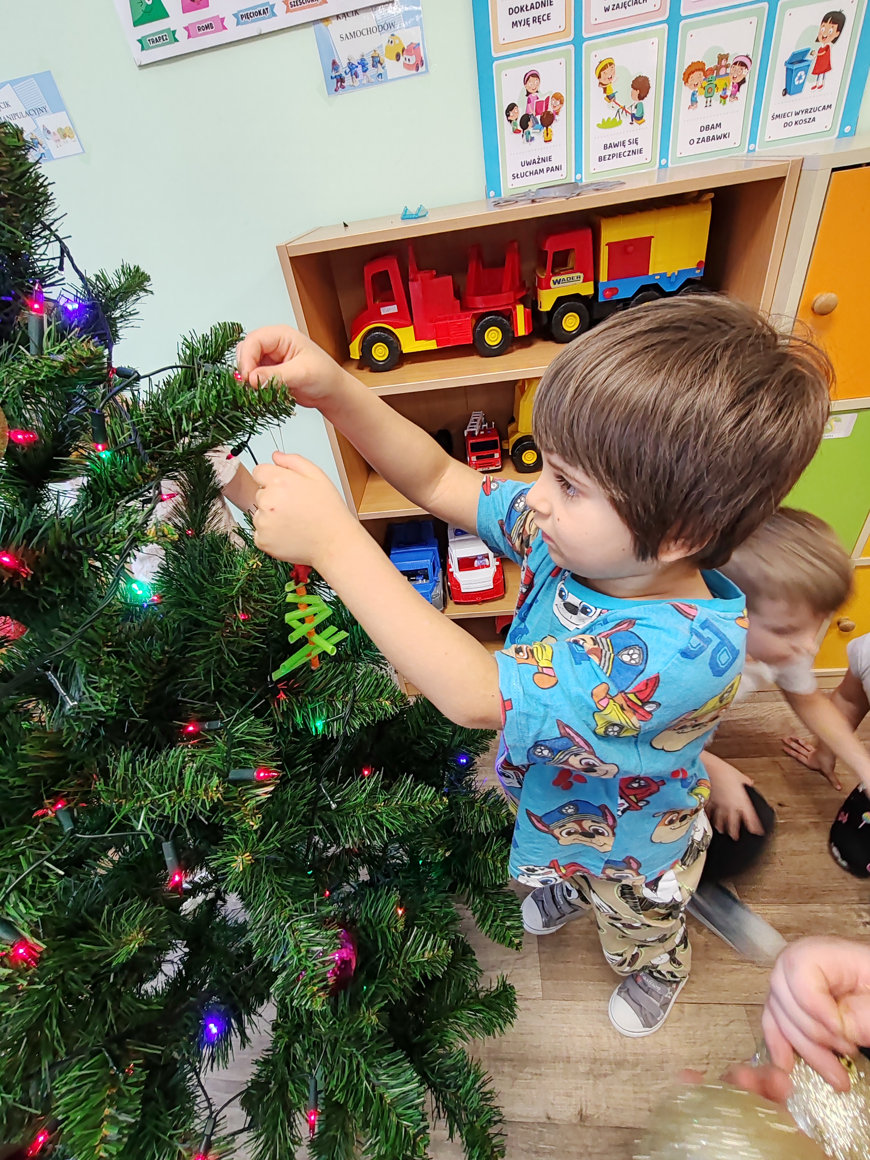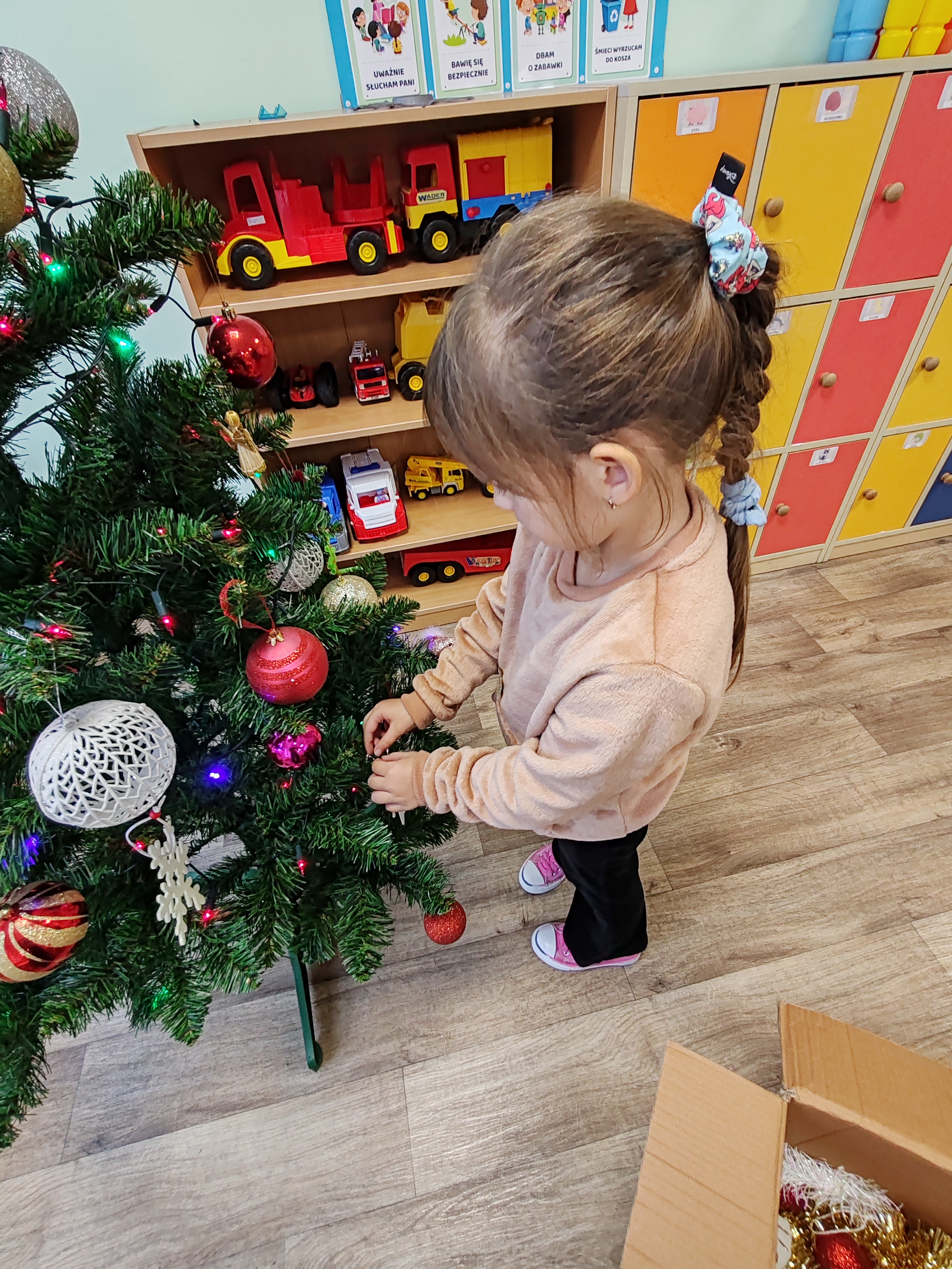 Dzisiaj wspólnie powiesiliśmy ozdoby i światełka na naszej choince.