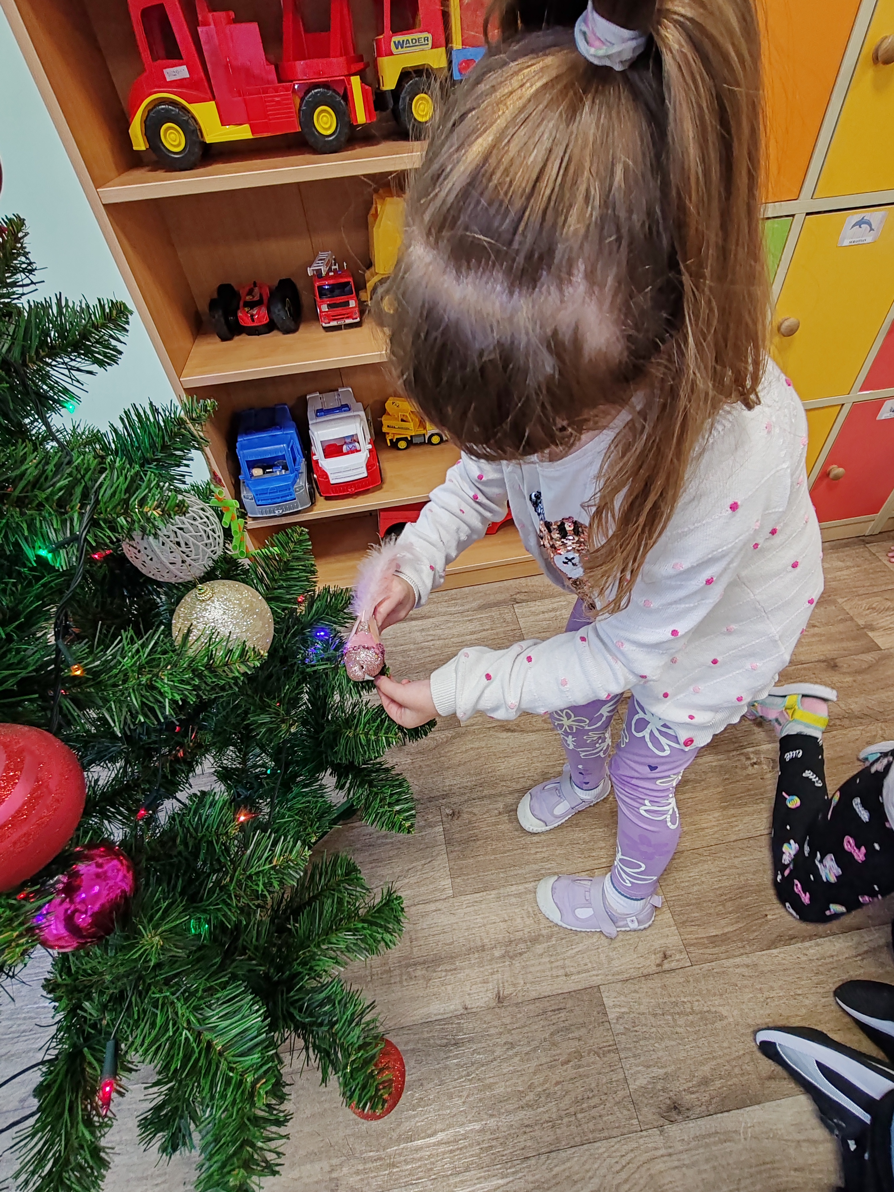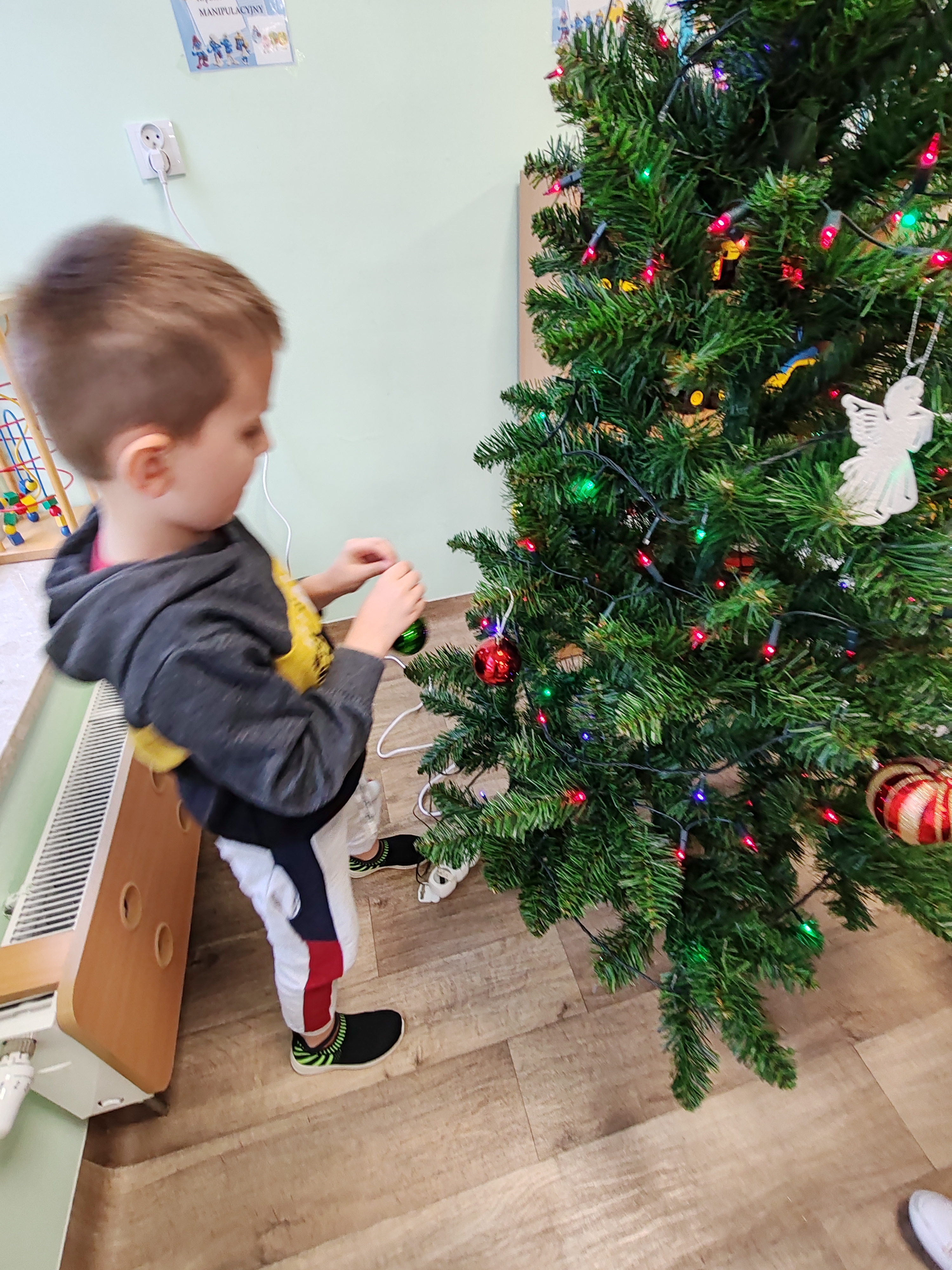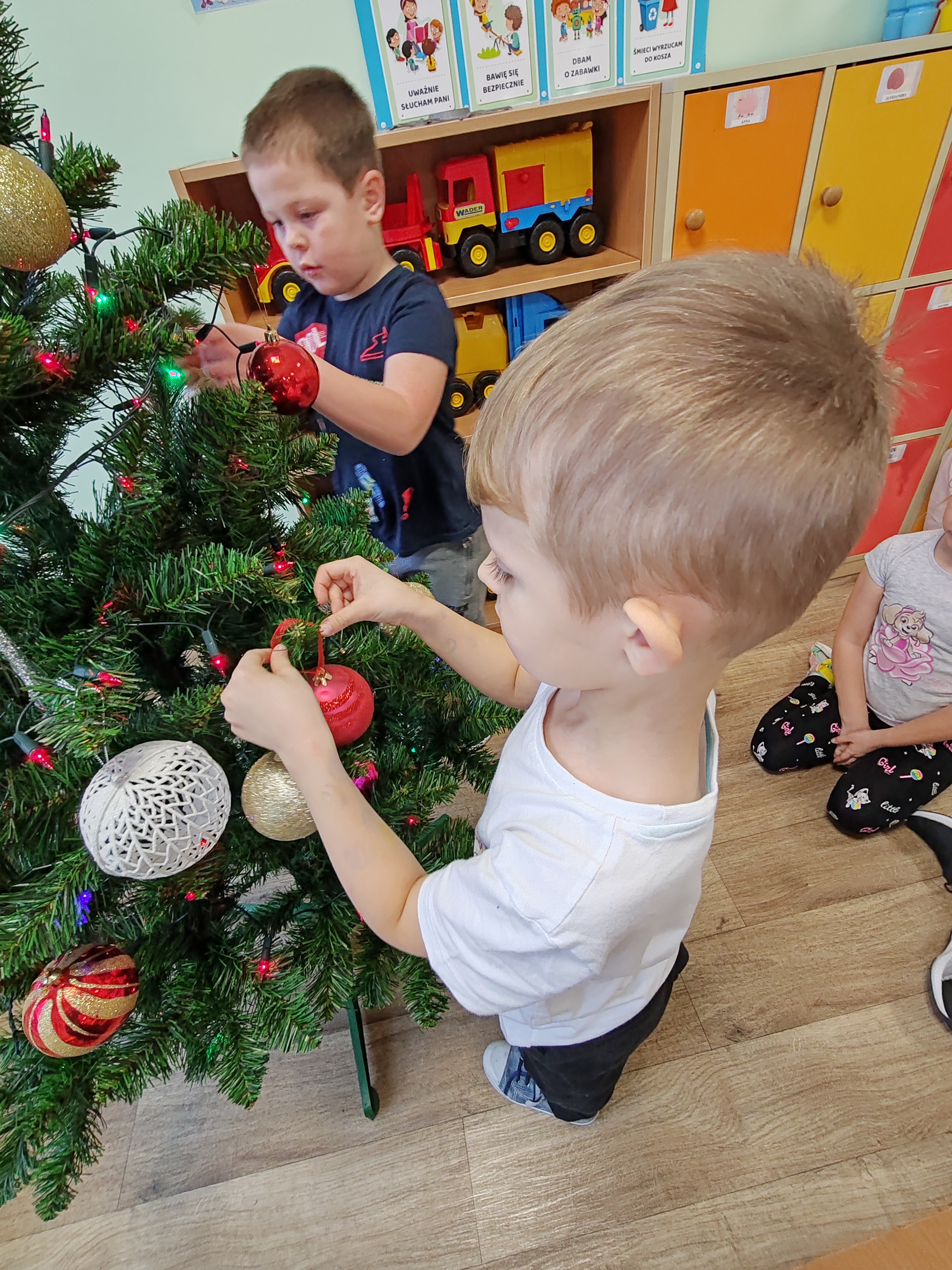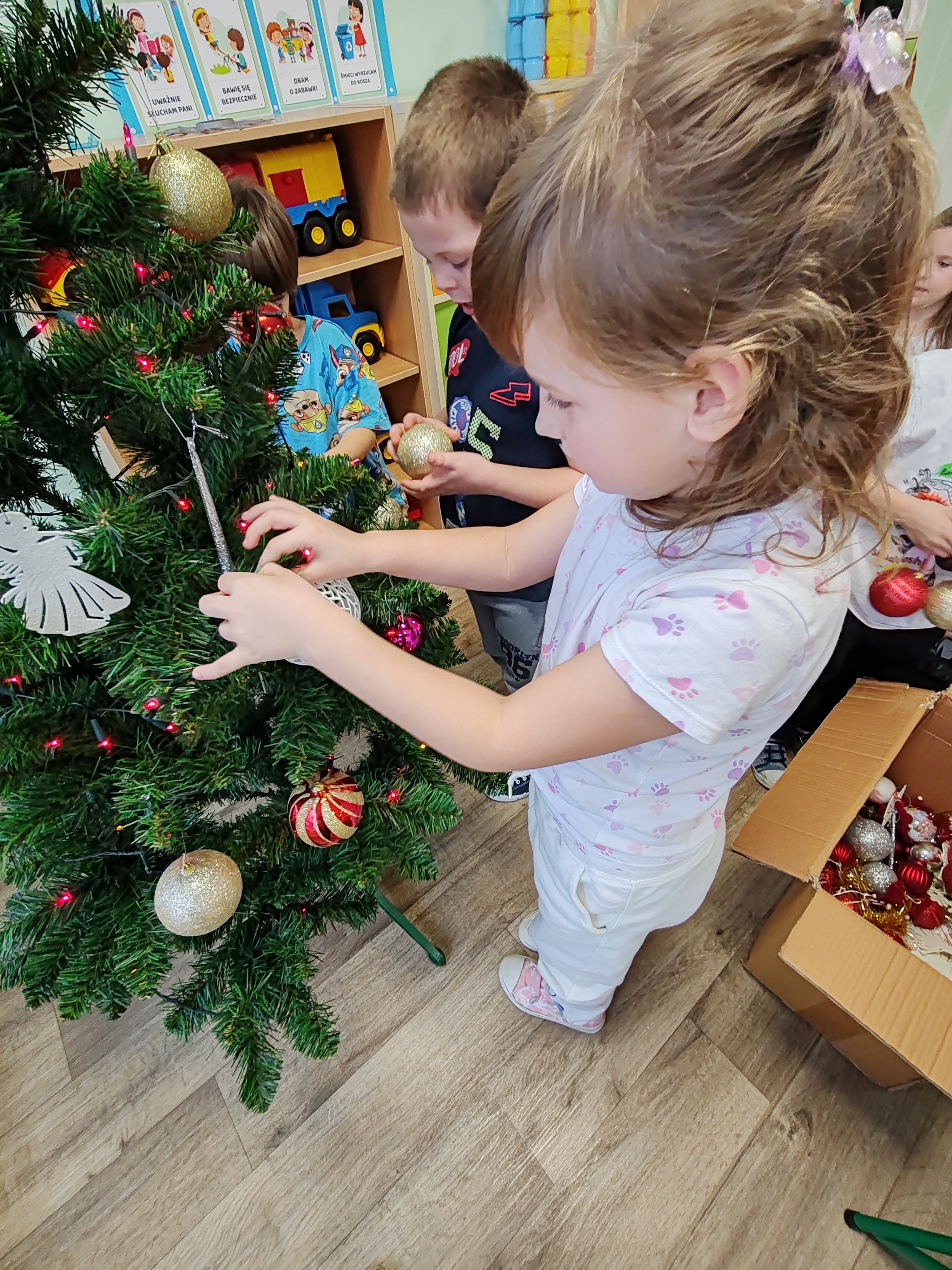 Dzisiaj wspólnie powiesiliśmy ozdoby i światełka na naszej choince.
