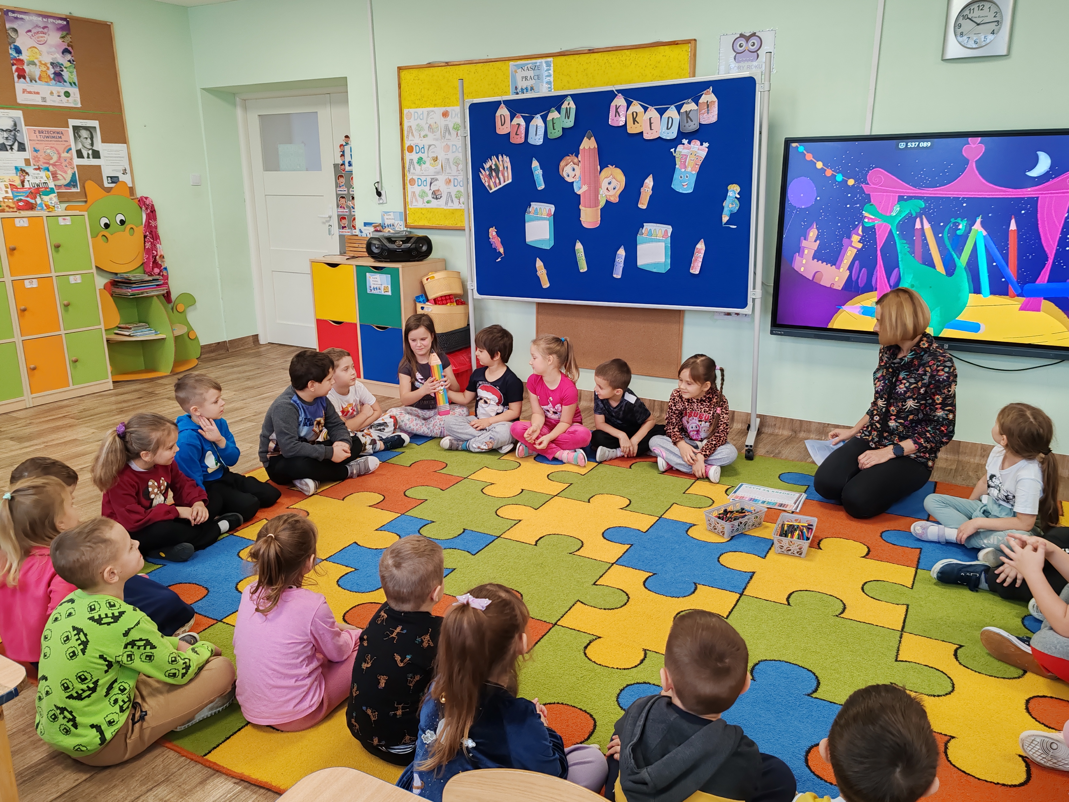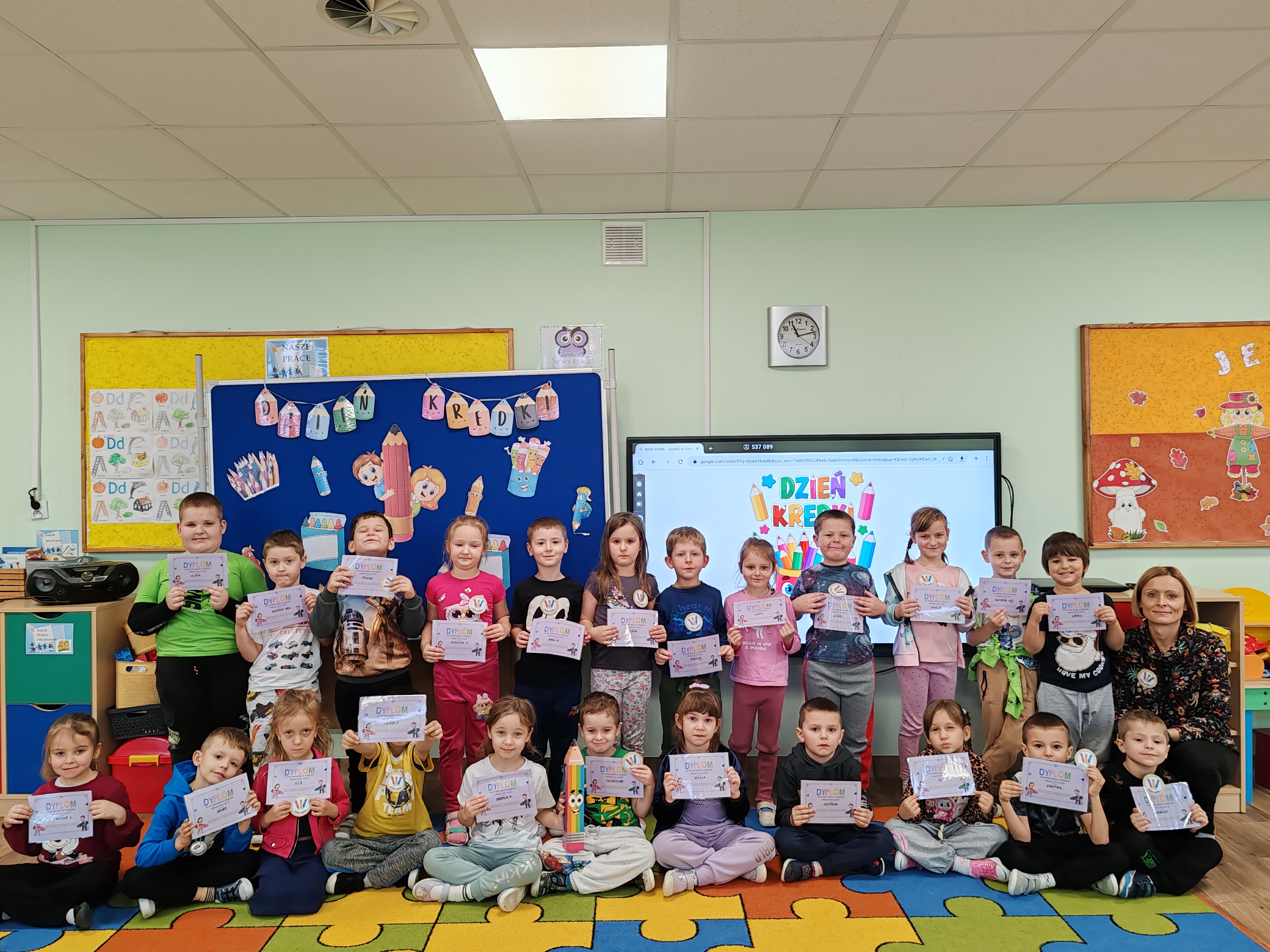 Dzisiaj w Naszej grupie obchodziliśmy Dzień Kredki. Śpiewaliśmy piosenkę o kredkach, bawiliśmy się kredkami, poznaliśmy Bajkę o żółtej kredce.