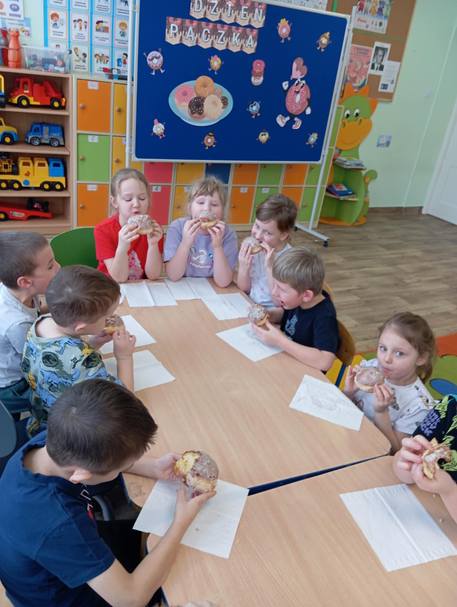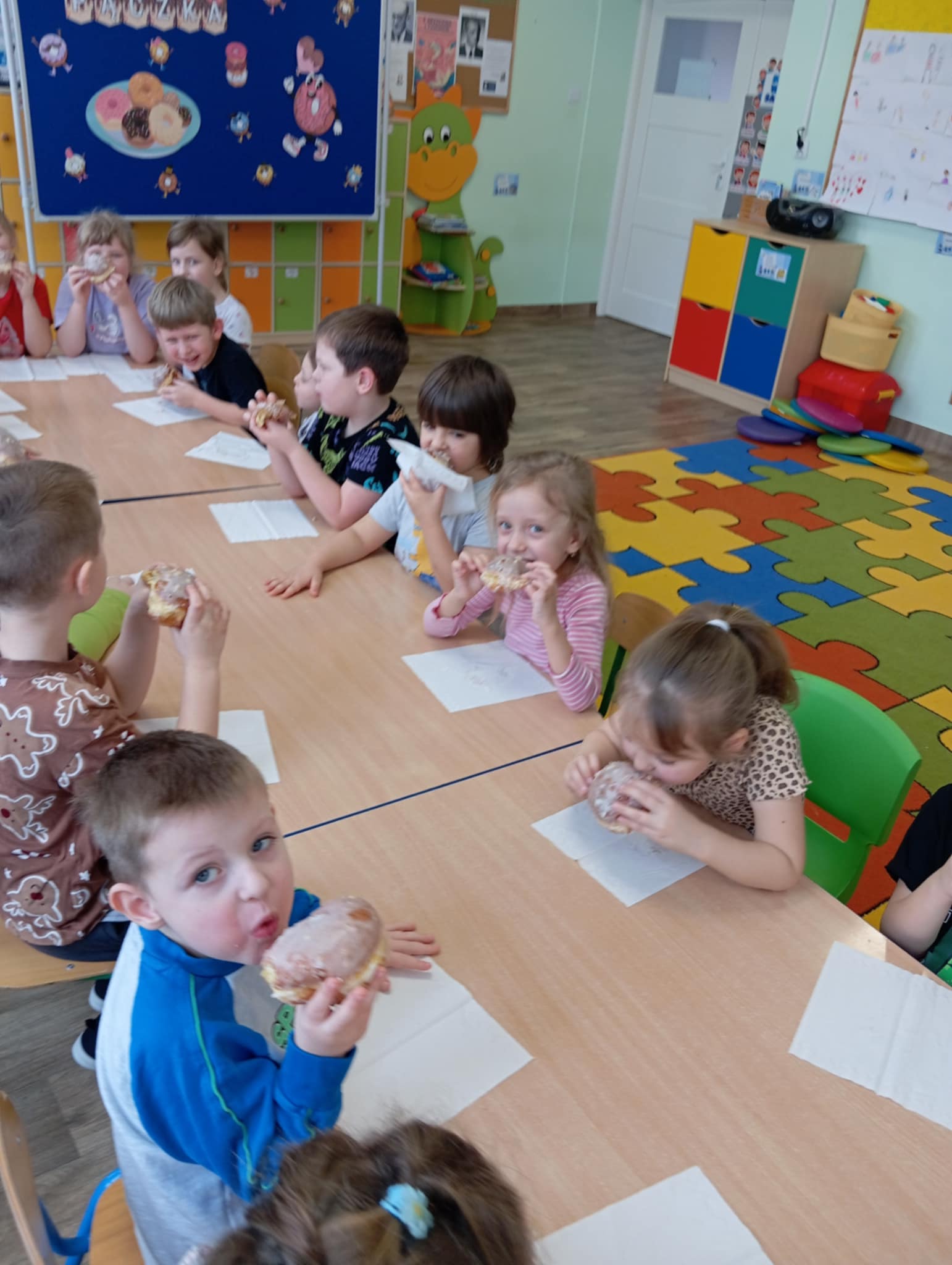 12 lutego Smerfy i Biedronki obchodziły Dzień Pączka. Dzieci bawiły się z pączkiem, brały udział w matematycznych zabawach pączkowych, obejrzały film o pączku i wykonały pracę plastyczną. Zajęcia zakończyły się zjedzeniem pysznych pączków.