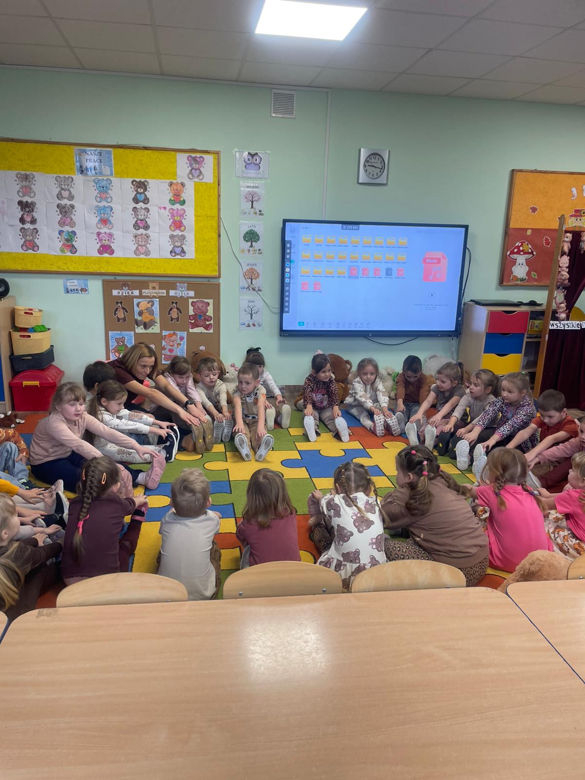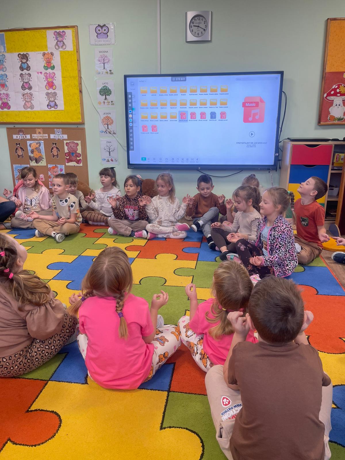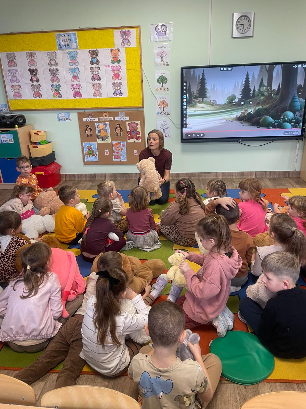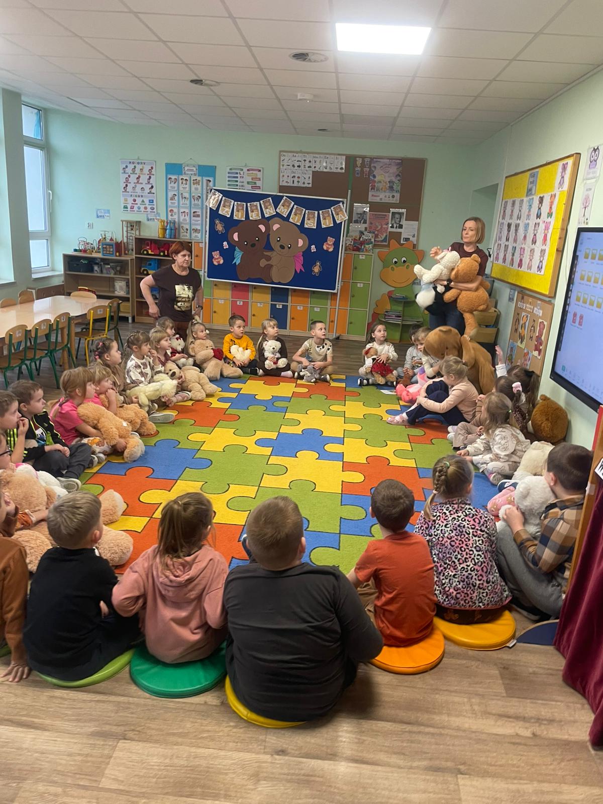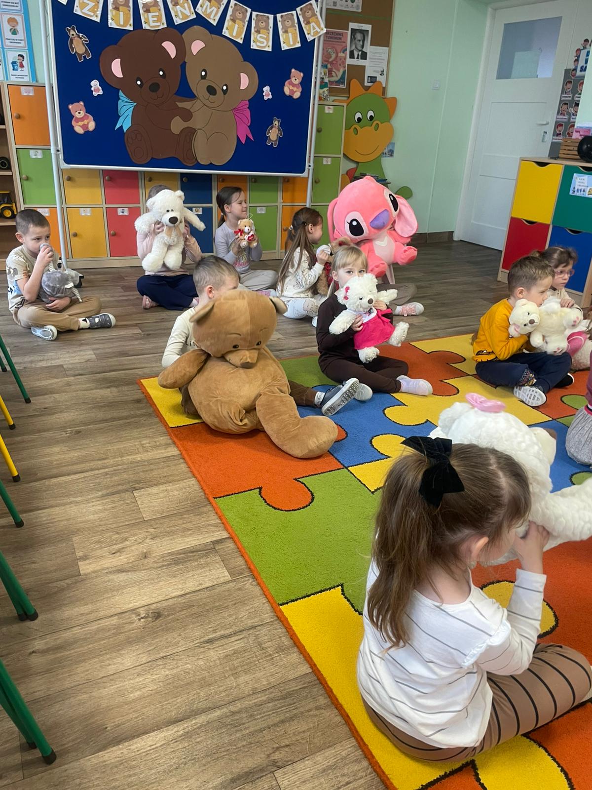 Biedronki i Smerfy świętowały Dzień Pluszowego Misia. Dzieci na dobry początek przywitały się piosenką, następnie obejrzały film pt. "Historia Pluszowego Misia", relaksowaly się podczas "Misiowej jogi" oraz wykonały prace plastyczną. Na zakończenie otrzymały dyplomy, odznaki i zjadły pyszne pierniczki. To były bardzo udane zajęcia.