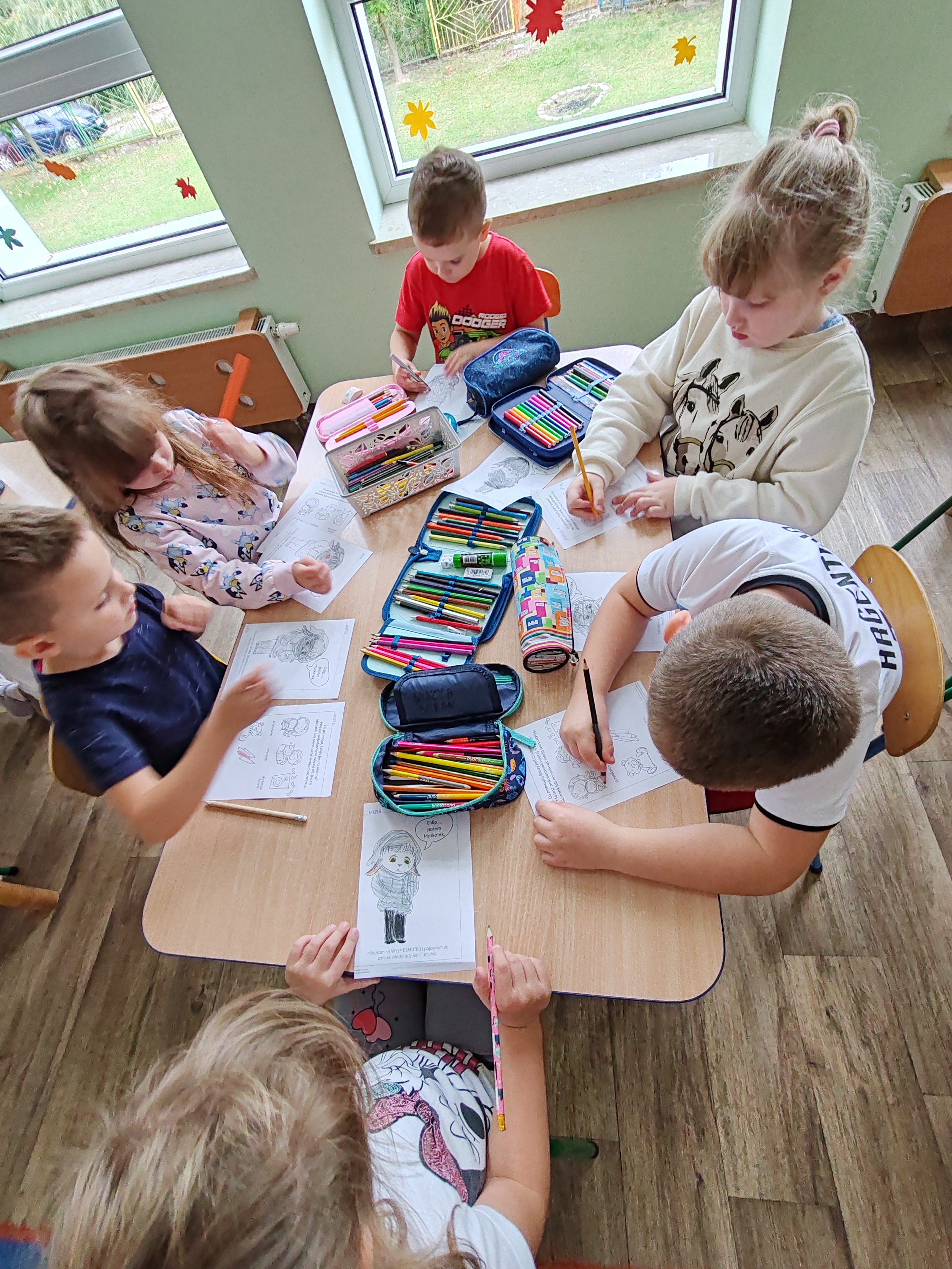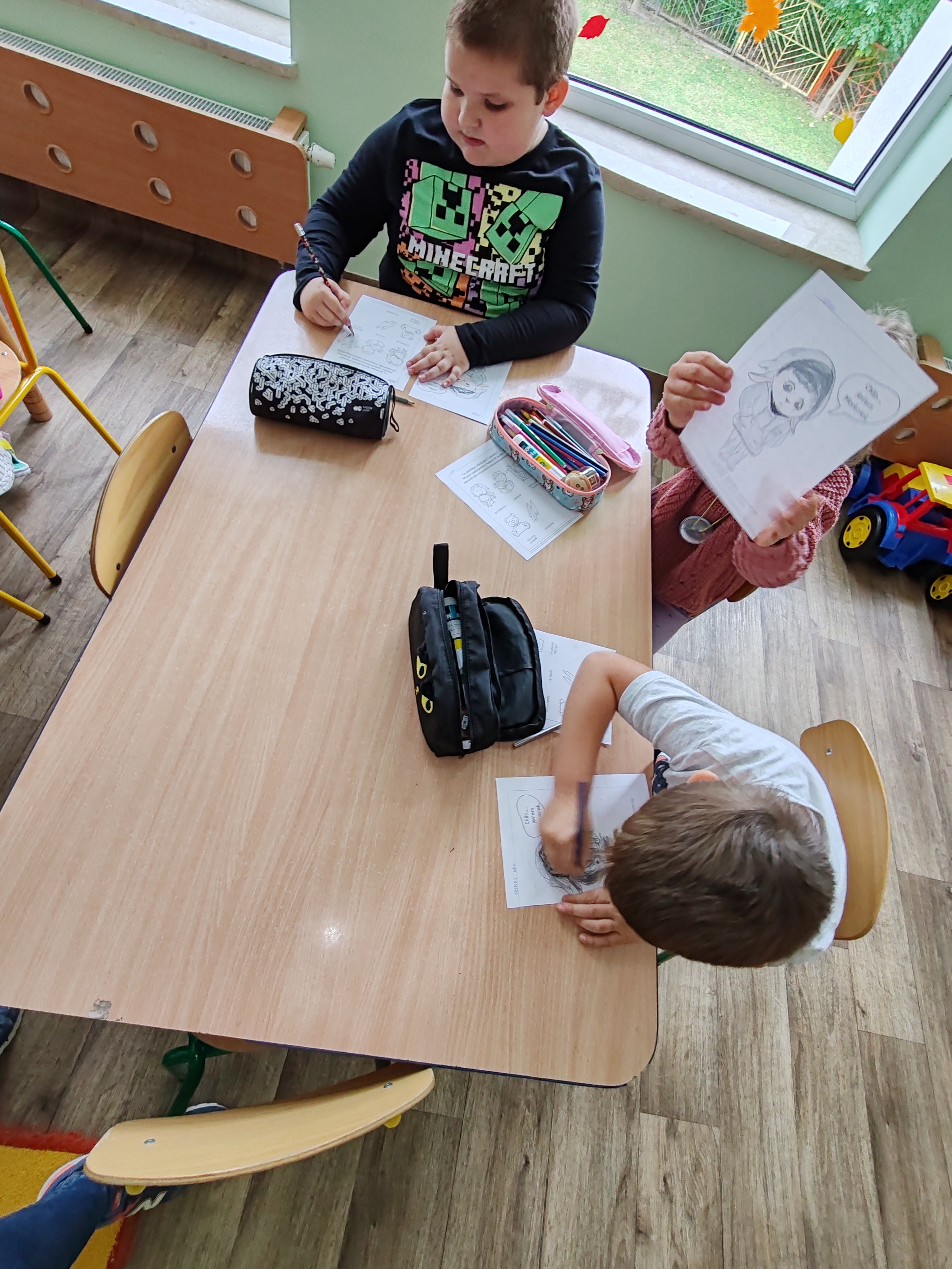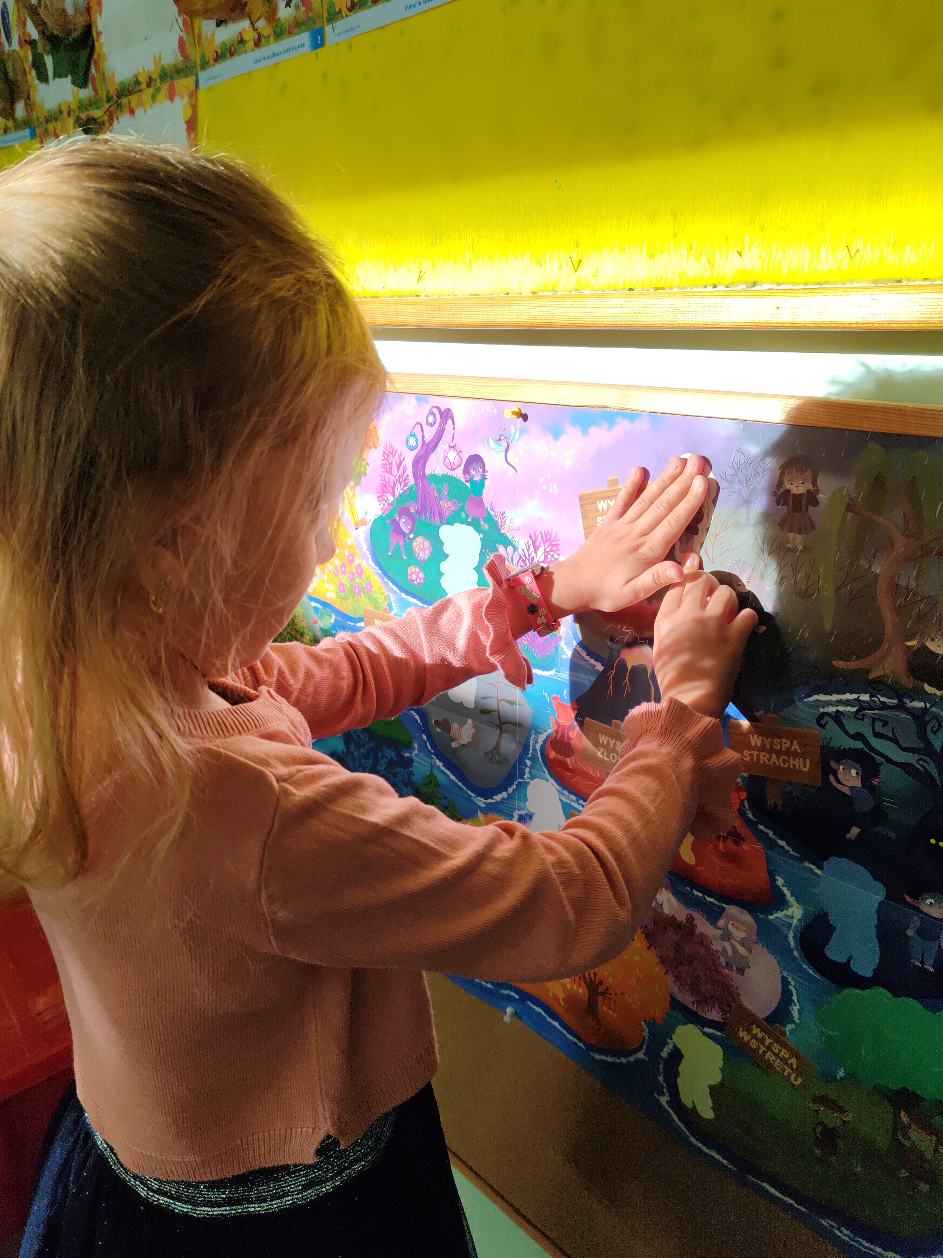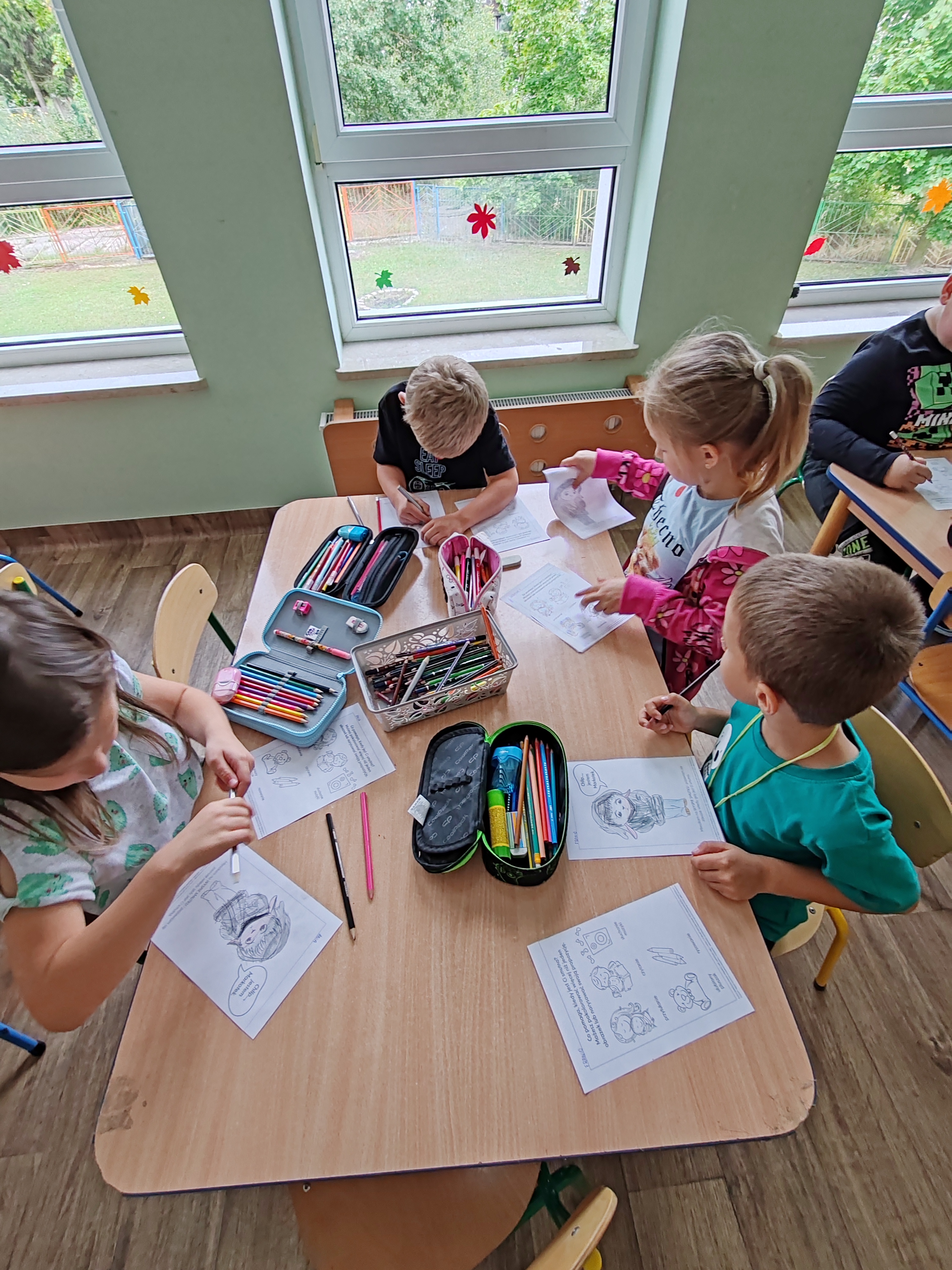 Przedszkolaki poznały nową emocję - smutek. Markotek z Wyspy Smutku opowiedział w bajce kiedy się pojawia i jak długo trwa. Dzieci bawiły się z chmurkami, których kolory oznaczały natężenie smutku, była również zabawa ruchowa a także kolorowanki.