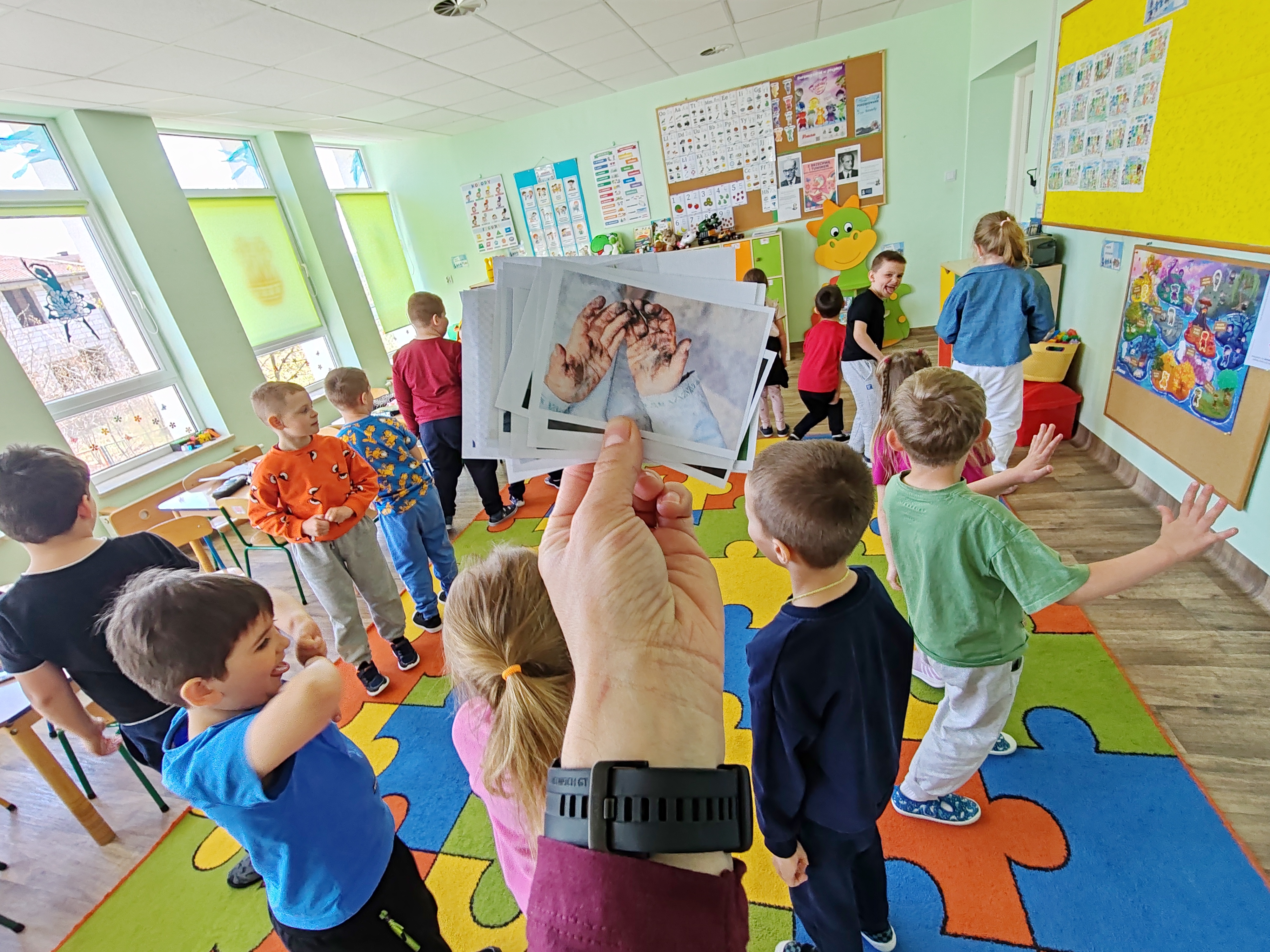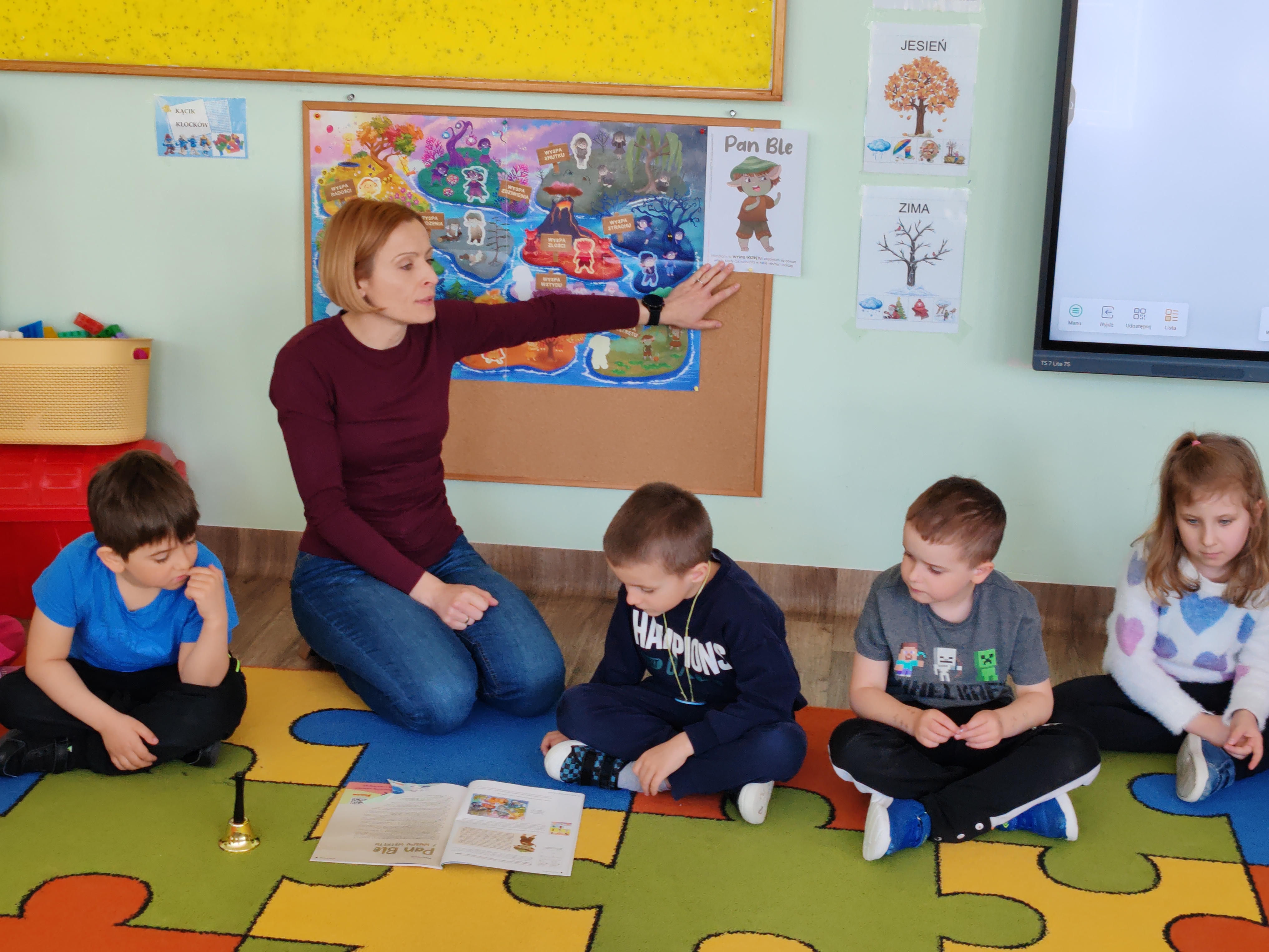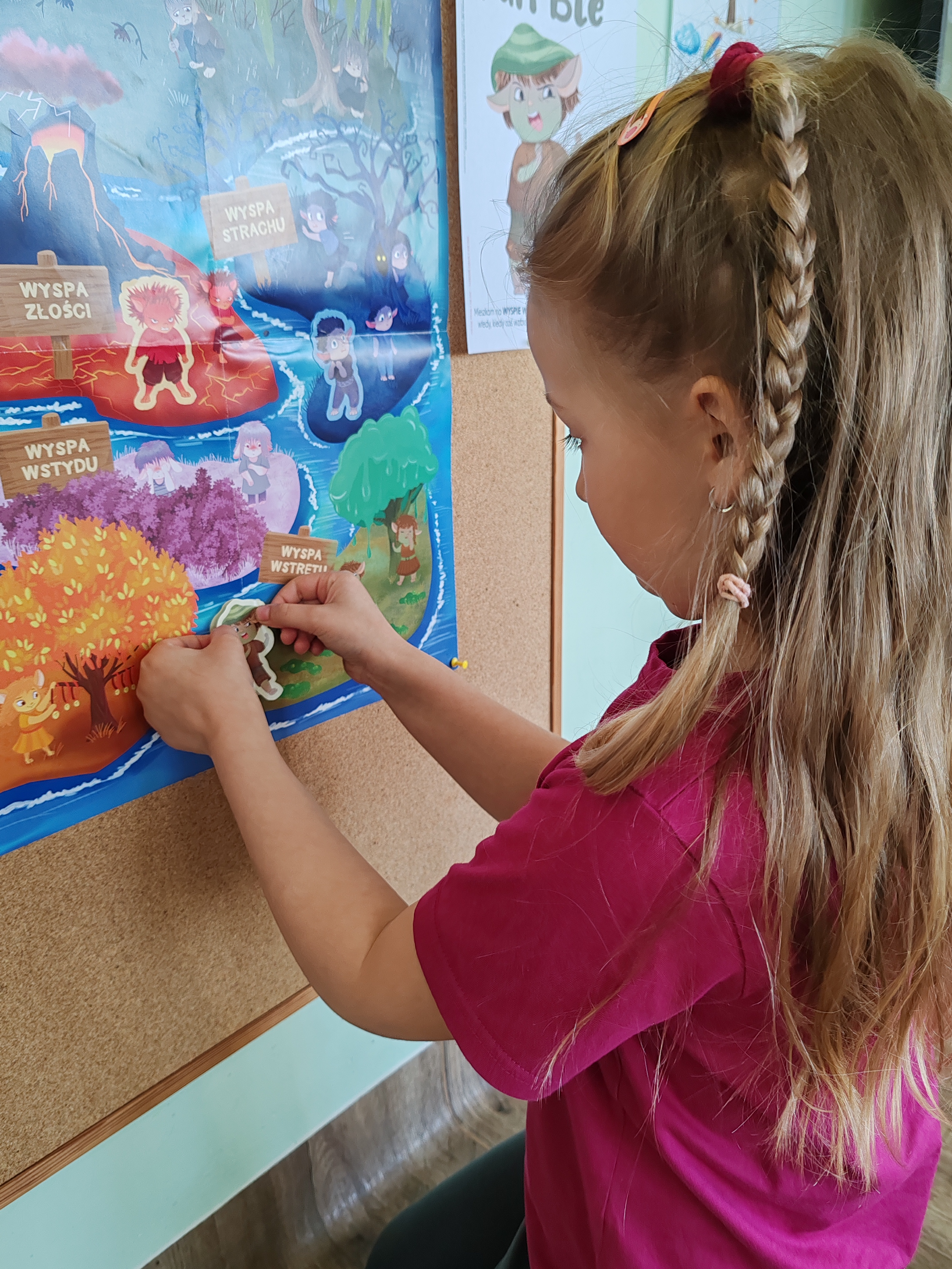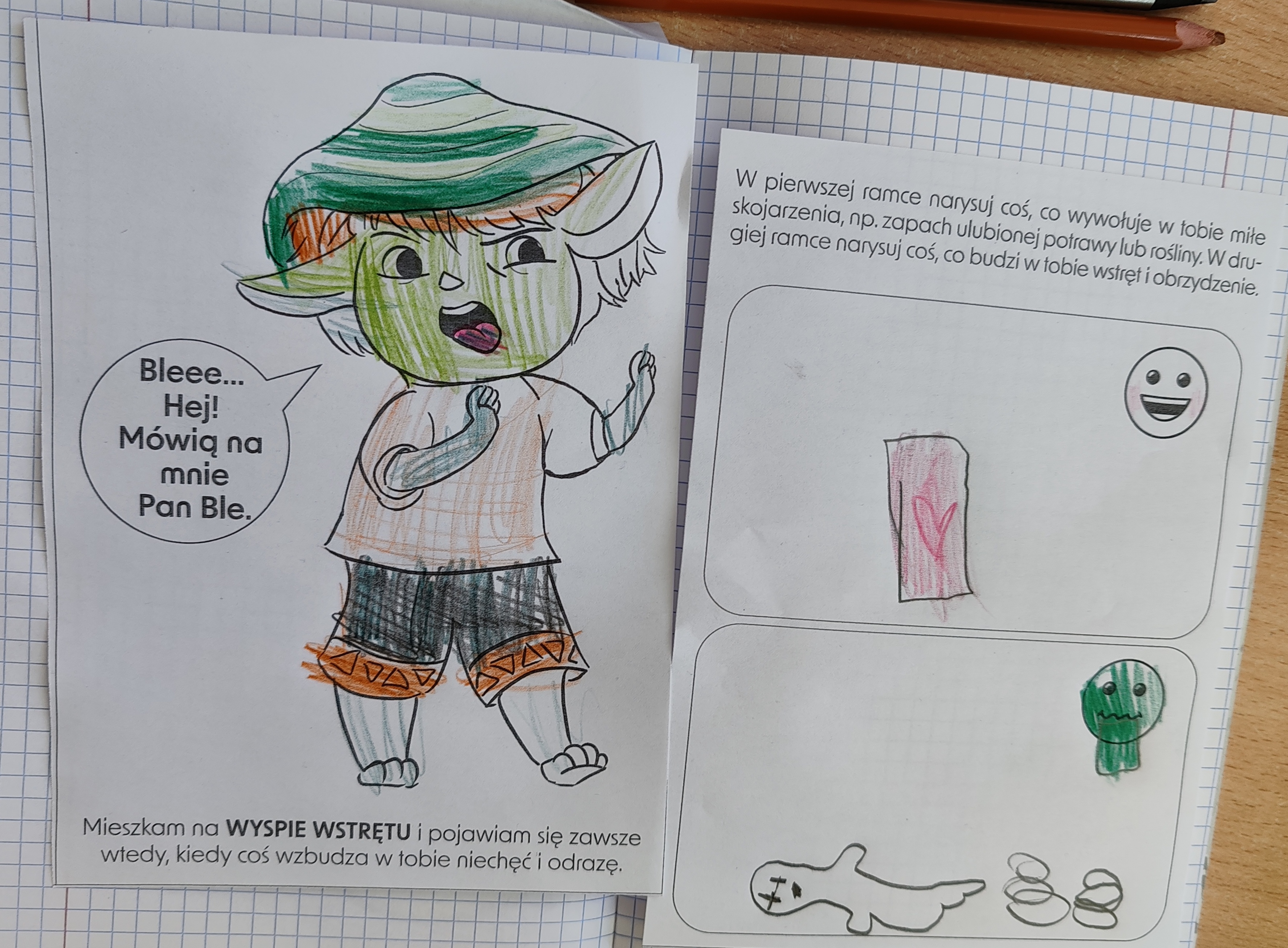 Przedszkolaki poznały kolejną emocję - Pana Ble z Wyspy Wstrętu. Dzieci wysłuchały opowiadania o poznanej emocji, rozmawiały o niej, a na koniec zajęć kolorowały i rysowały coś miłego oraz coś co budzi w nich wstręt.