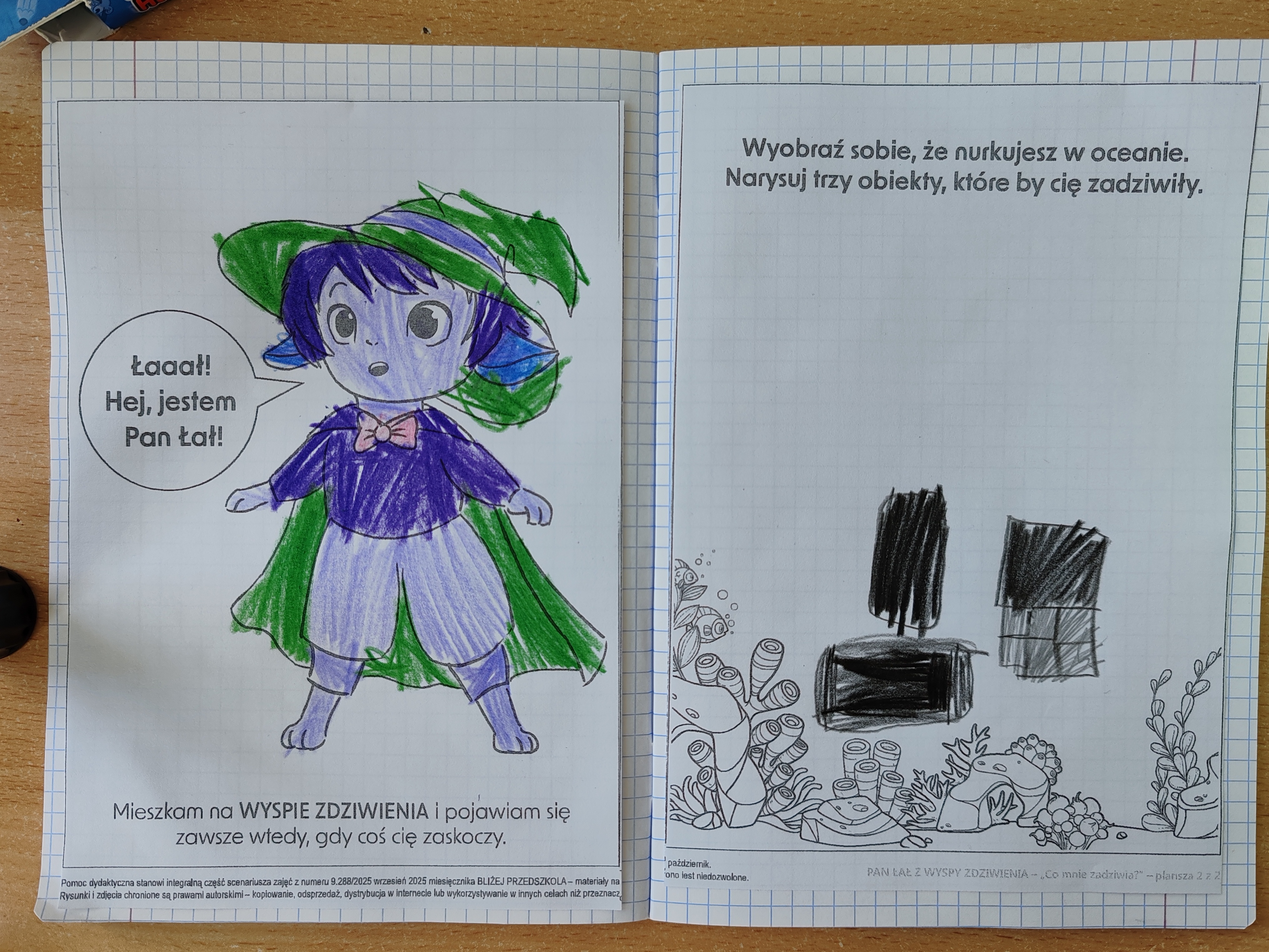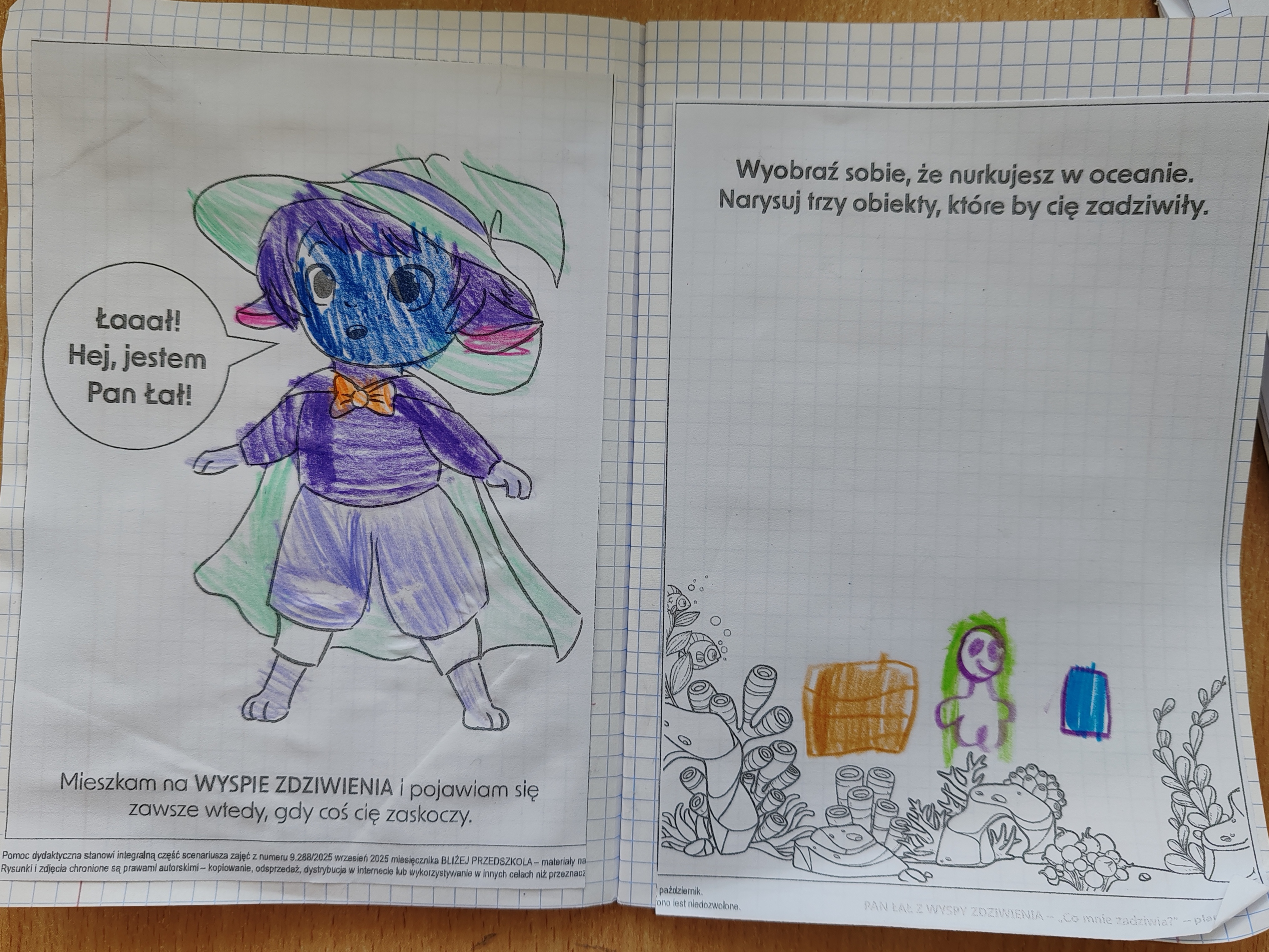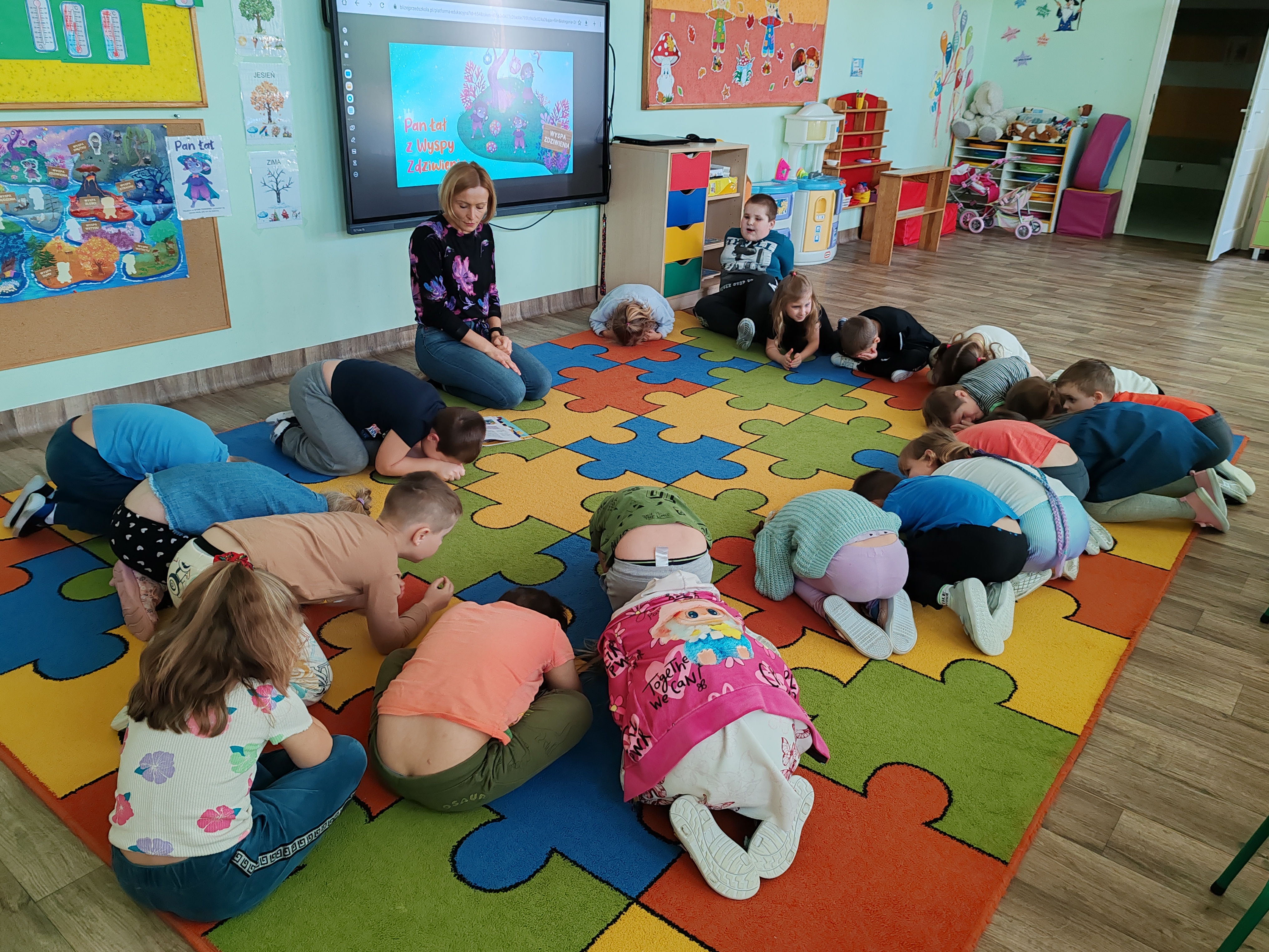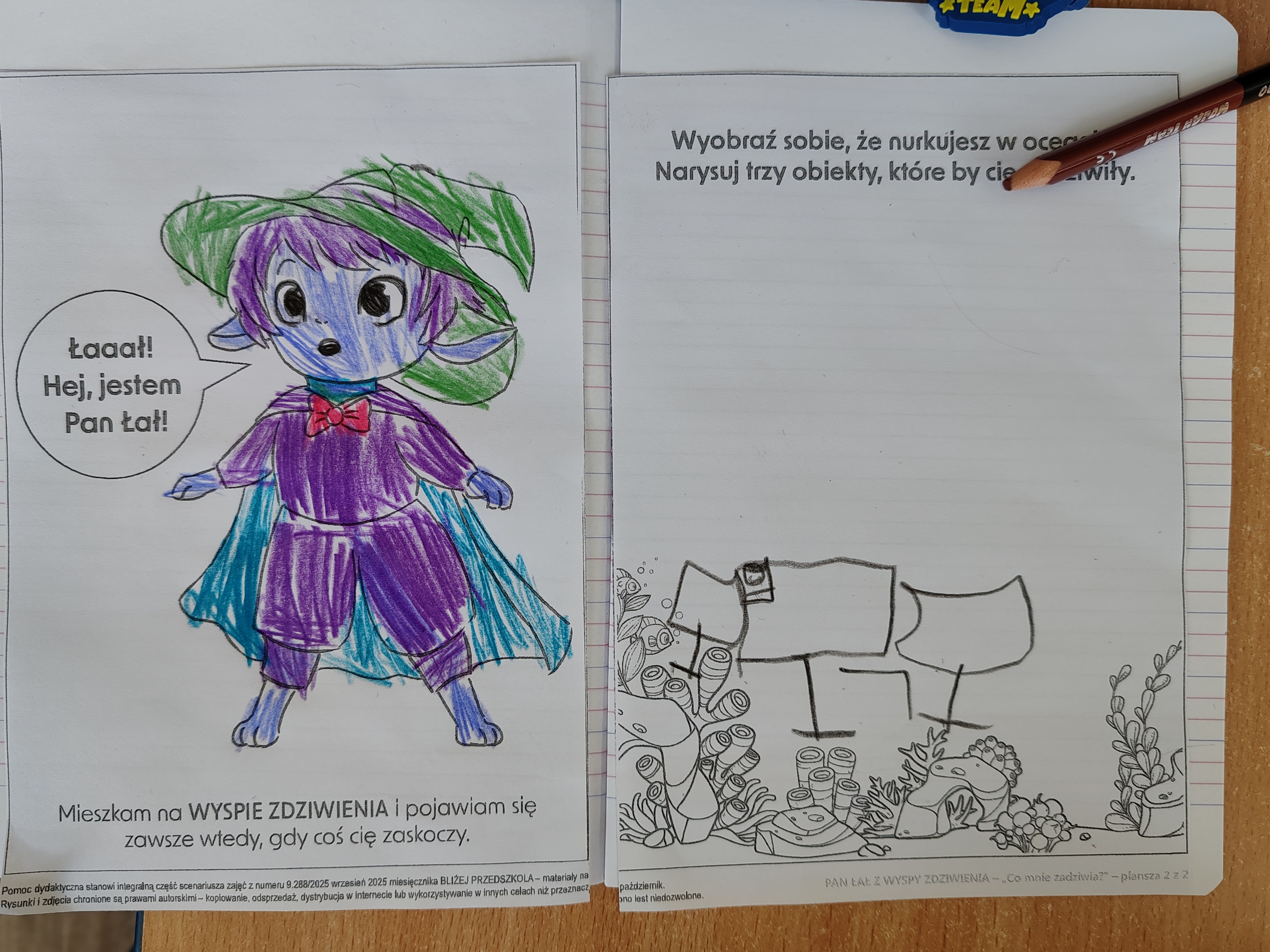 Dzisiaj na zajęciach SMERFY poznały opowiadanie z nową emocją - zdziwieniem. Bohaterem dzisiejszych zajęć był Pan Łał. Dzieci obejrzały film dotyczący zdziwienia, oglądały dwa doświadczenia, które je zdziwiły, wyrażały zdziwienie ruchem oraz mimiką twarzy. Pod koniec zajęć wykonały pracę plastyczną.