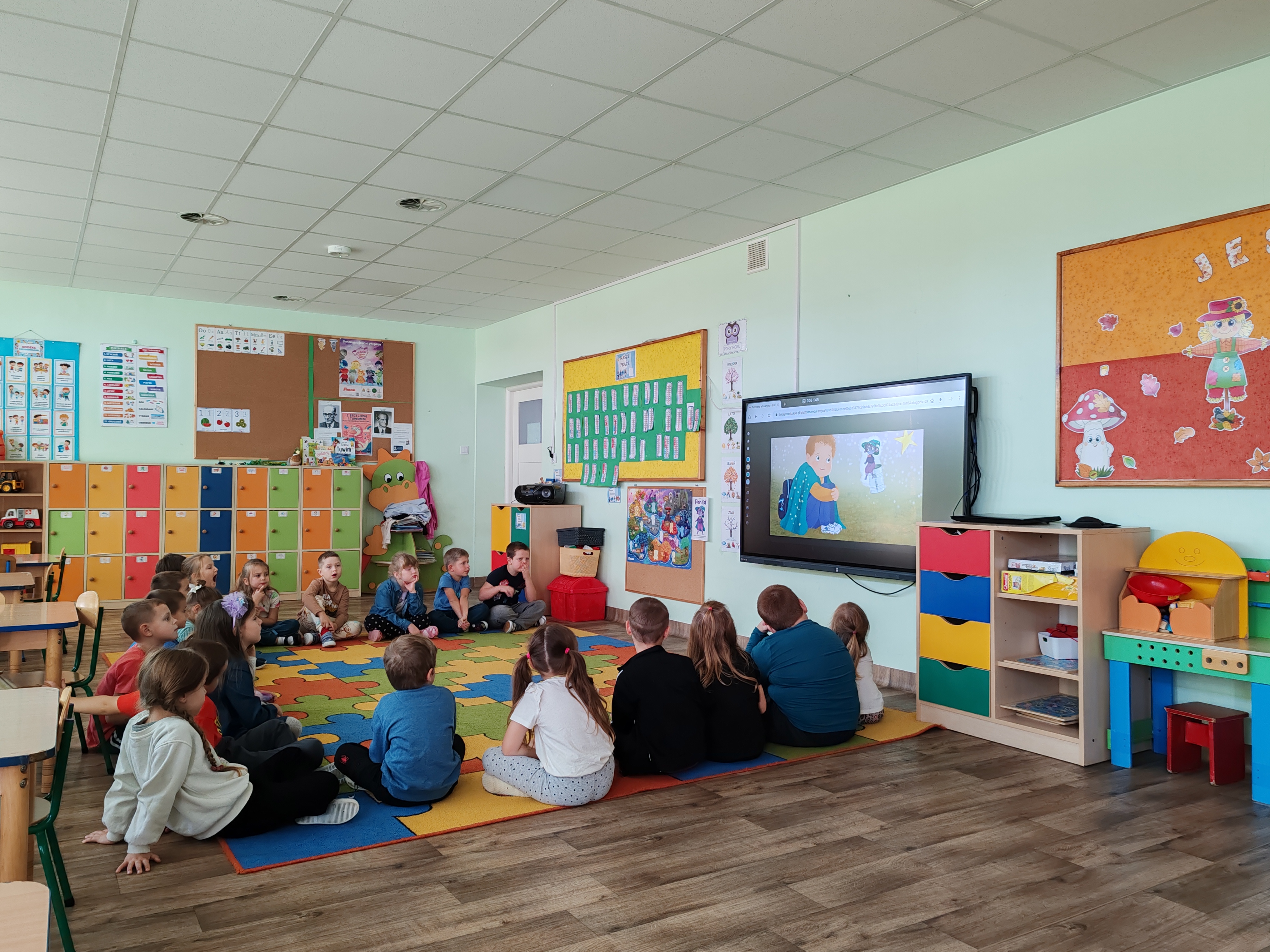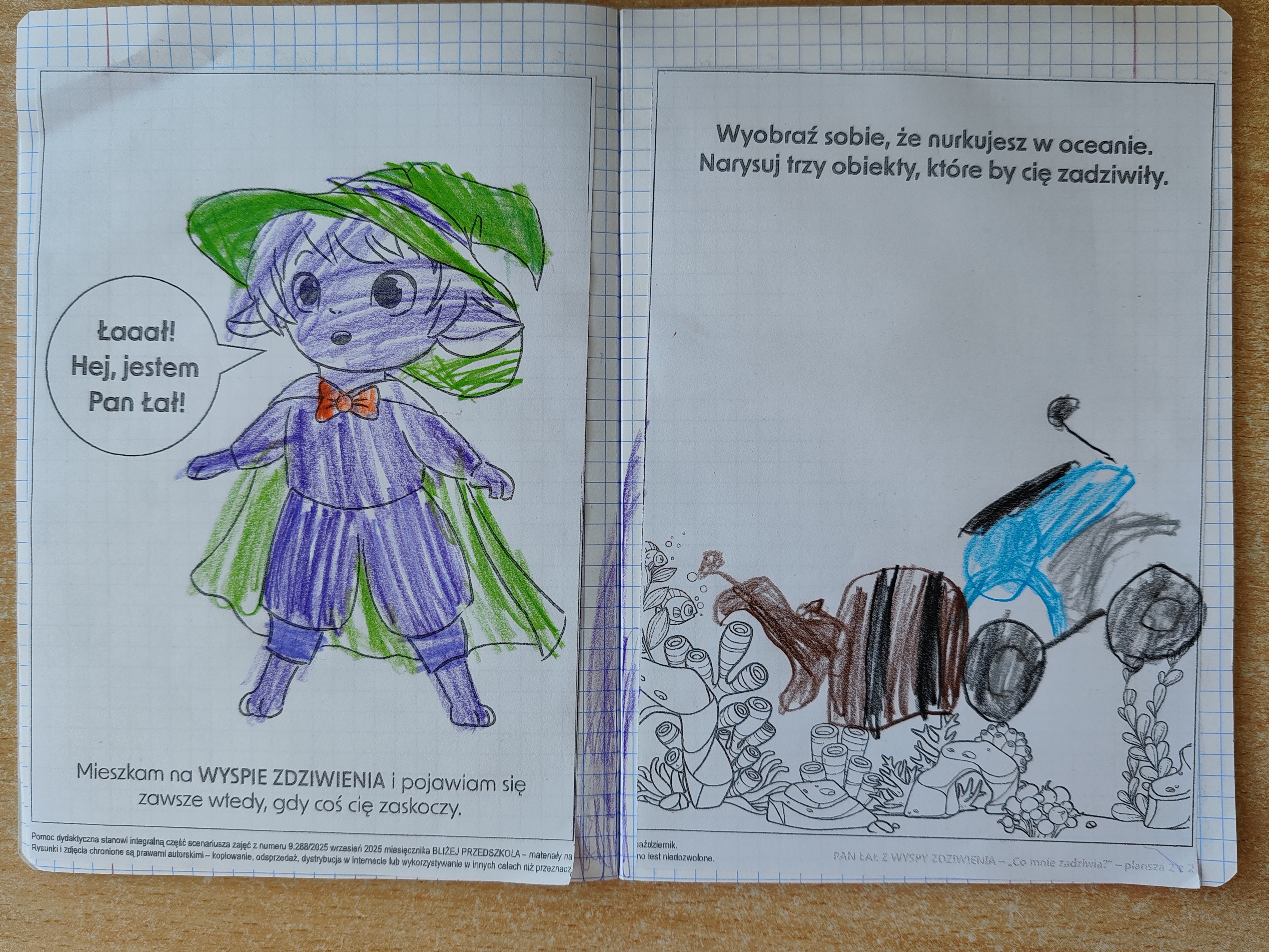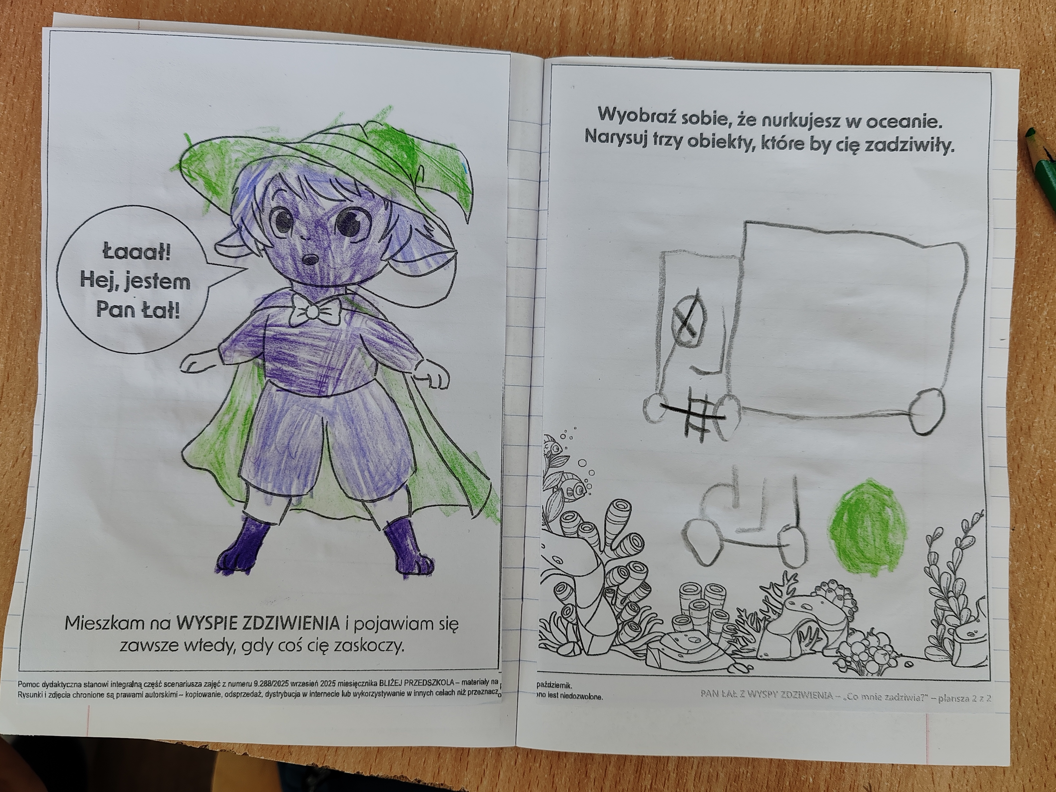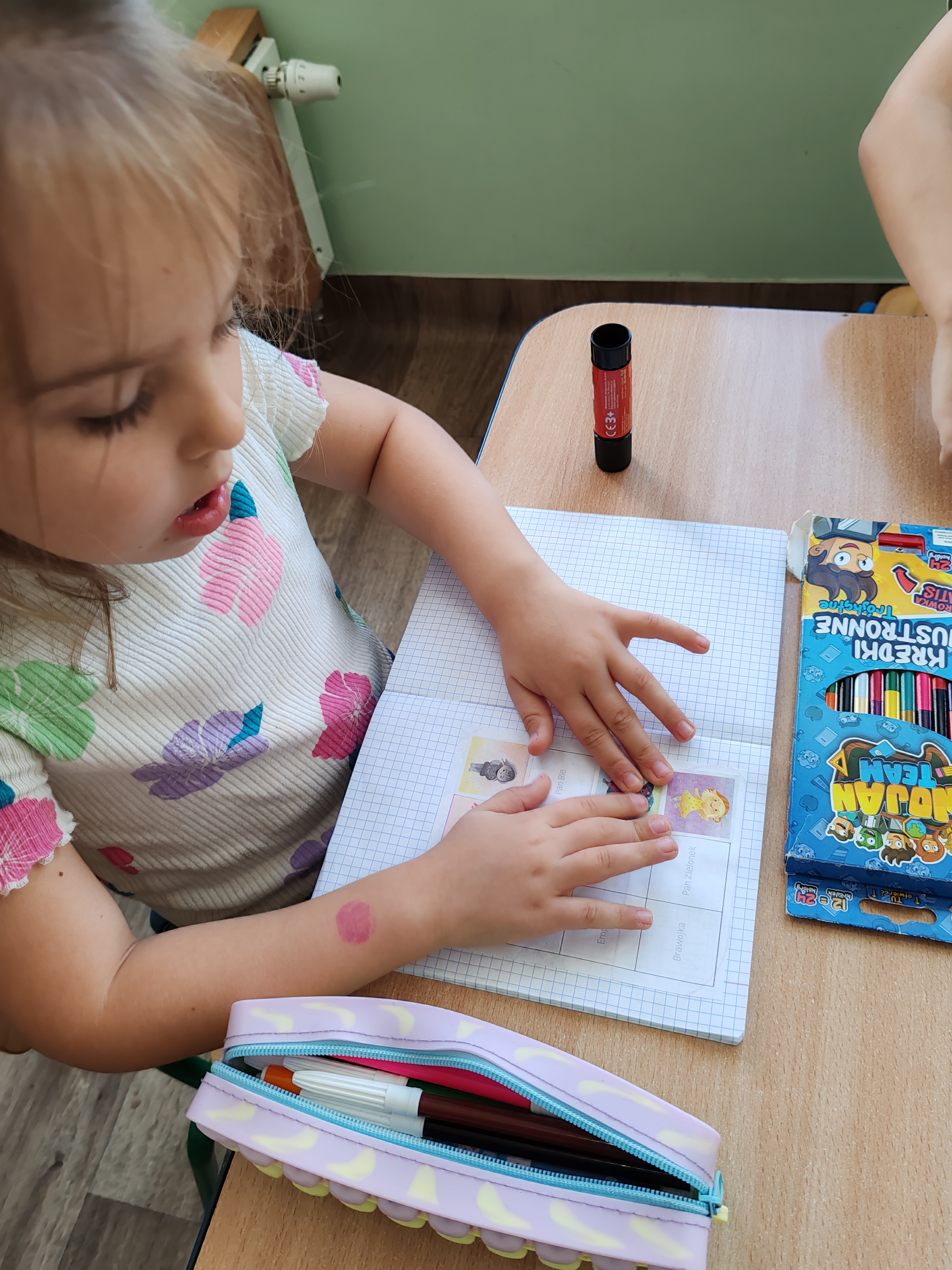 Dzisiaj na zajęciach SMERFY poznały opowiadanie z nową emocją - zdziwieniem. Bohaterem dzisiejszych zajęć był Pan Łał. Dzieci obejrzały film dotyczący zdziwienia, oglądały dwa doświadczenia, które je zdziwiły, wyrażały zdziwienie ruchem oraz mimiką twarzy. Pod koniec zajęć wykonały pracę plastyczną.