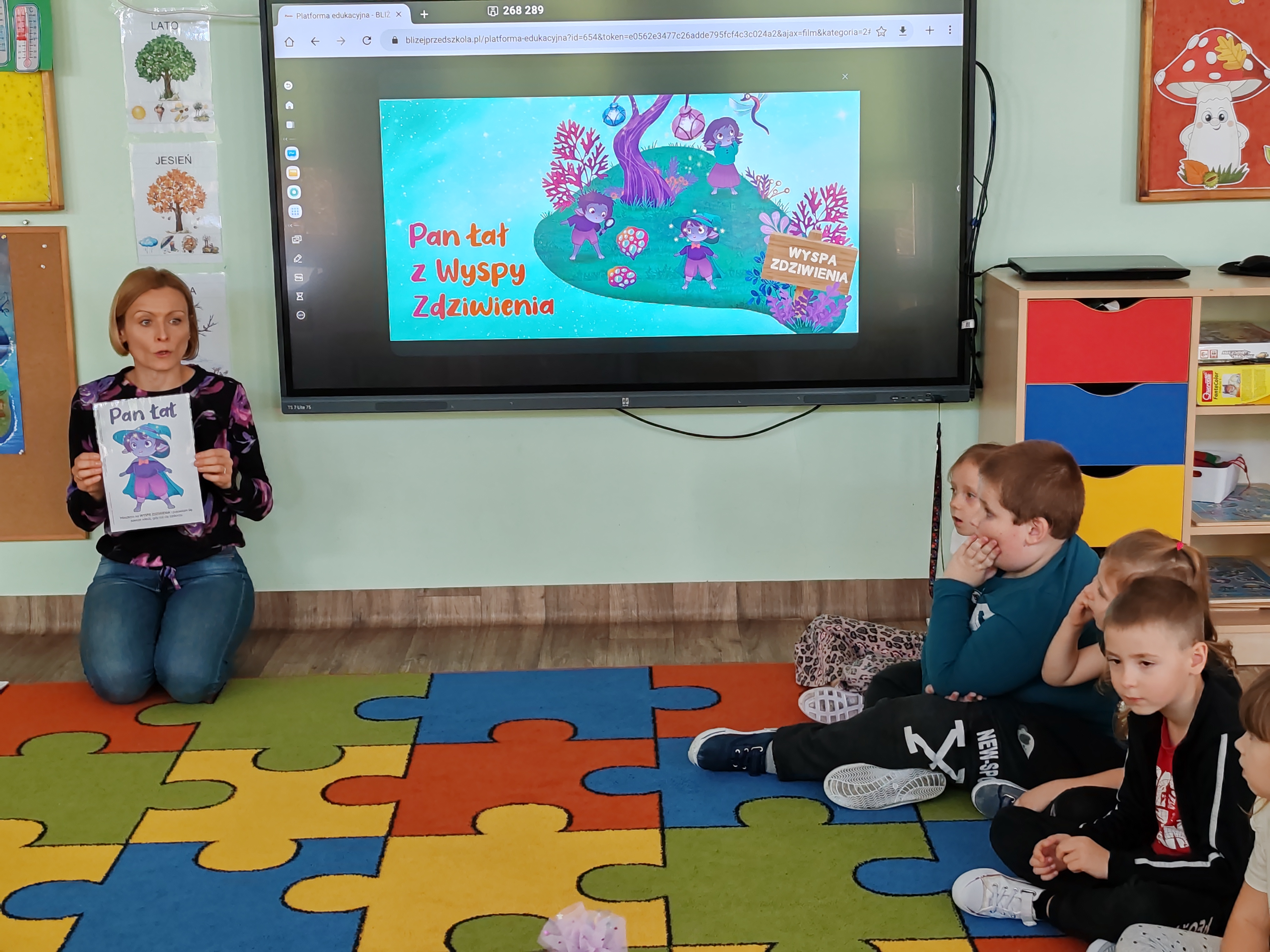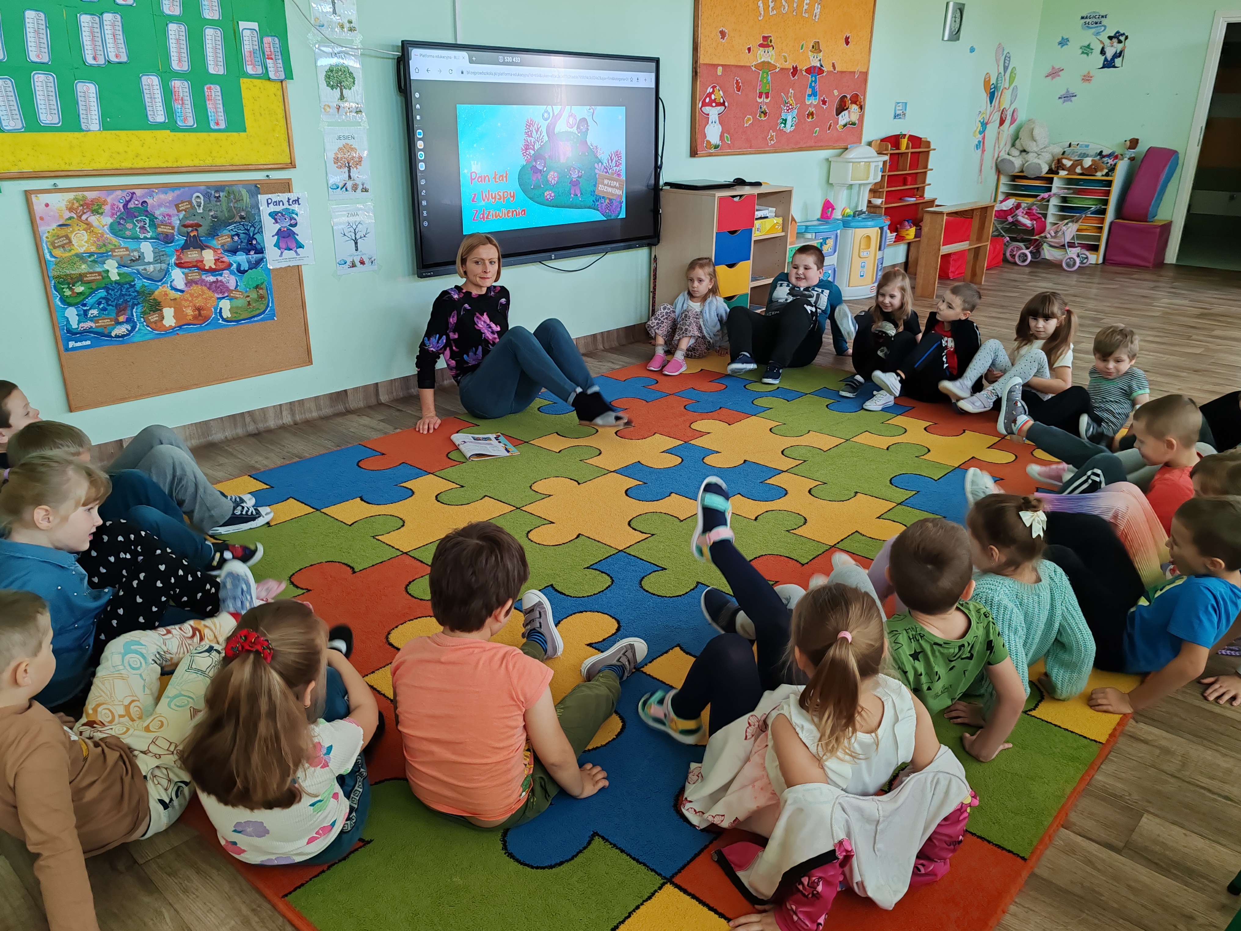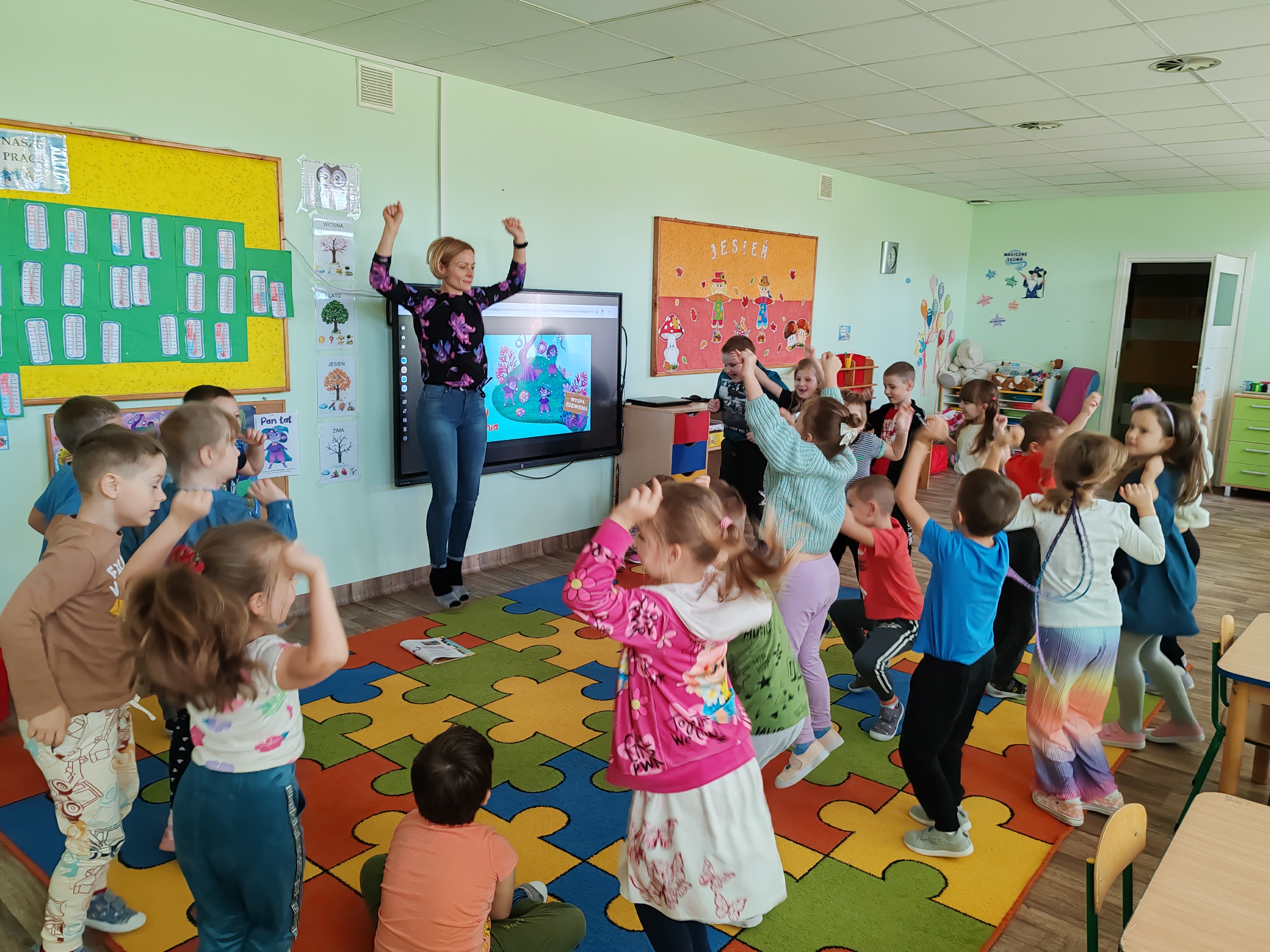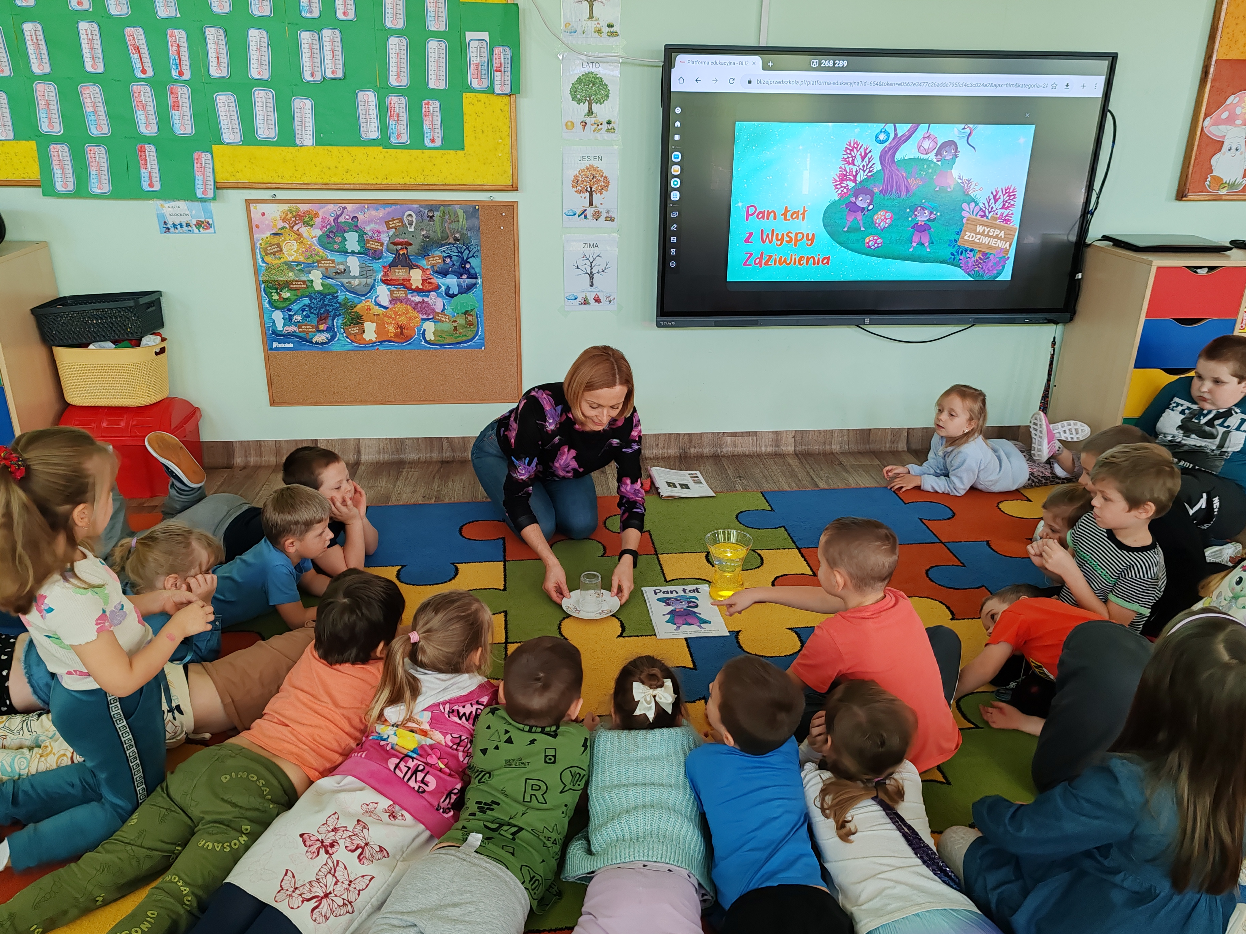 Dzisiaj na zajęciach SMERFY poznały opowiadanie z nową emocją - zdziwieniem. Bohaterem dzisiejszych zajęć był Pan Łał. Dzieci obejrzały film dotyczący zdziwienia, oglądały dwa doświadczenia, które je zdziwiły, wyrażały zdziwienie ruchem oraz mimiką twarzy. Pod koniec zajęć wykonały pracę plastyczną.