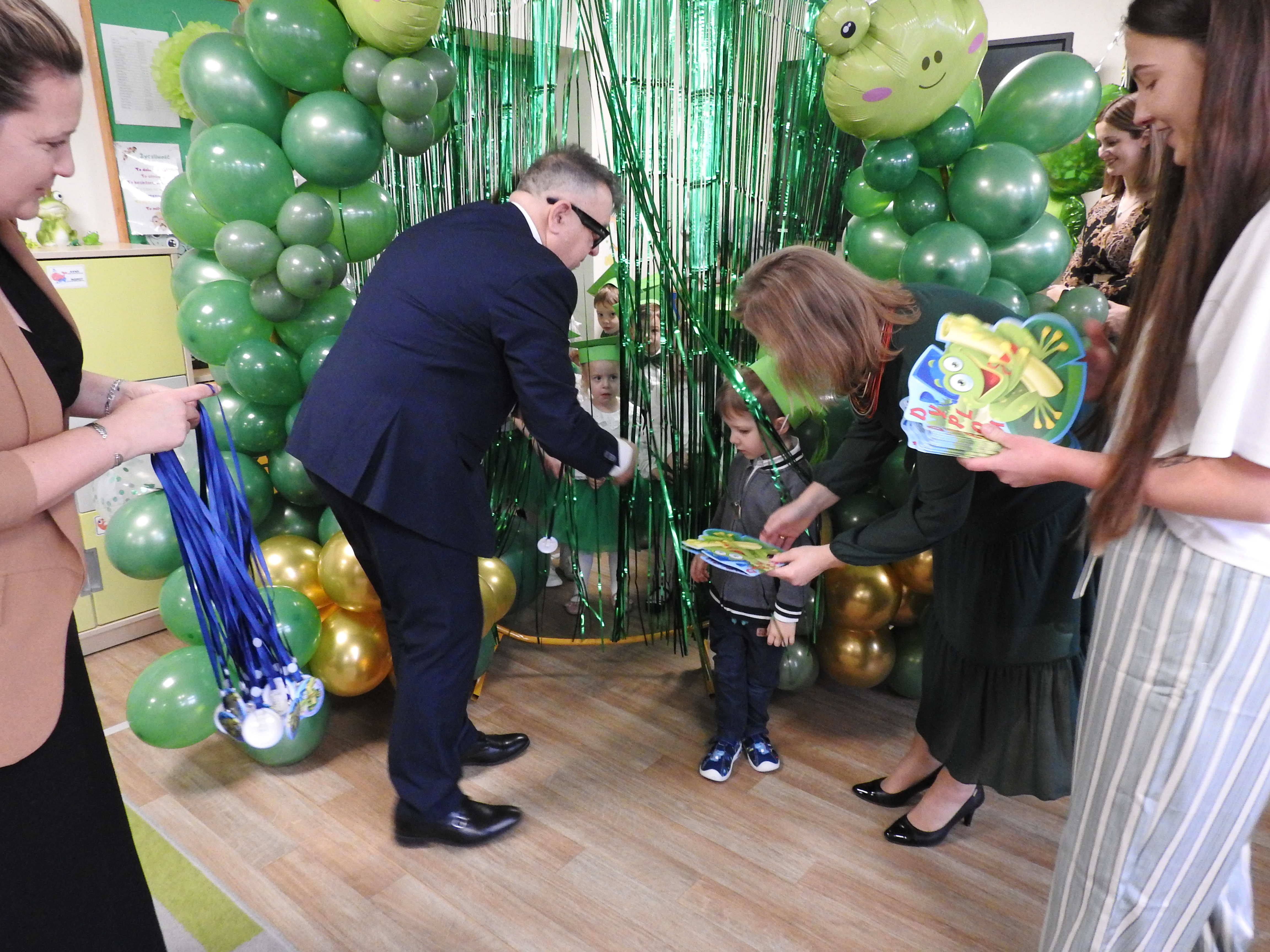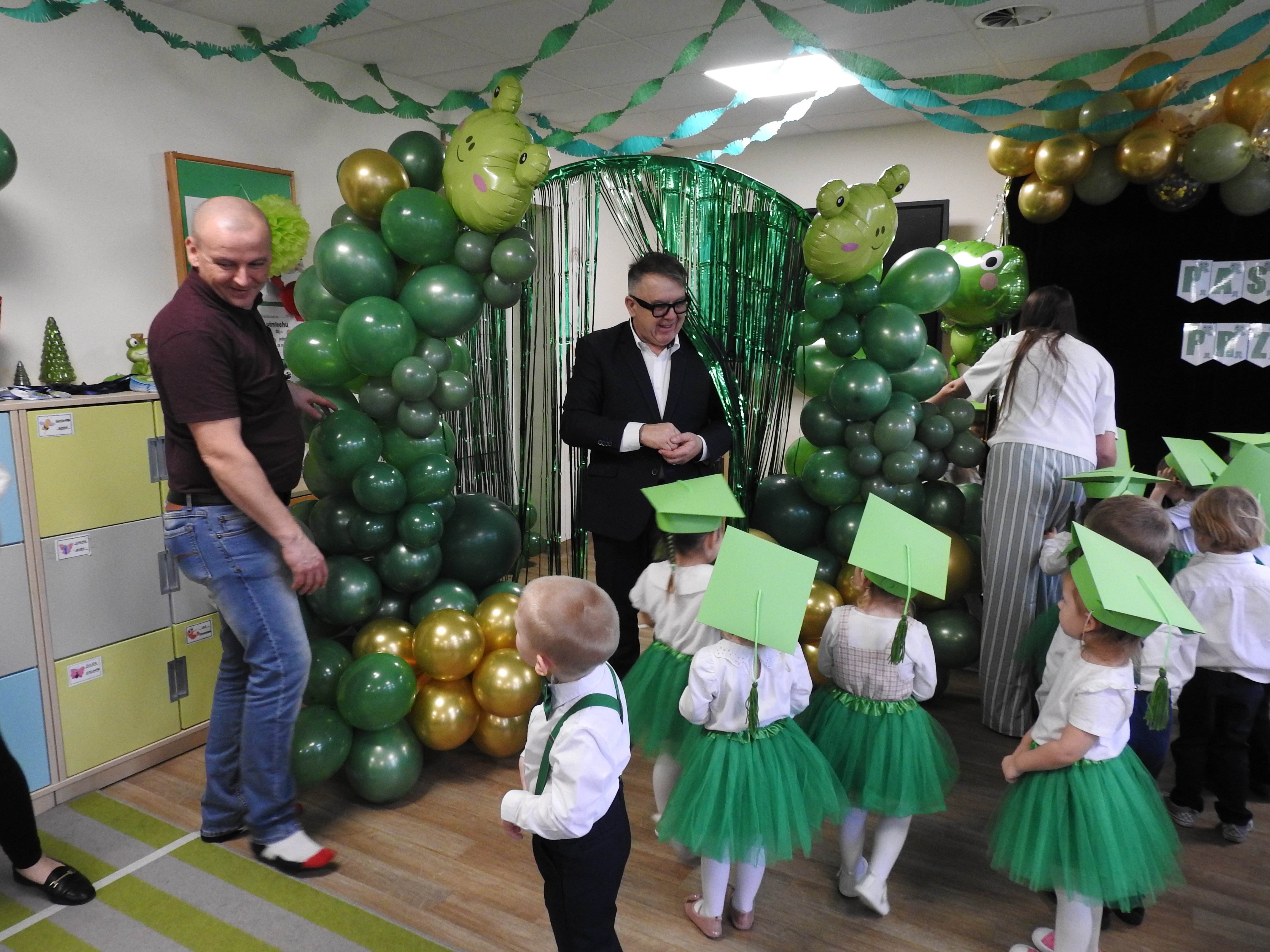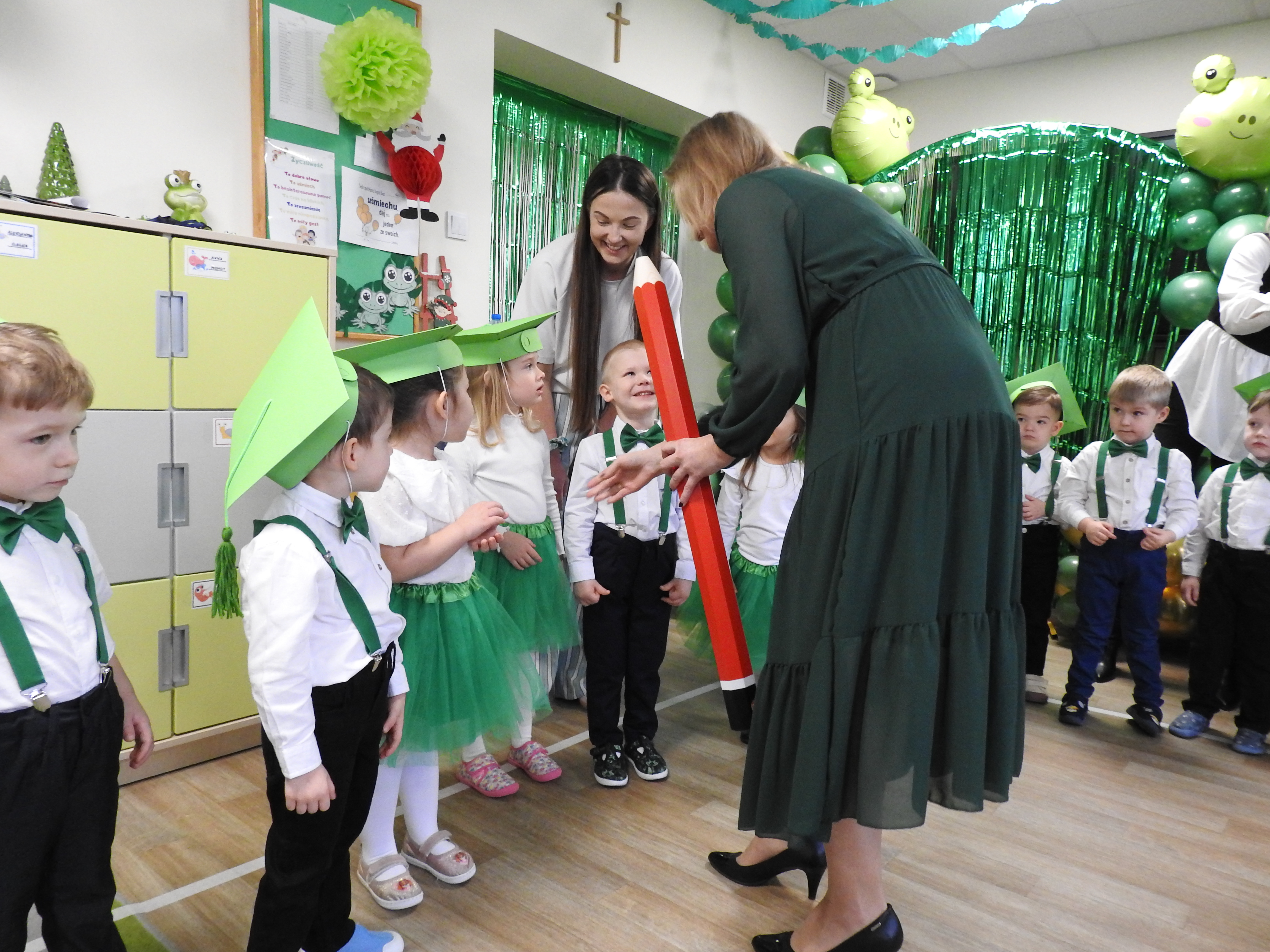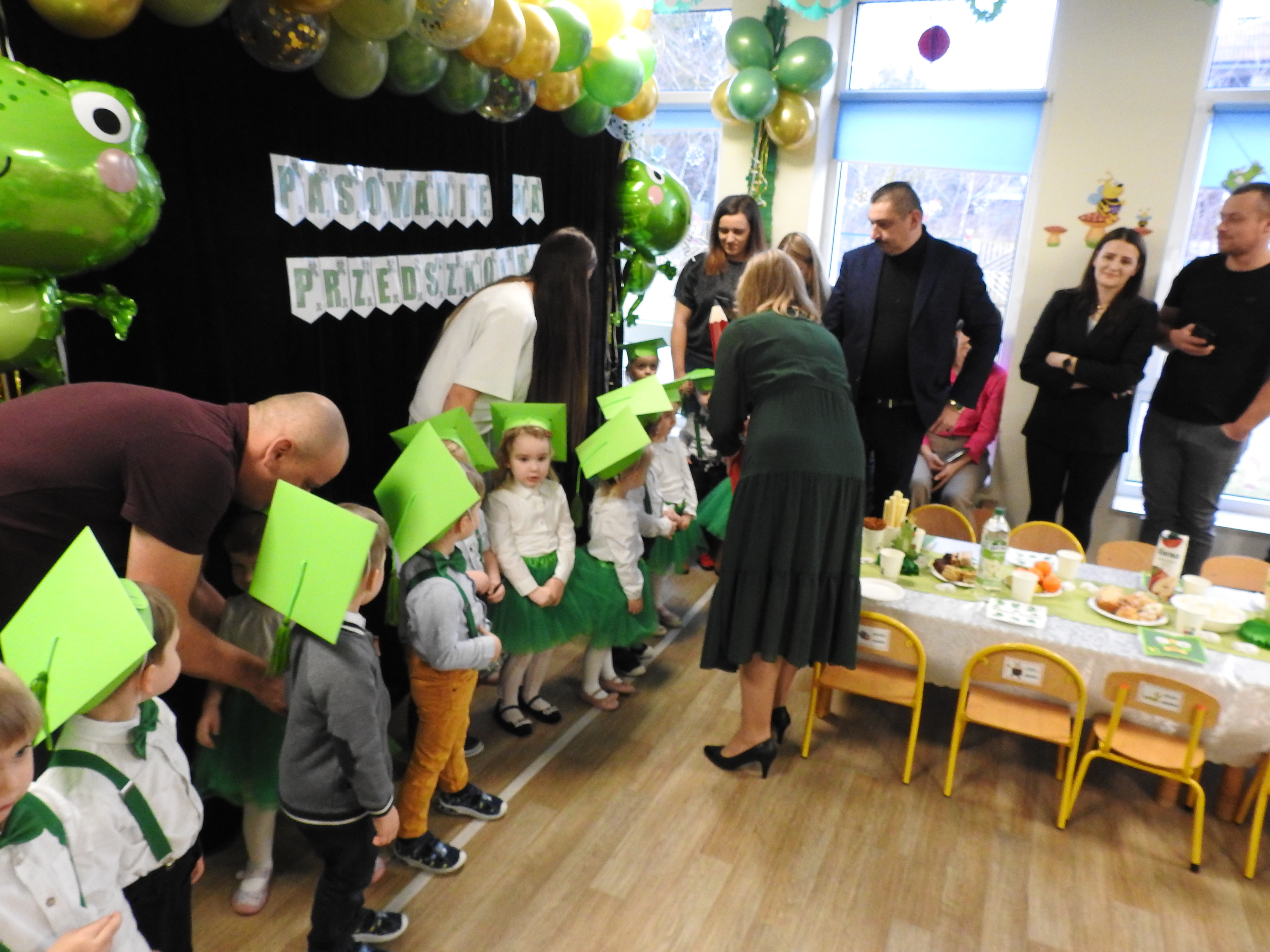 10 GRUDNIA W NASZYM PRZEDSZKOLU ODBYŁO SIĘ UROCZYSTE PASOWANIE NA PRZEDSZKOLAKA DZIECI Z GRUPY "ŻABKI". Z TEJ OKAZJI RODZICE PIĘKNIE PRZYSTROILI SALĘ PRZEDSZKOLNĄ I POMOGLI W PRZYGOTOWANIU DZIECI DO TAK WAŻNEJ W ICH ŻYCIU ZMIANY. ZAPROSILIŚMY GOŚCI: PANA JERZEGO LEWCZUKA BURMISTRZA MIASTA I GMINY IZBICA ORAZ PANIĄ ANETĘ KISTER-KIEŁB DYREKTORA SAMORZĄDOWEGO OŚRODKA OŚWIATY W IZBICY. DZIECI PIĘKNIE ZAPREZENTOWAŁY SIĘ WIERSZEM I PIOSENKĄ. BYŁA RADOŚĆ, WZRUSZENIE I DUMA RODZICÓW ZE SWOICH POCIECH, A ZWIEŃCZENIEM WYDARZENIA BYŁO UROCZYSTE PASOWANIE OKAZAŁYM OŁÓWKIEM I PRZEPYSZNY , PIĘKNY TORT OCZYWIŚCIE Z MOTYWEM ŻABEK.
