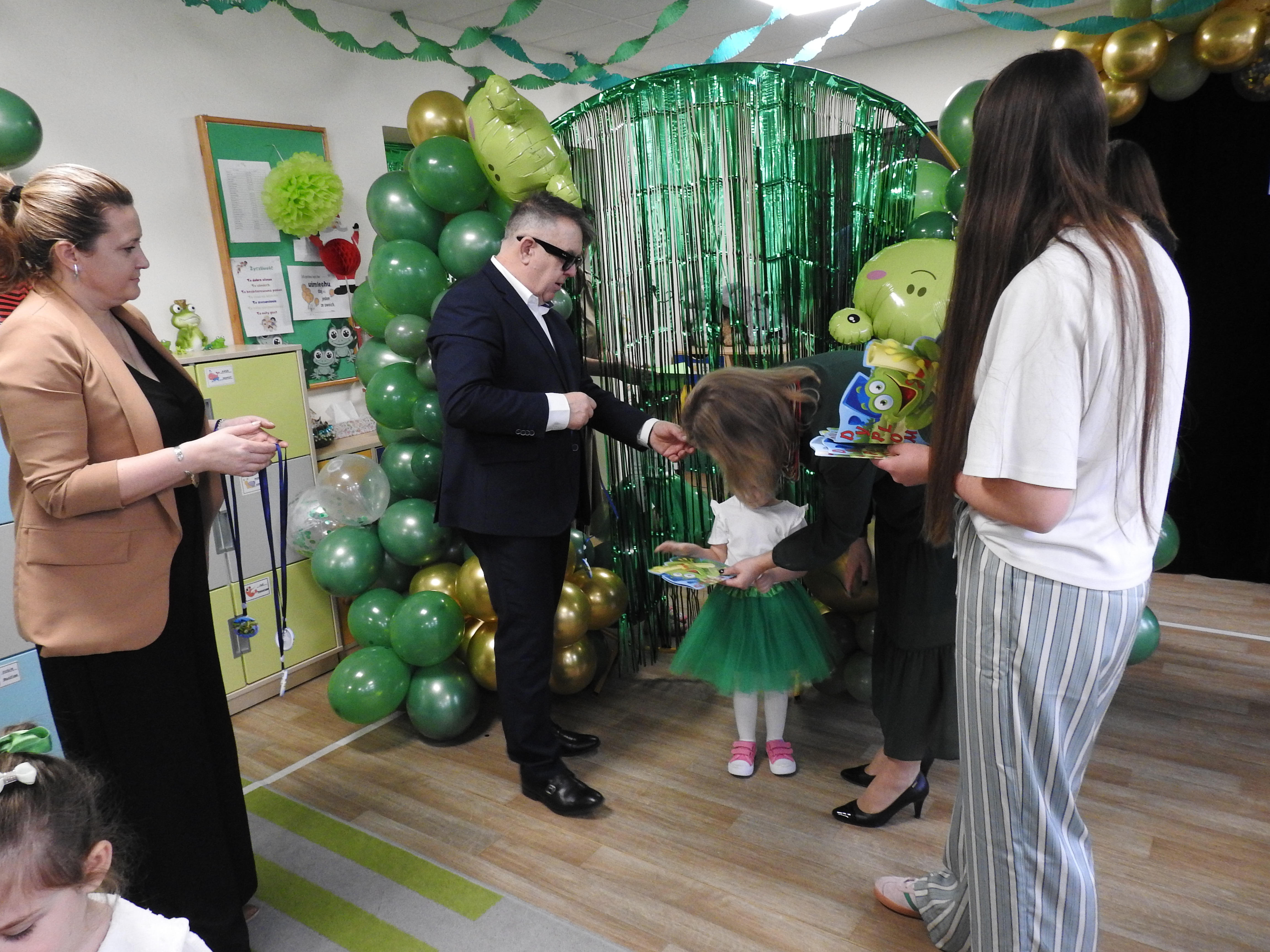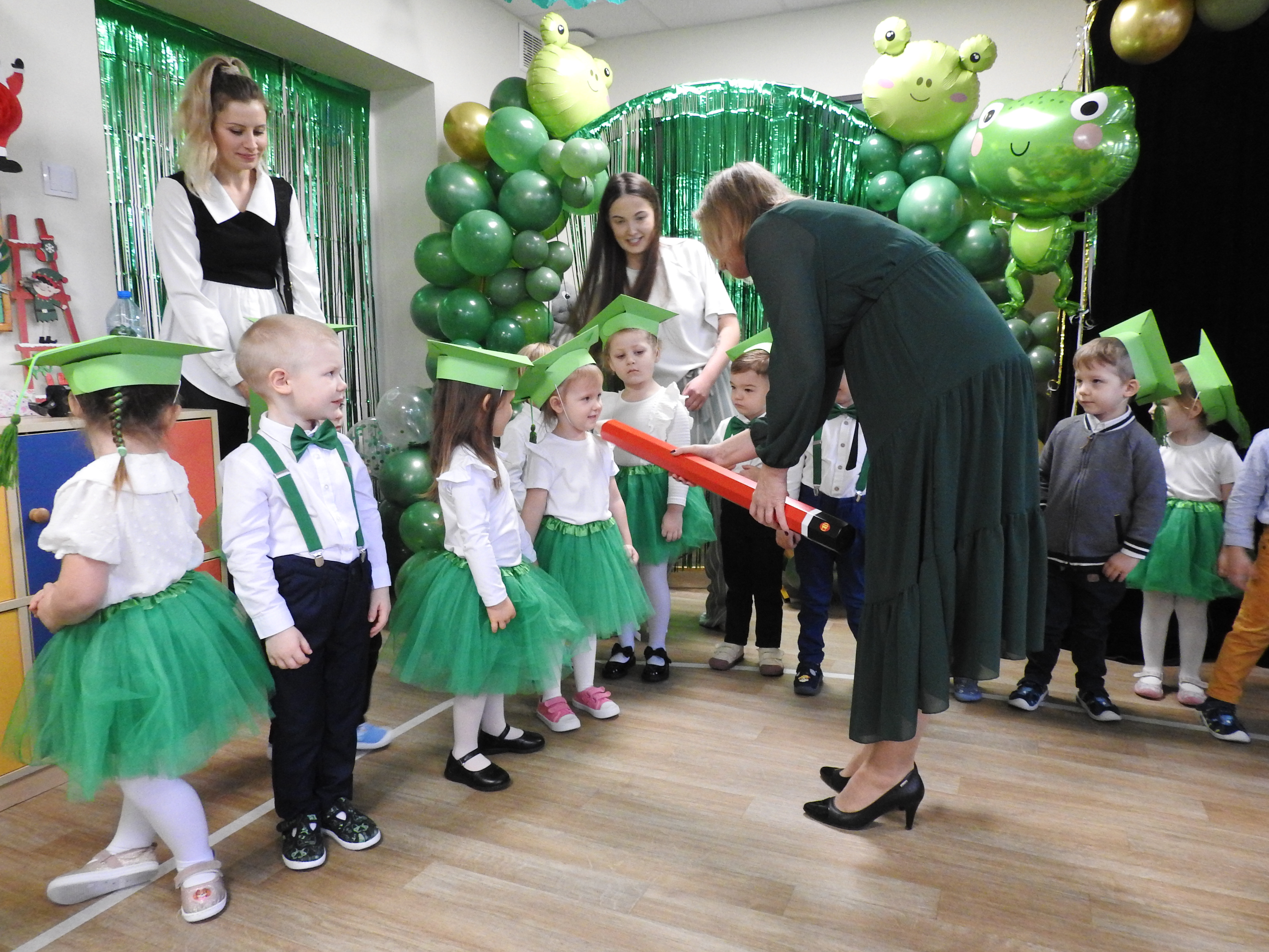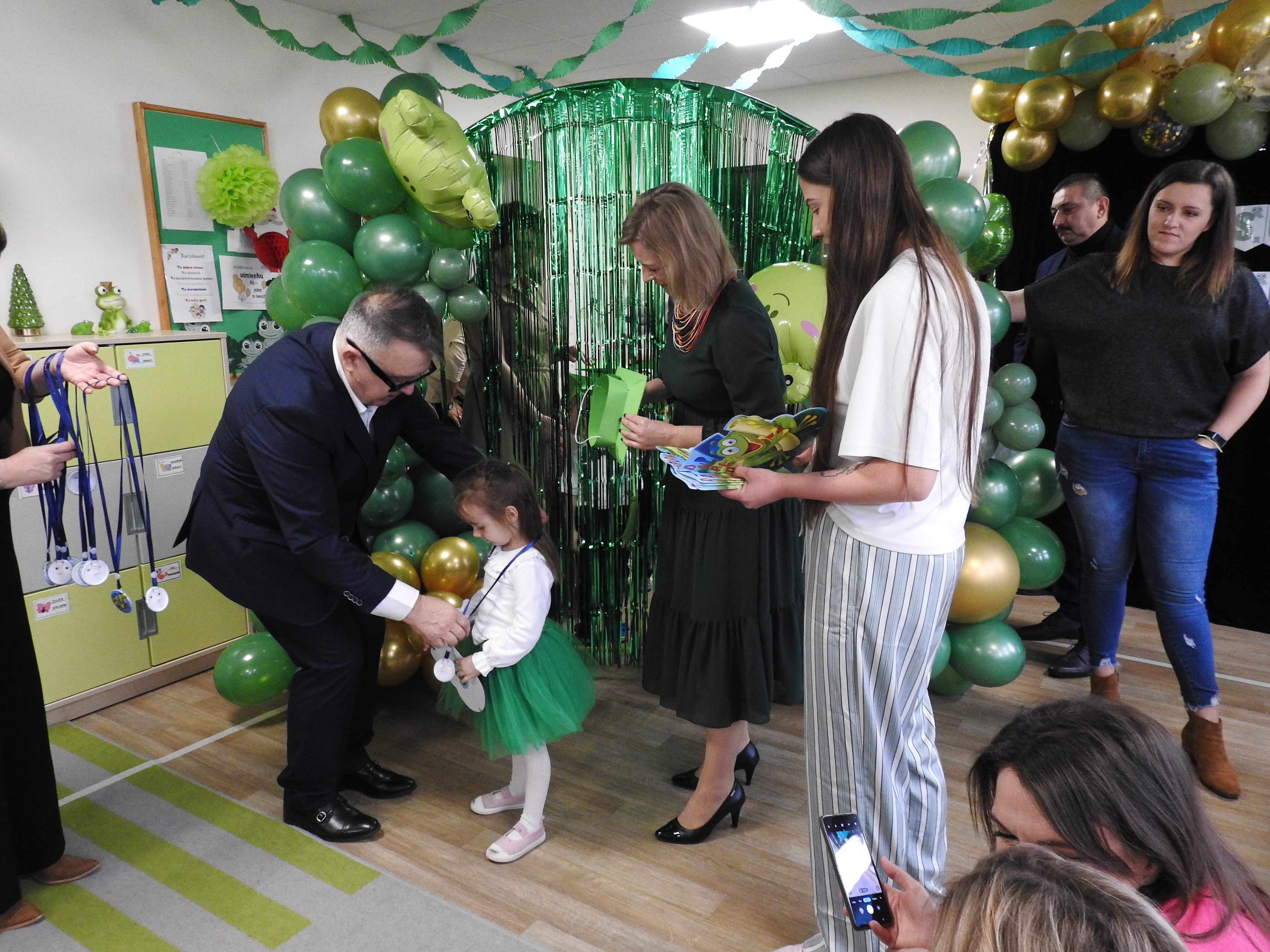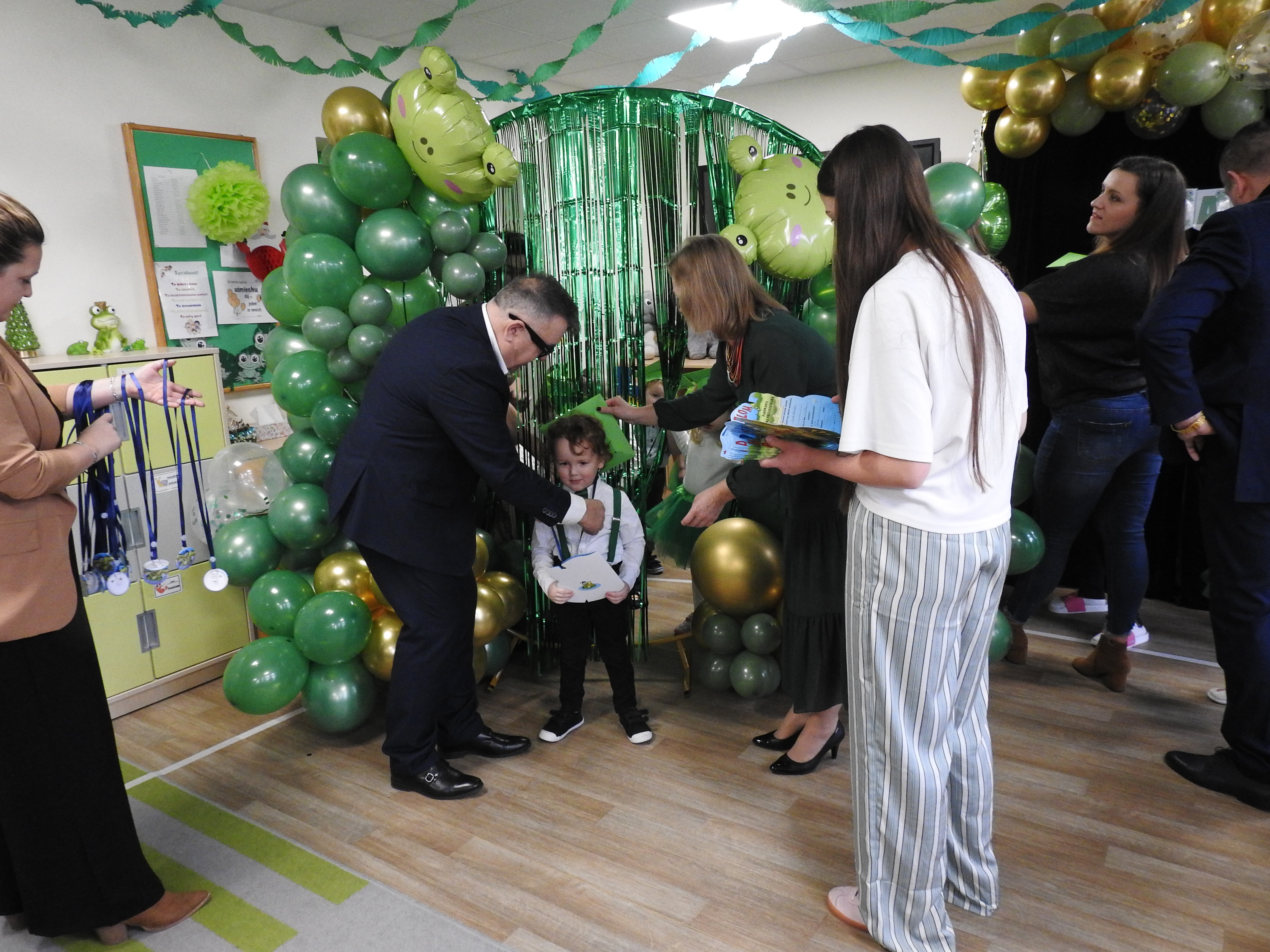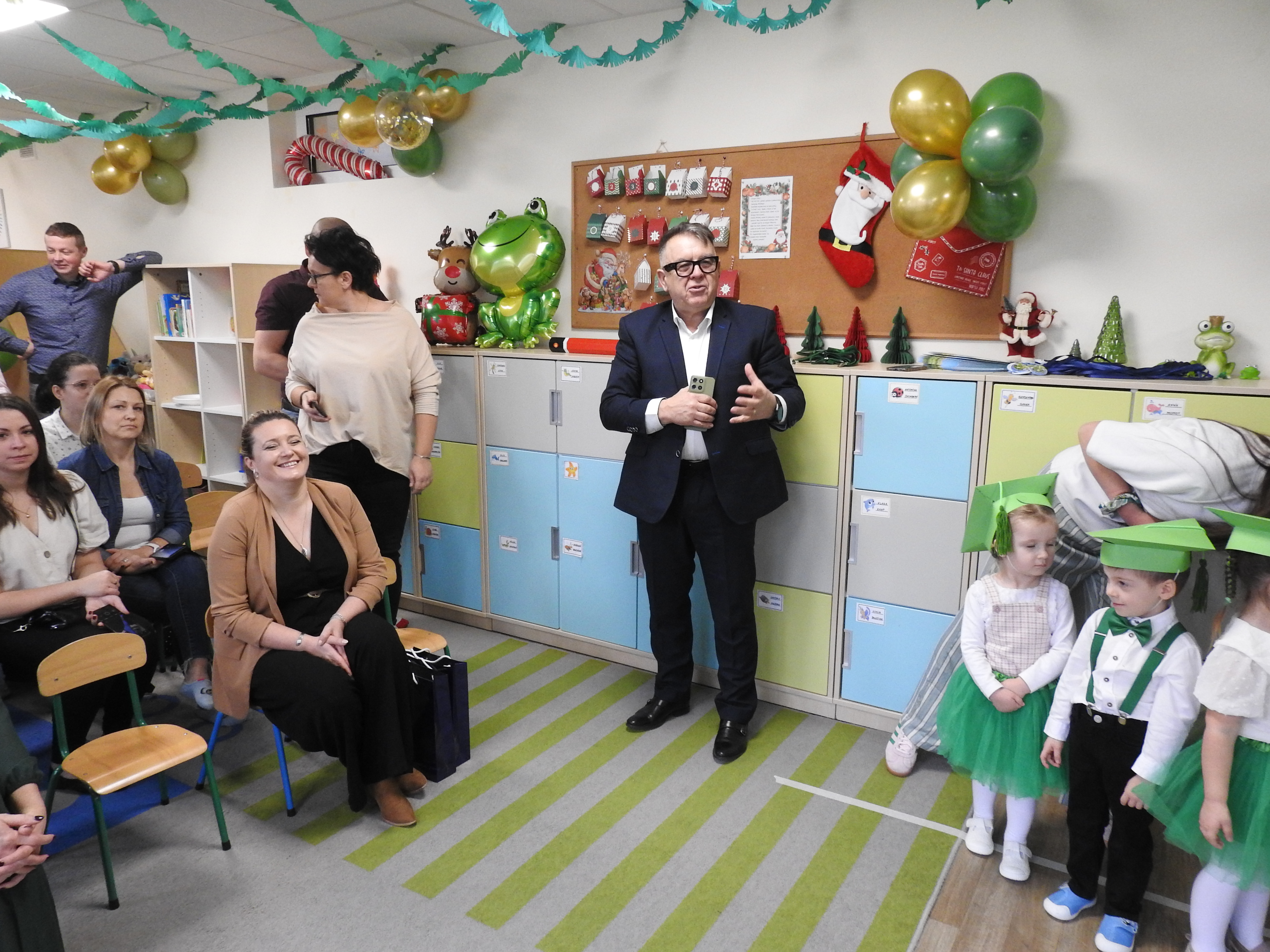 10 GRUDNIA W NASZYM PRZEDSZKOLU ODBYŁO SIĘ UROCZYSTE PASOWANIE NA PRZEDSZKOLAKA DZIECI Z GRUPY "ŻABKI". Z TEJ OKAZJI RODZICE PIĘKNIE PRZYSTROILI SALĘ PRZEDSZKOLNĄ I POMOGLI W PRZYGOTOWANIU DZIECI DO TAK WAŻNEJ W ICH ŻYCIU ZMIANY. ZAPROSILIŚMY GOŚCI: PANA JERZEGO LEWCZUKA BURMISTRZA MIASTA I GMINY IZBICA ORAZ PANIĄ ANETĘ KISTER-KIEŁB DYREKTORA SAMORZĄDOWEGO OŚRODKA OŚWIATY W IZBICY. DZIECI PIĘKNIE ZAPREZENTOWAŁY SIĘ WIERSZEM I PIOSENKĄ. BYŁA RADOŚĆ, WZRUSZENIE I DUMA RODZICÓW ZE SWOICH POCIECH, A ZWIEŃCZENIEM WYDARZENIA BYŁO UROCZYSTE PASOWANIE OKAZAŁYM OŁÓWKIEM I PRZEPYSZNY , PIĘKNY TORT OCZYWIŚCIE Z MOTYWEM ŻABEK.