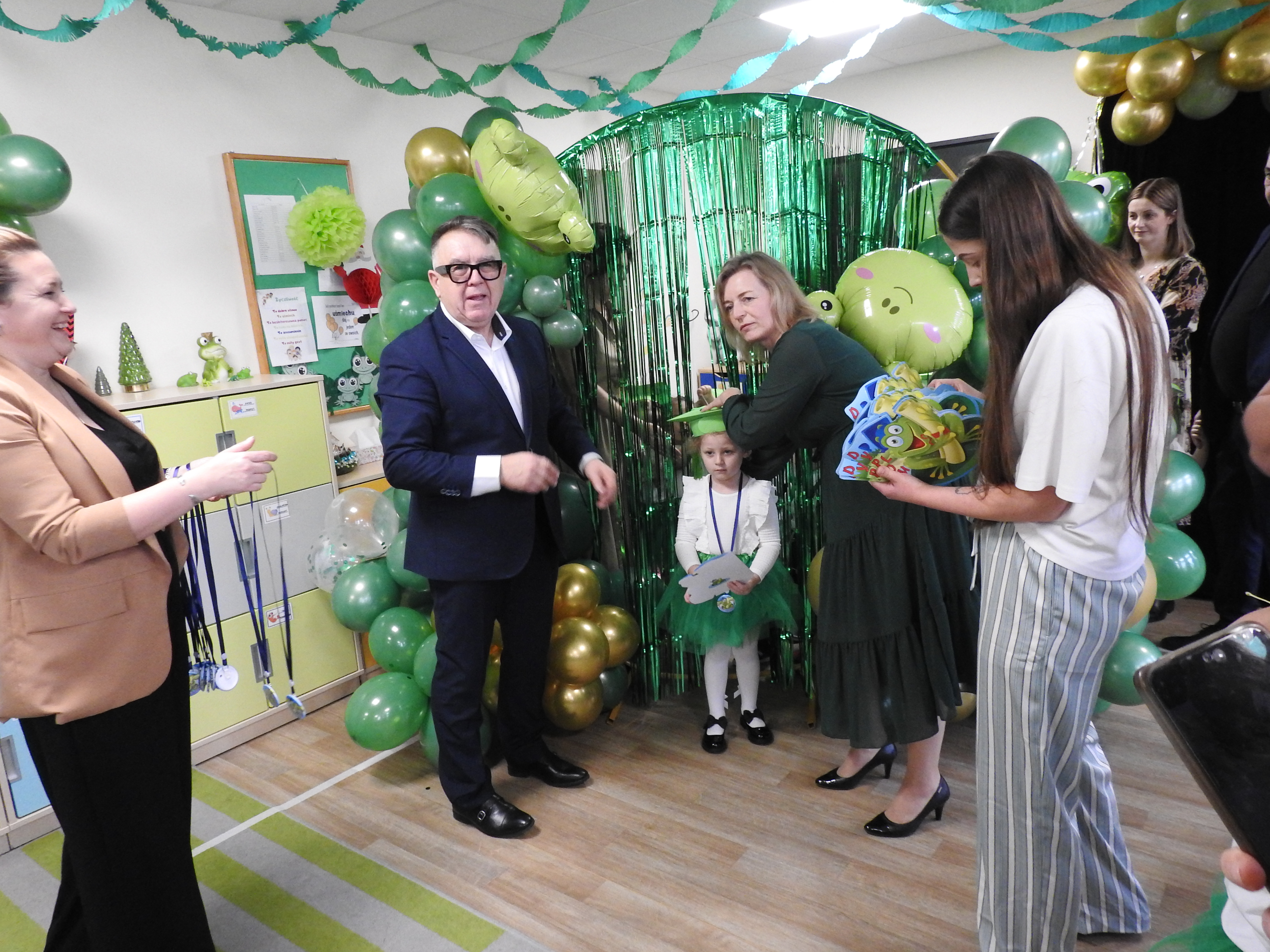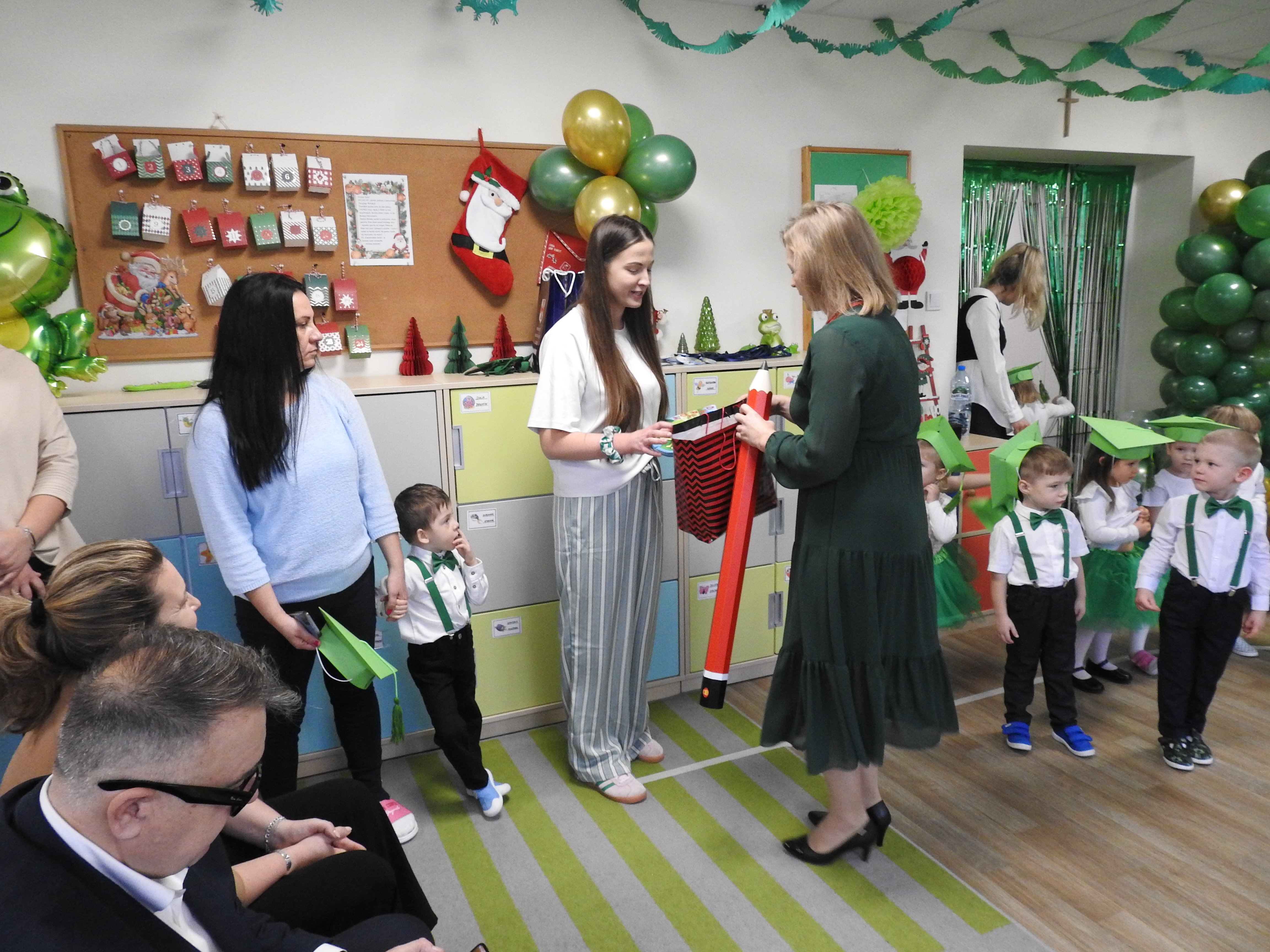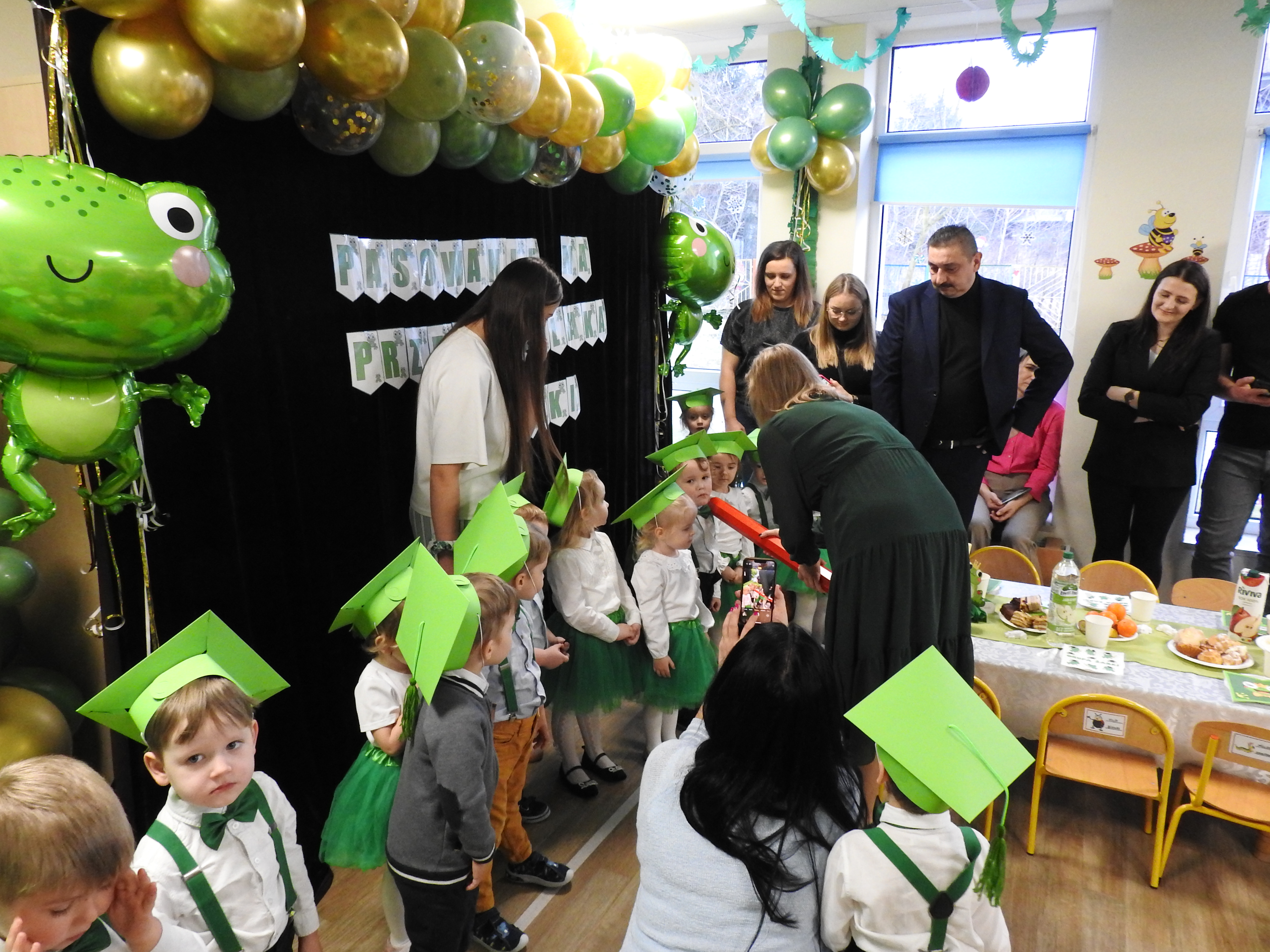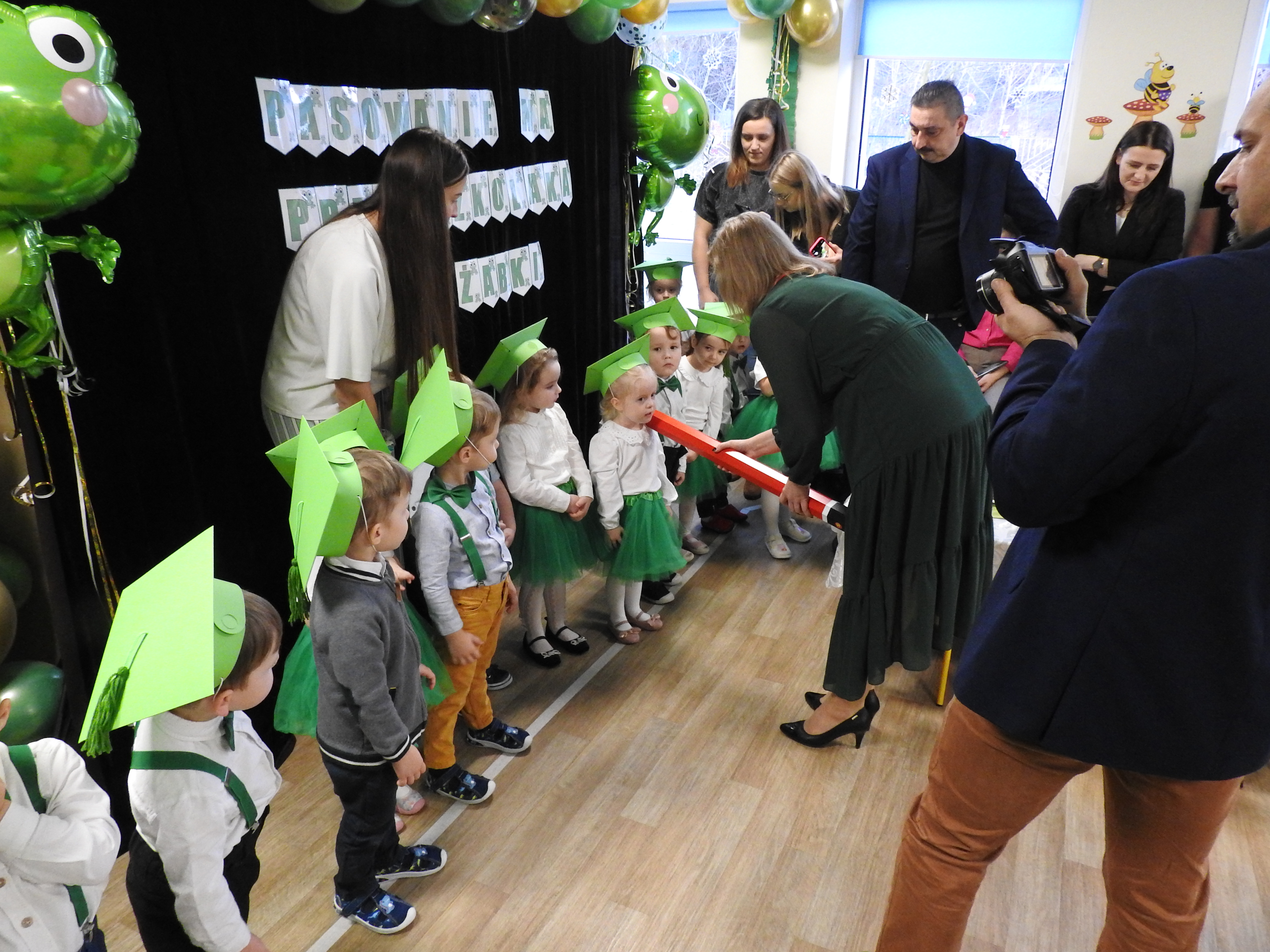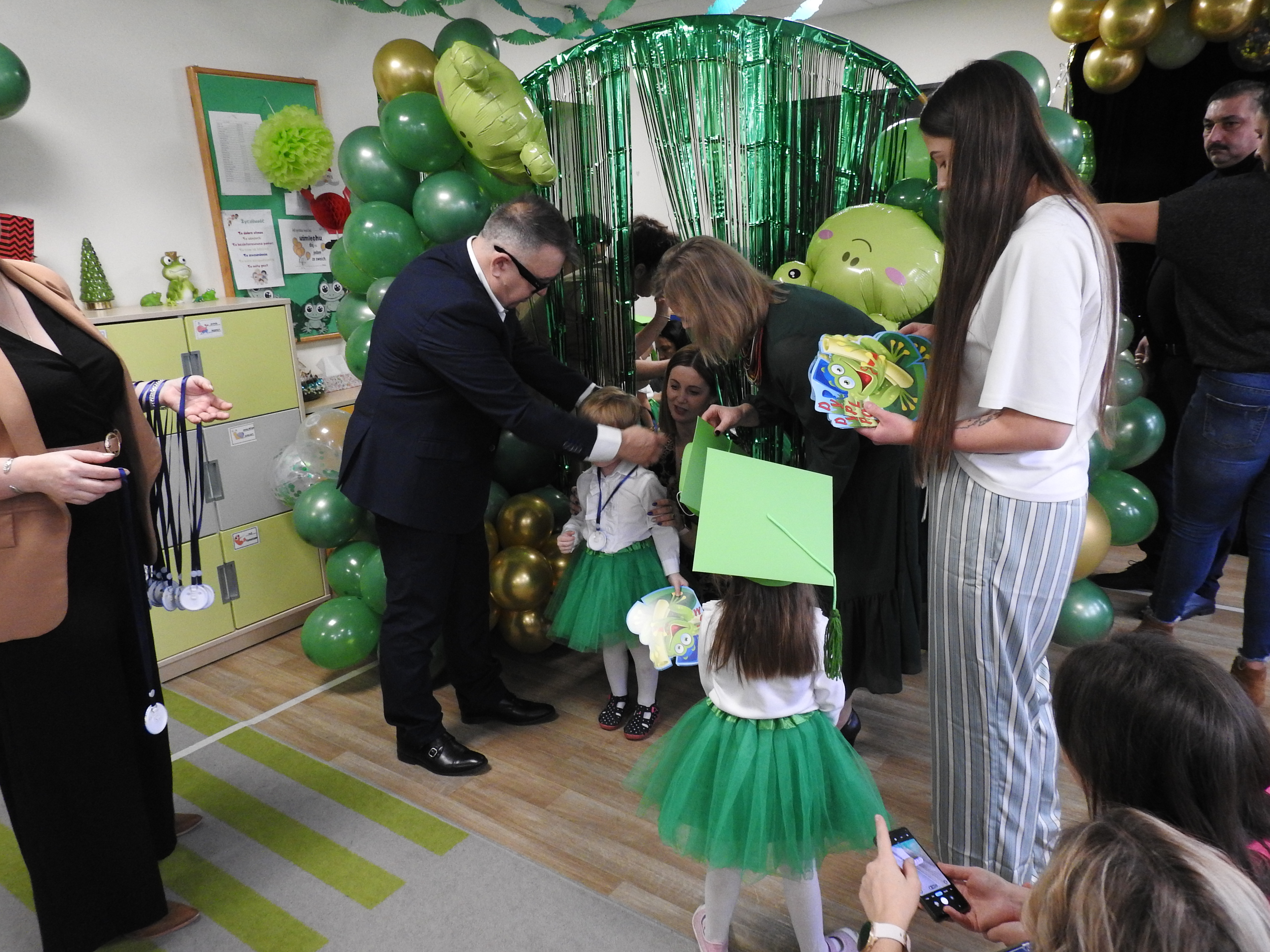 10 GRUDNIA W NASZYM PRZEDSZKOLU ODBYŁO SIĘ UROCZYSTE PASOWANIE NA PRZEDSZKOLAKA DZIECI Z GRUPY "ŻABKI". Z TEJ OKAZJI RODZICE PIĘKNIE PRZYSTROILI SALĘ PRZEDSZKOLNĄ I POMOGLI W PRZYGOTOWANIU DZIECI DO TAK WAŻNEJ W ICH ŻYCIU ZMIANY. ZAPROSILIŚMY GOŚCI: PANA JERZEGO LEWCZUKA BURMISTRZA MIASTA I GMINY IZBICA ORAZ PANIĄ ANETĘ KISTER-KIEŁB DYREKTORA SAMORZĄDOWEGO OŚRODKA OŚWIATY W IZBICY. DZIECI PIĘKNIE ZAPREZENTOWAŁY SIĘ WIERSZEM I PIOSENKĄ. BYŁA RADOŚĆ, WZRUSZENIE I DUMA RODZICÓW ZE SWOICH POCIECH, A ZWIEŃCZENIEM WYDARZENIA BYŁO UROCZYSTE PASOWANIE OKAZAŁYM OŁÓWKIEM I PRZEPYSZNY , PIĘKNY TORT OCZYWIŚCIE Z MOTYWEM ŻABEK.