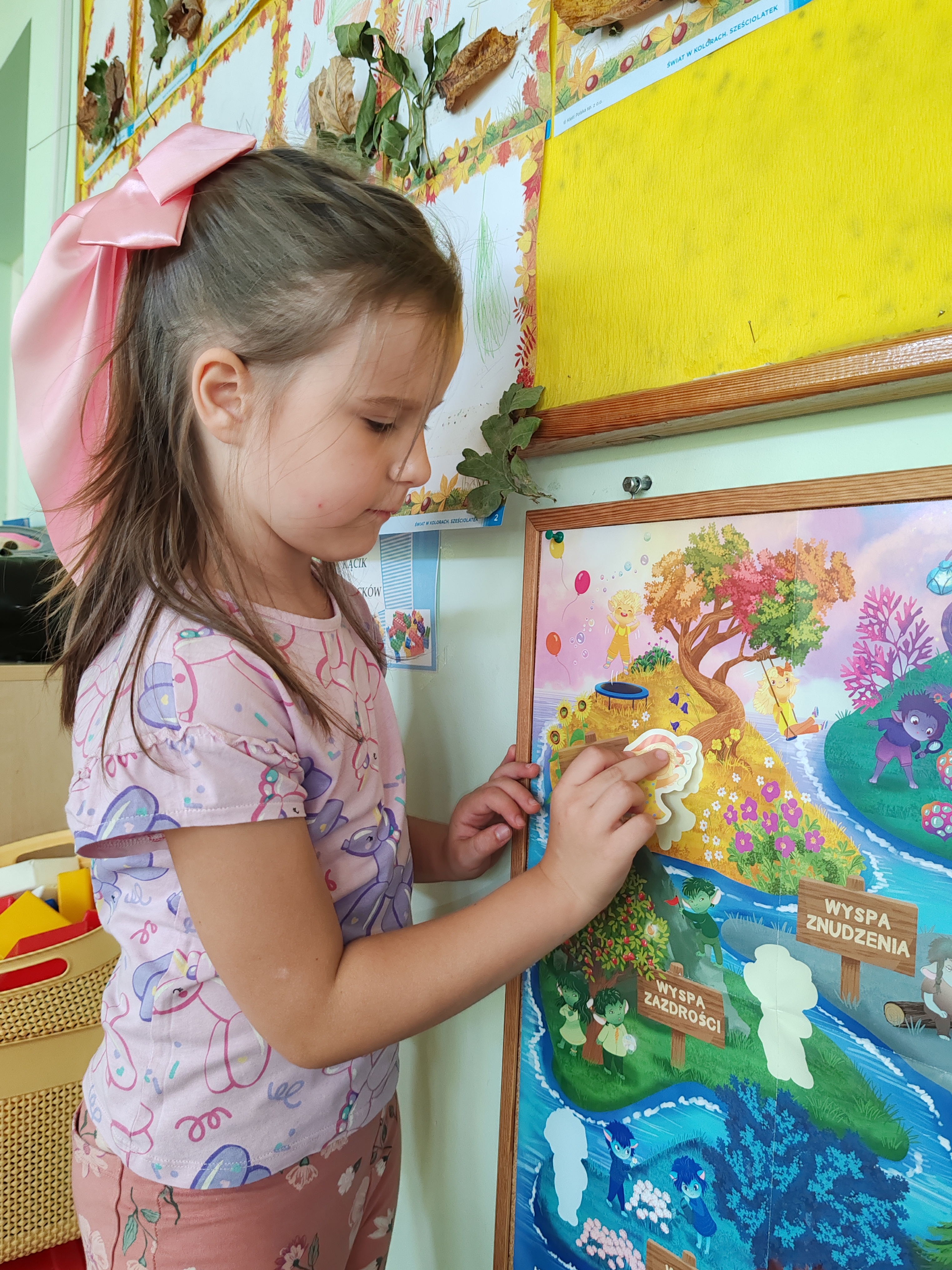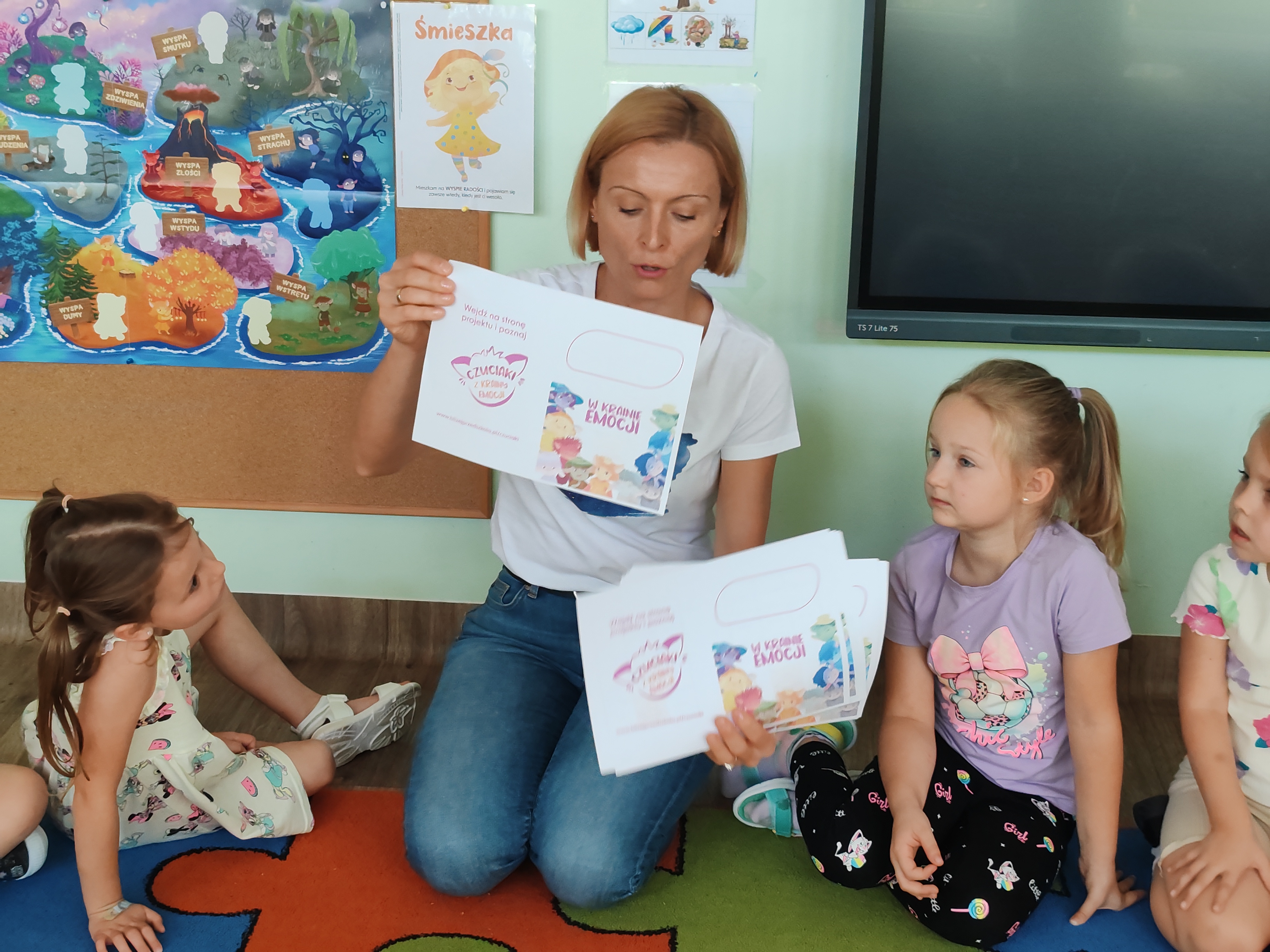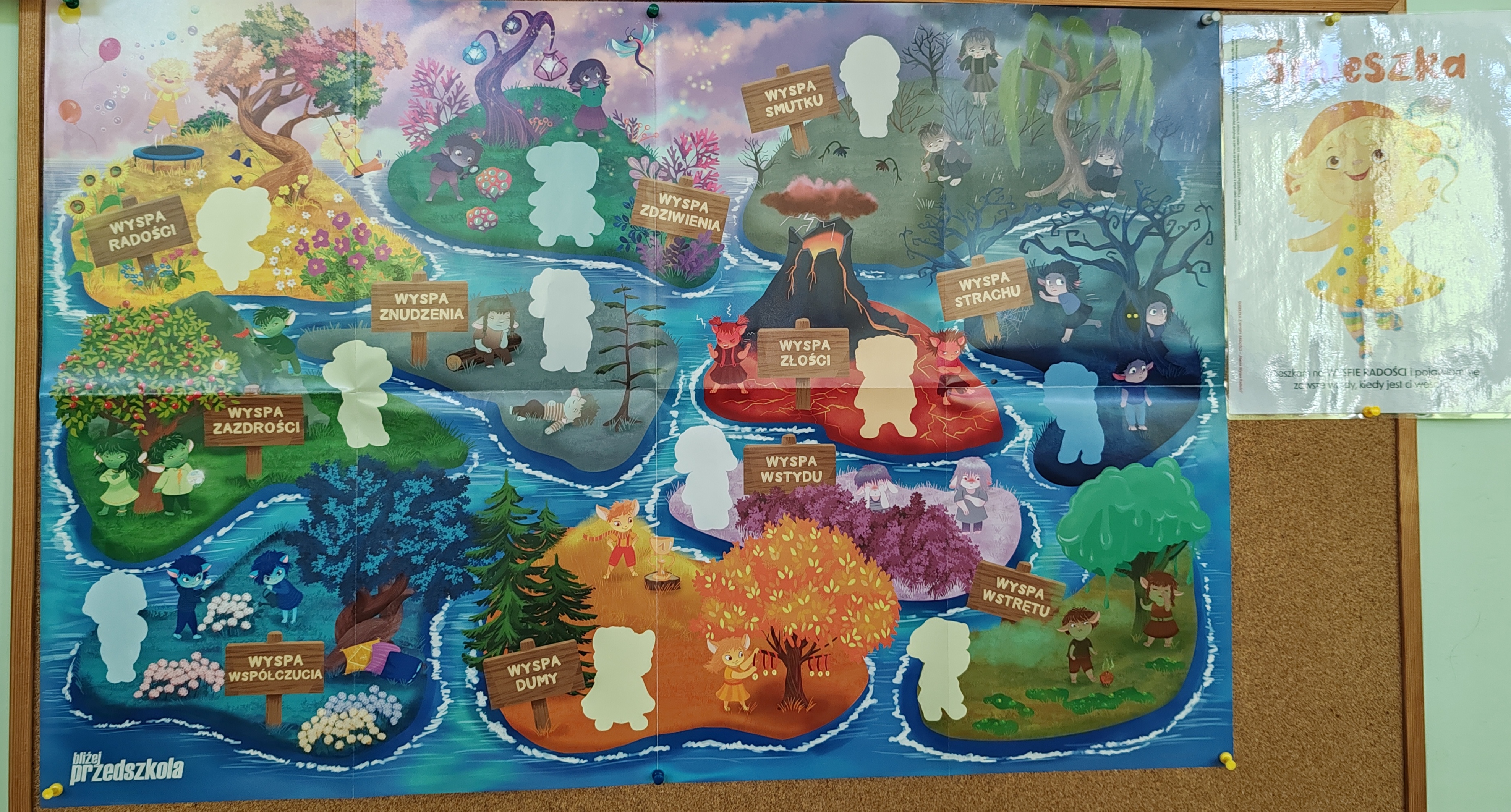 Dzisiaj zrealizowaliśmy pierwsze zadanie z projektu. Dowiedzieliśmy się jakie emocje mieszkają na Wyspie Emocji, poznaliśmy Śmieszkę oraz dowiedzieliśmy się co to są emocje, jak je rozpoznać. Dzieci dostały książeczkę i pierwsza naklejkę do niej. Była również praca plastyczna.