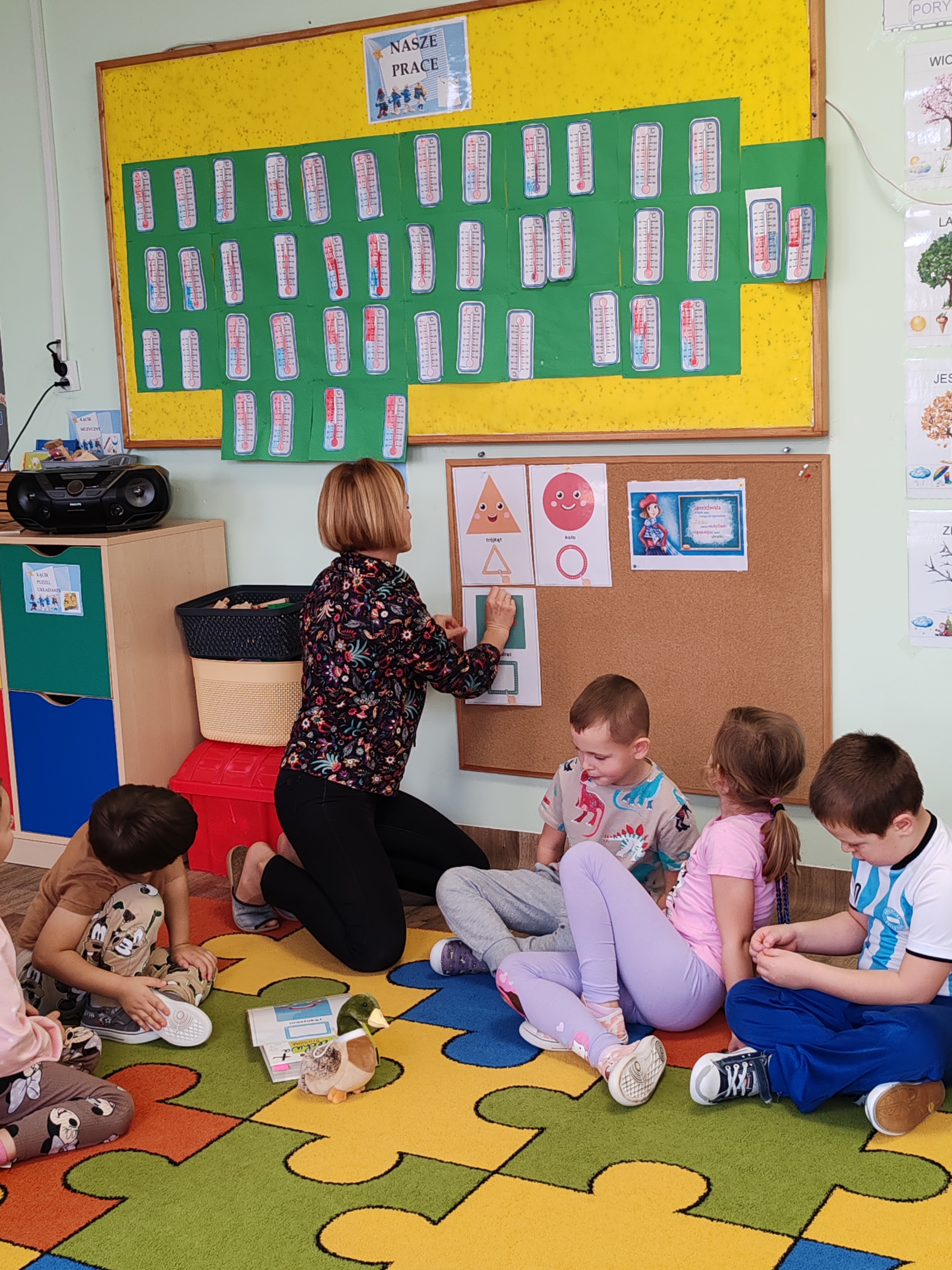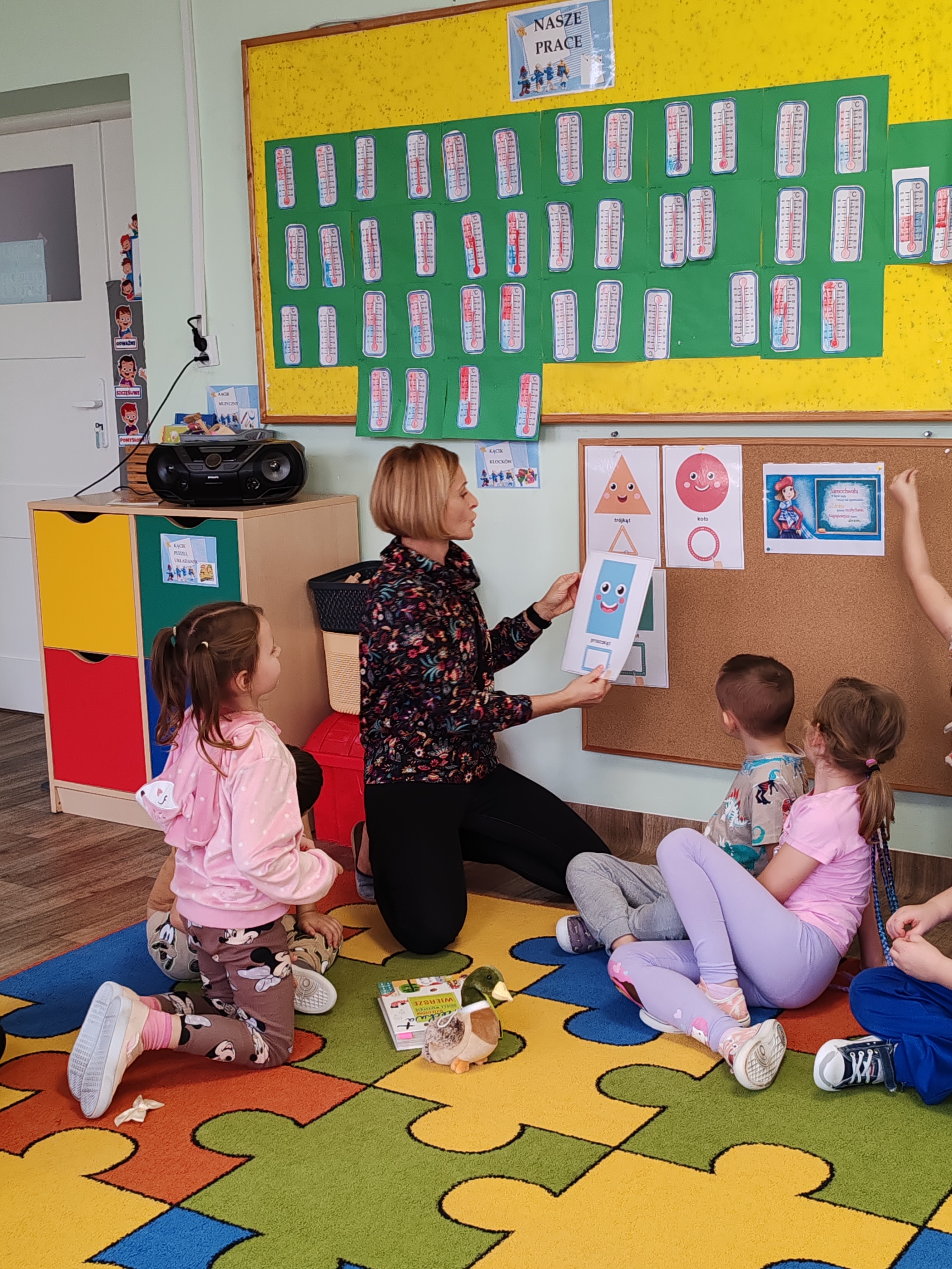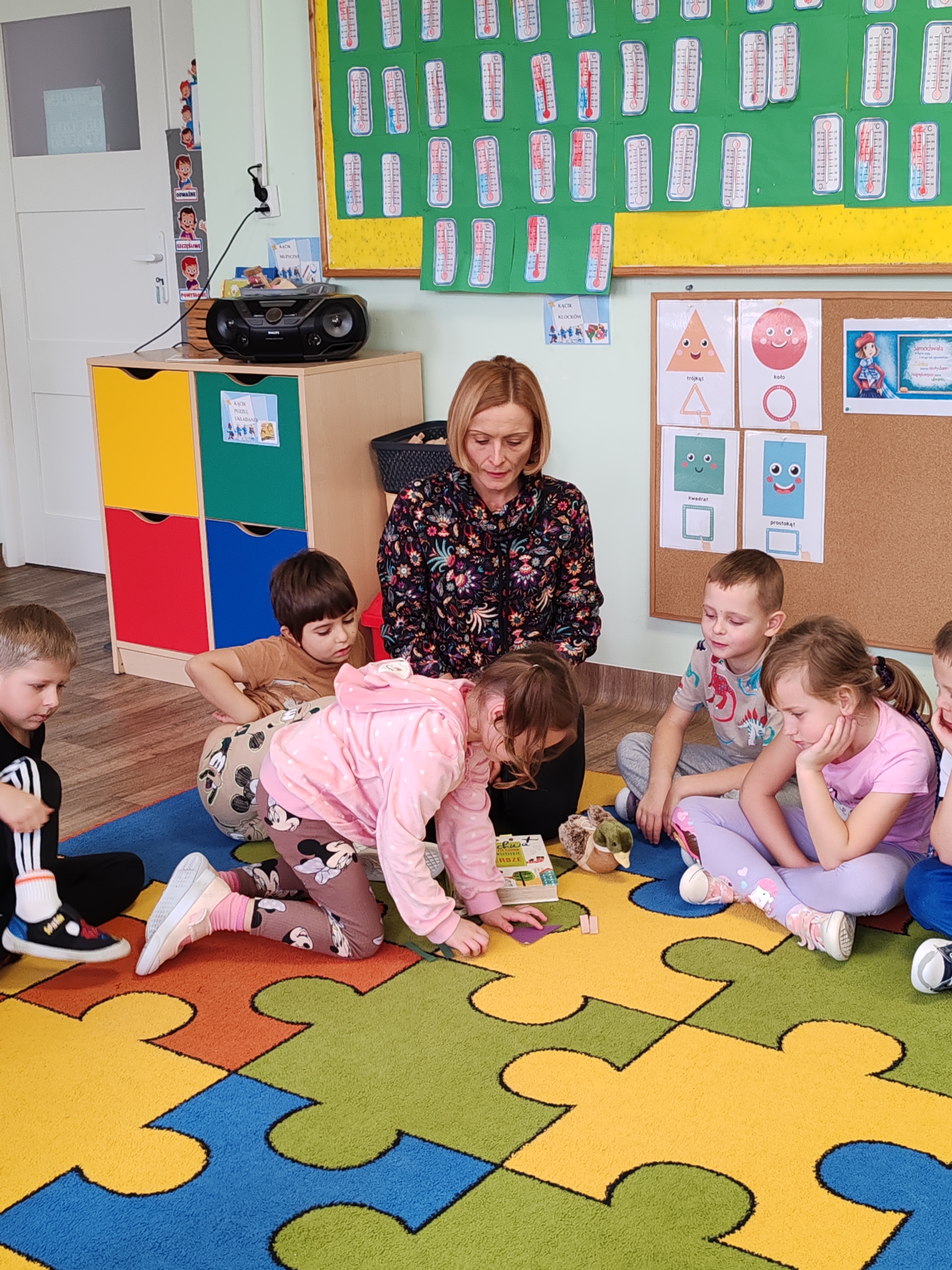 Podczas dzisiejszych zajęć dzieci poznały wiersz pt. "Samochwała" Jana Brzechwy. Rozmawialiśmy o wierszu, wyjaśniliśmy wspólnie tytuł, przedszkolaki z figur geometrycznych układały Samochwałę.