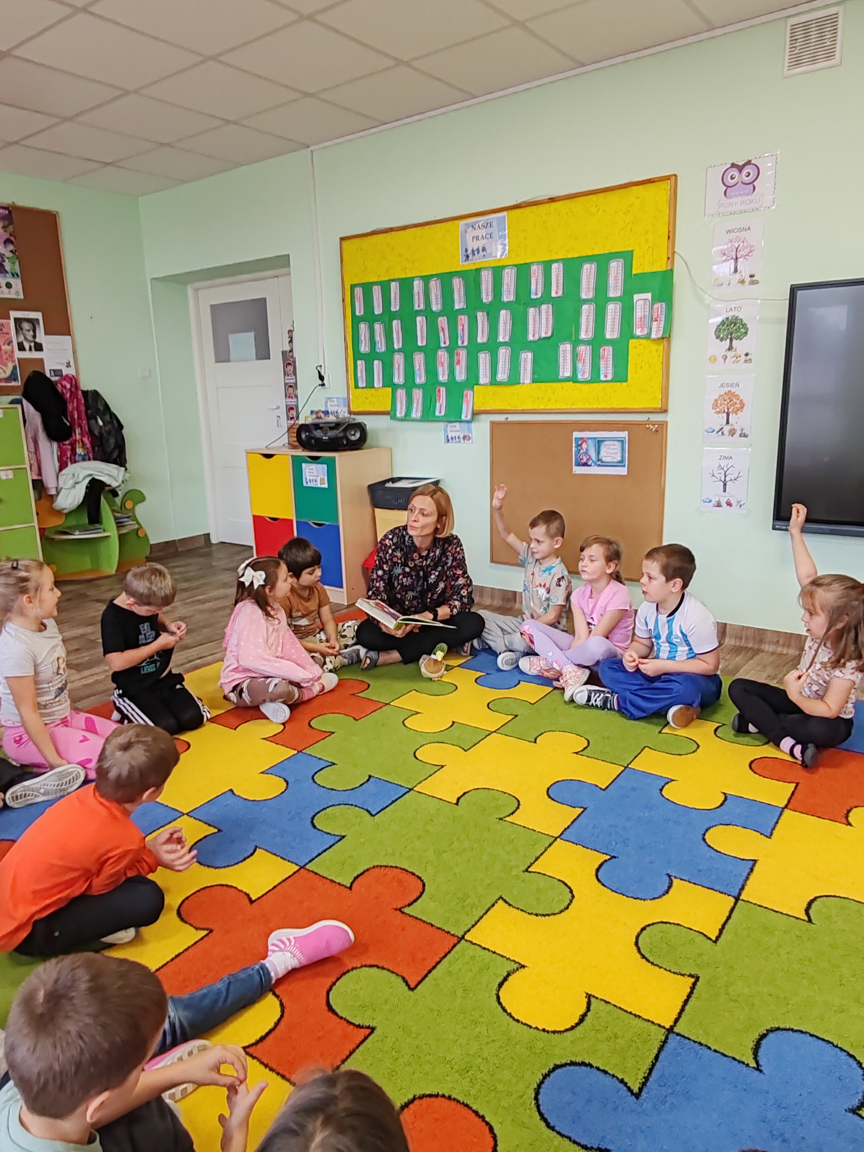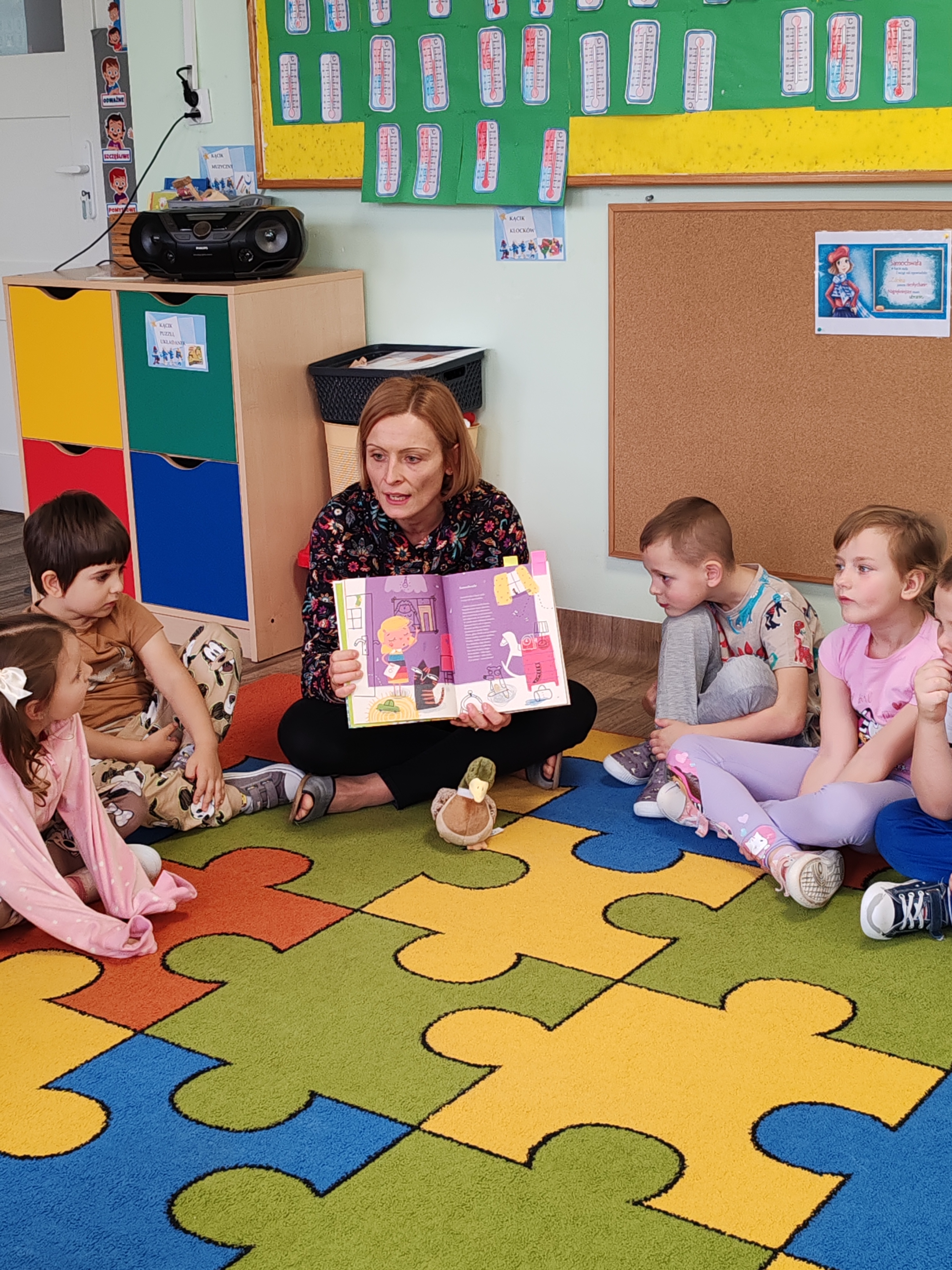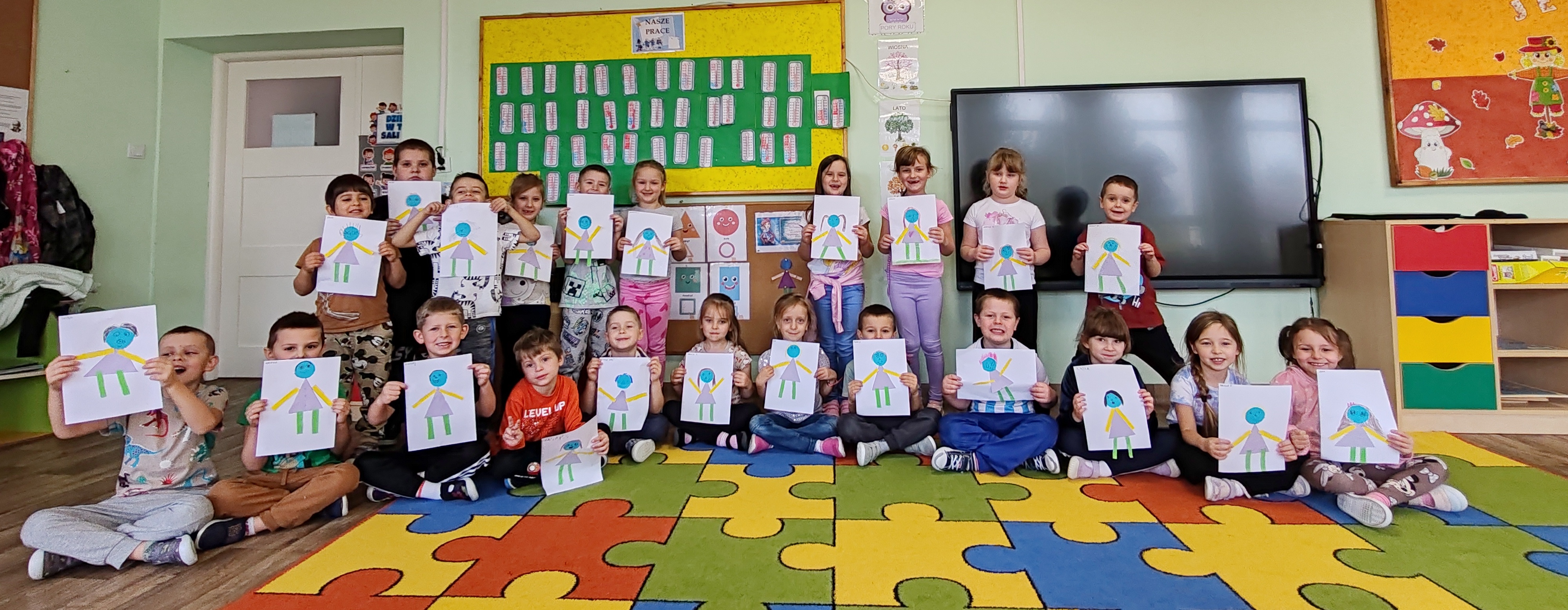 Podczas dzisiejszych zajęć dzieci poznały wiersz pt. "Samochwała" Jana Brzechwy. Rozmawialiśmy o wierszu, wyjaśniliśmy wspólnie tytuł, przedszkolaki z figur geometrycznych układały Samochwałę.