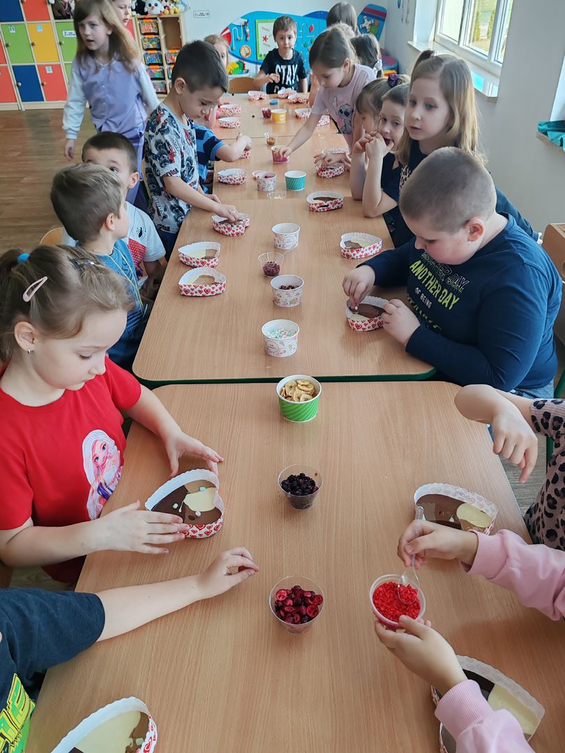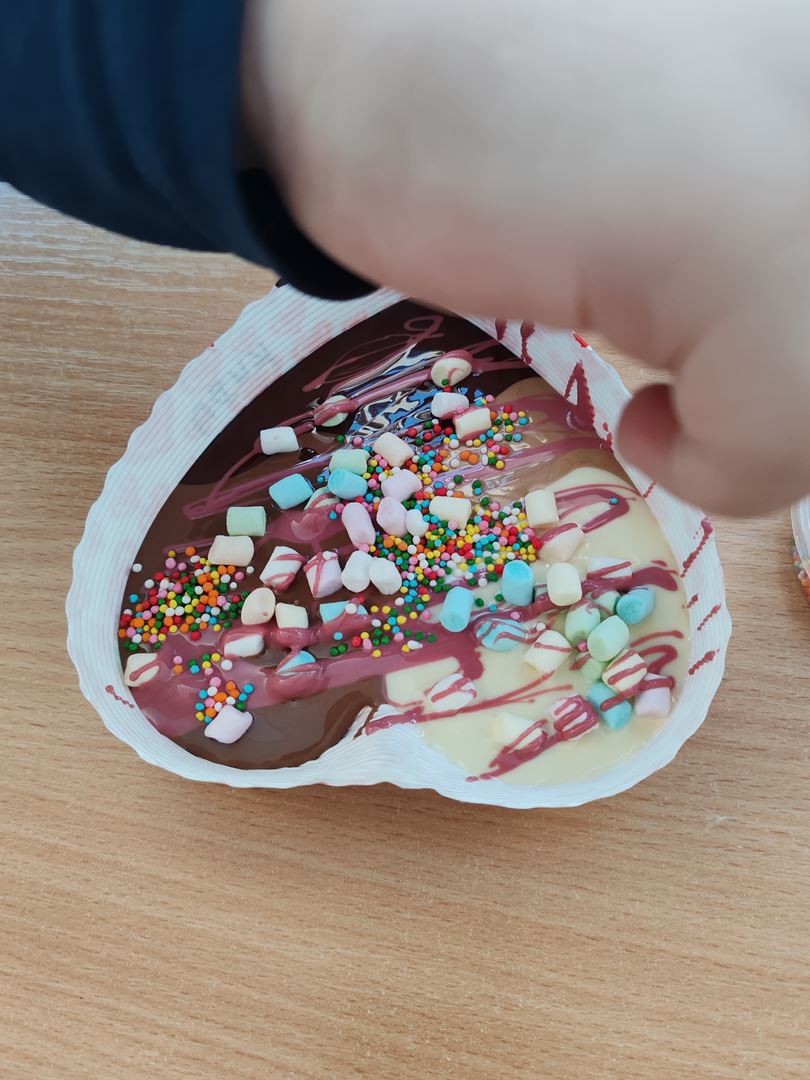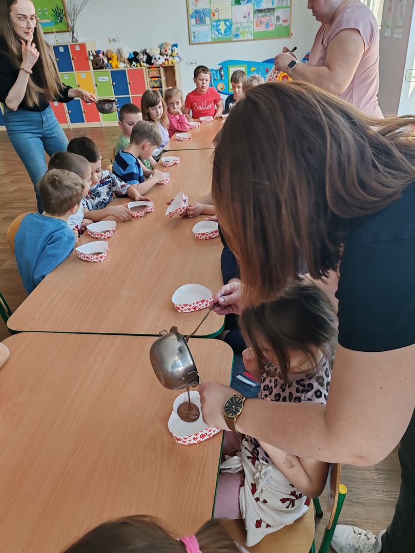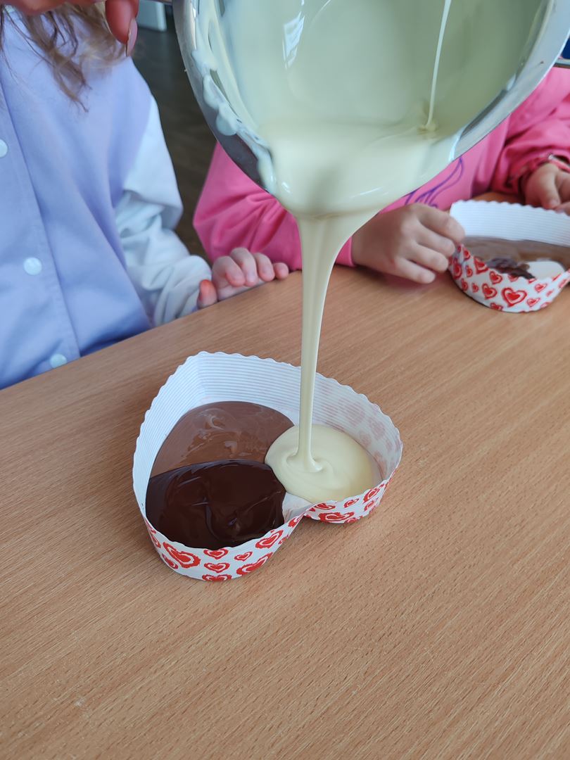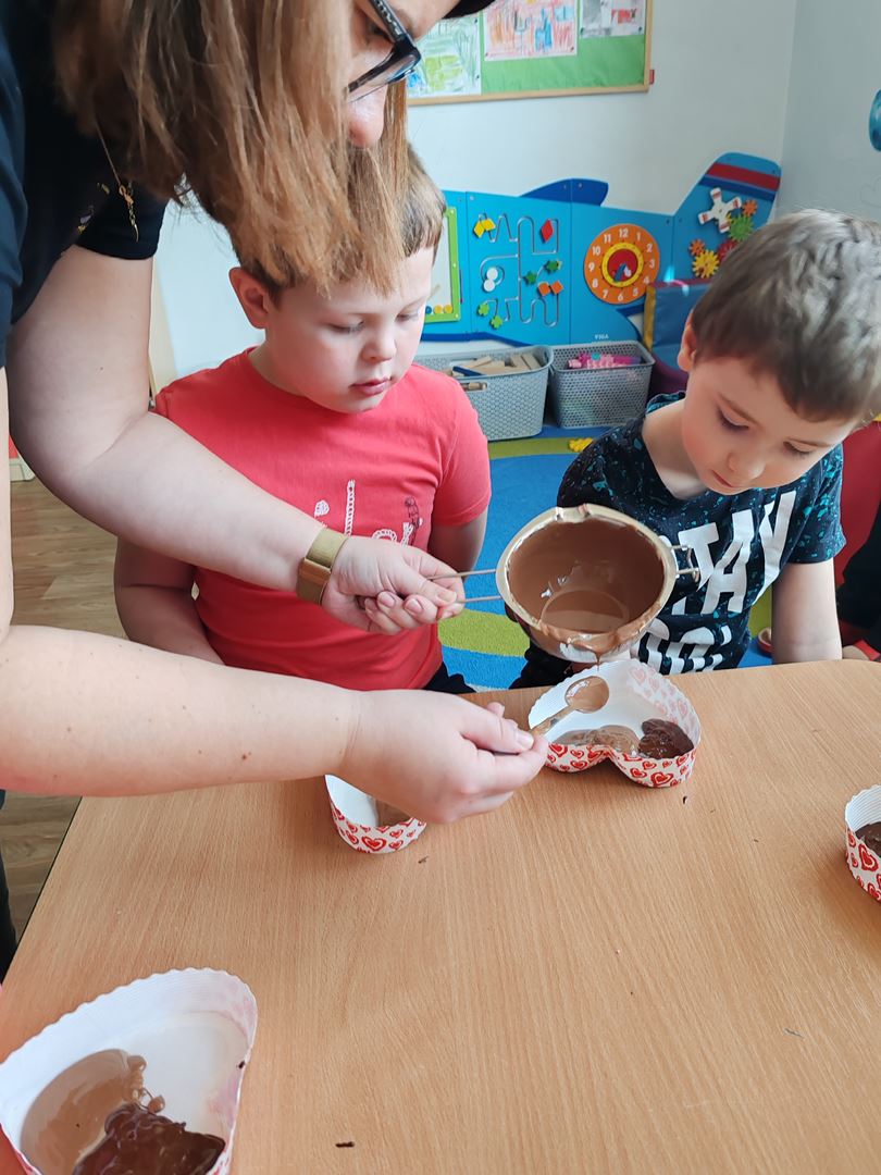 Dzisiaj odbyły się warsztaty czekoladowe. Dzieci miały okazję spróbować różnych czekolad oraz wykonać swoją czekoladę i ja ozdobić.