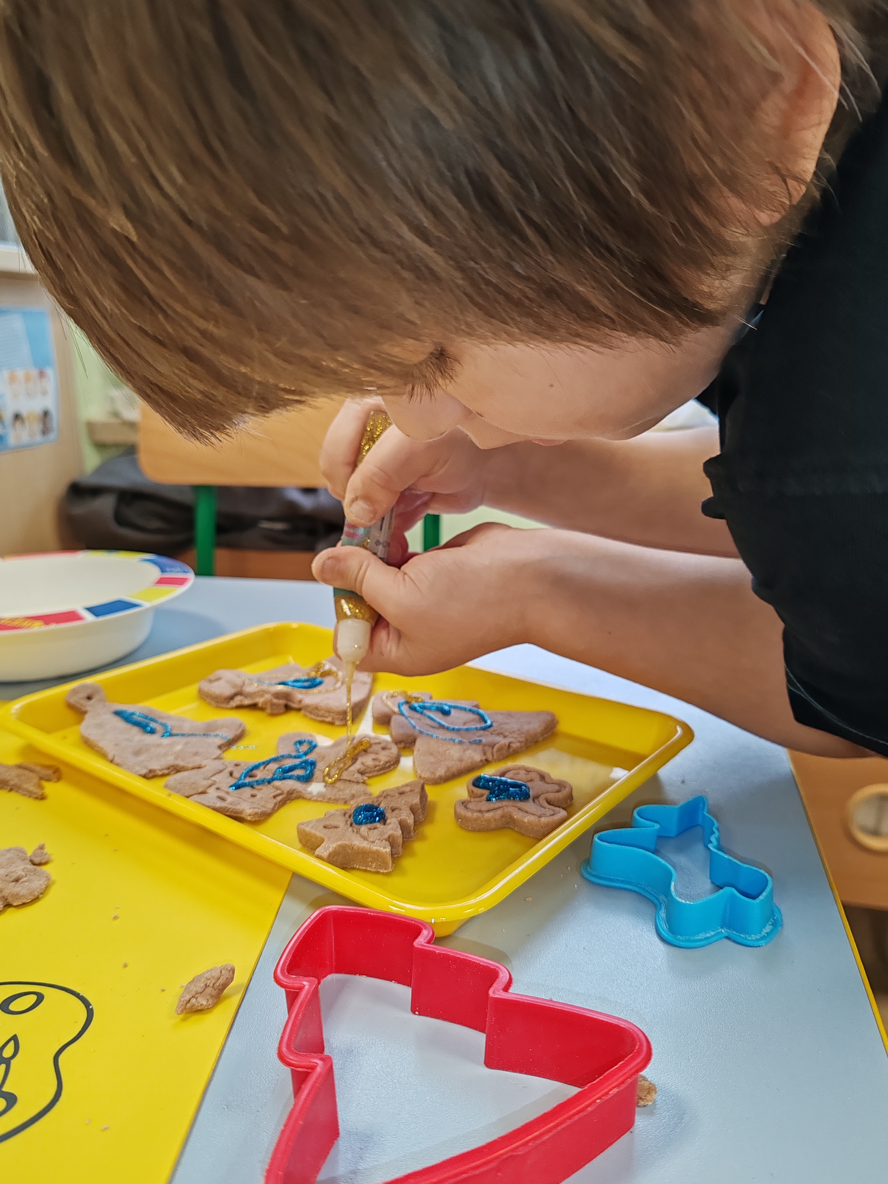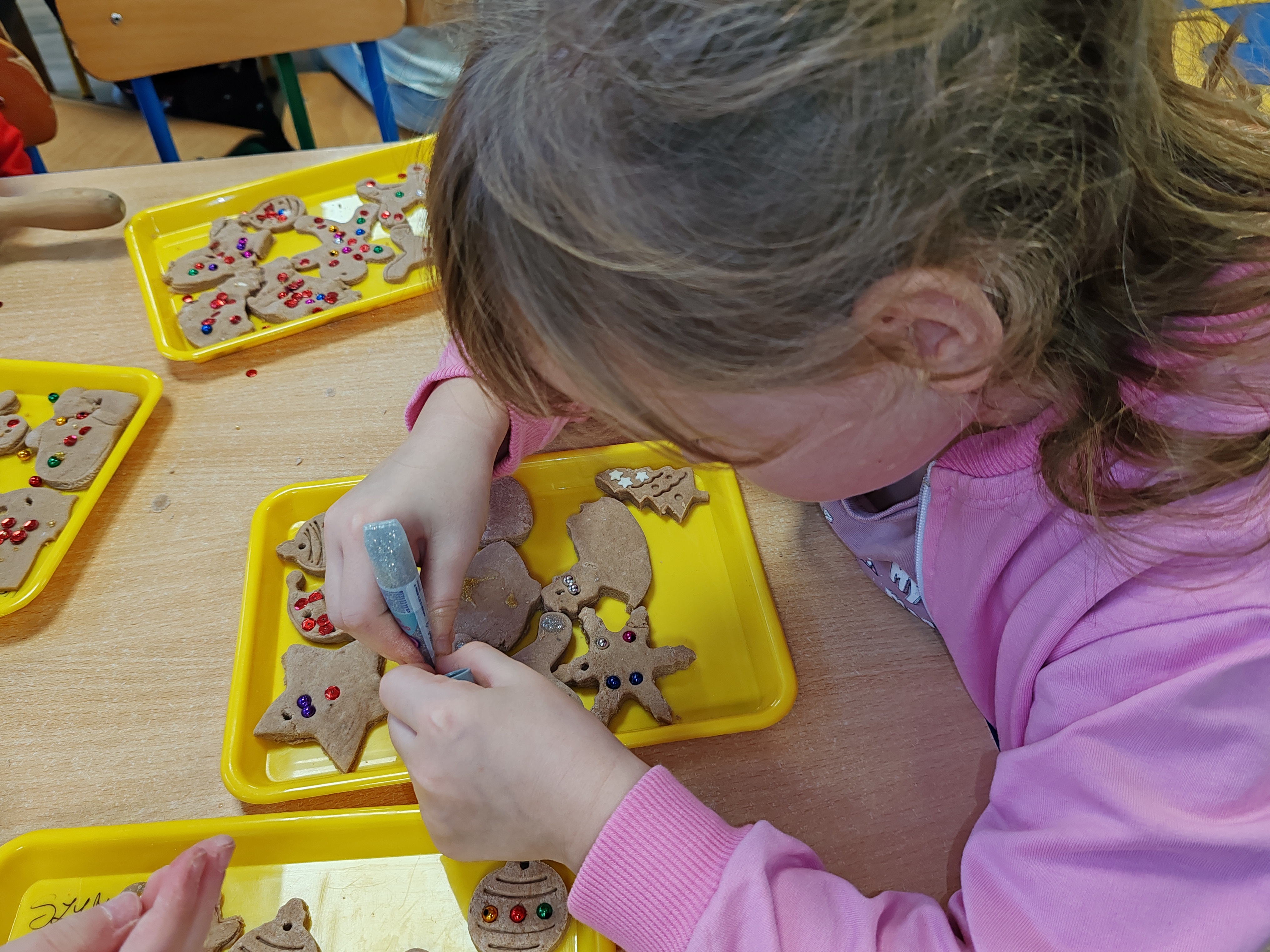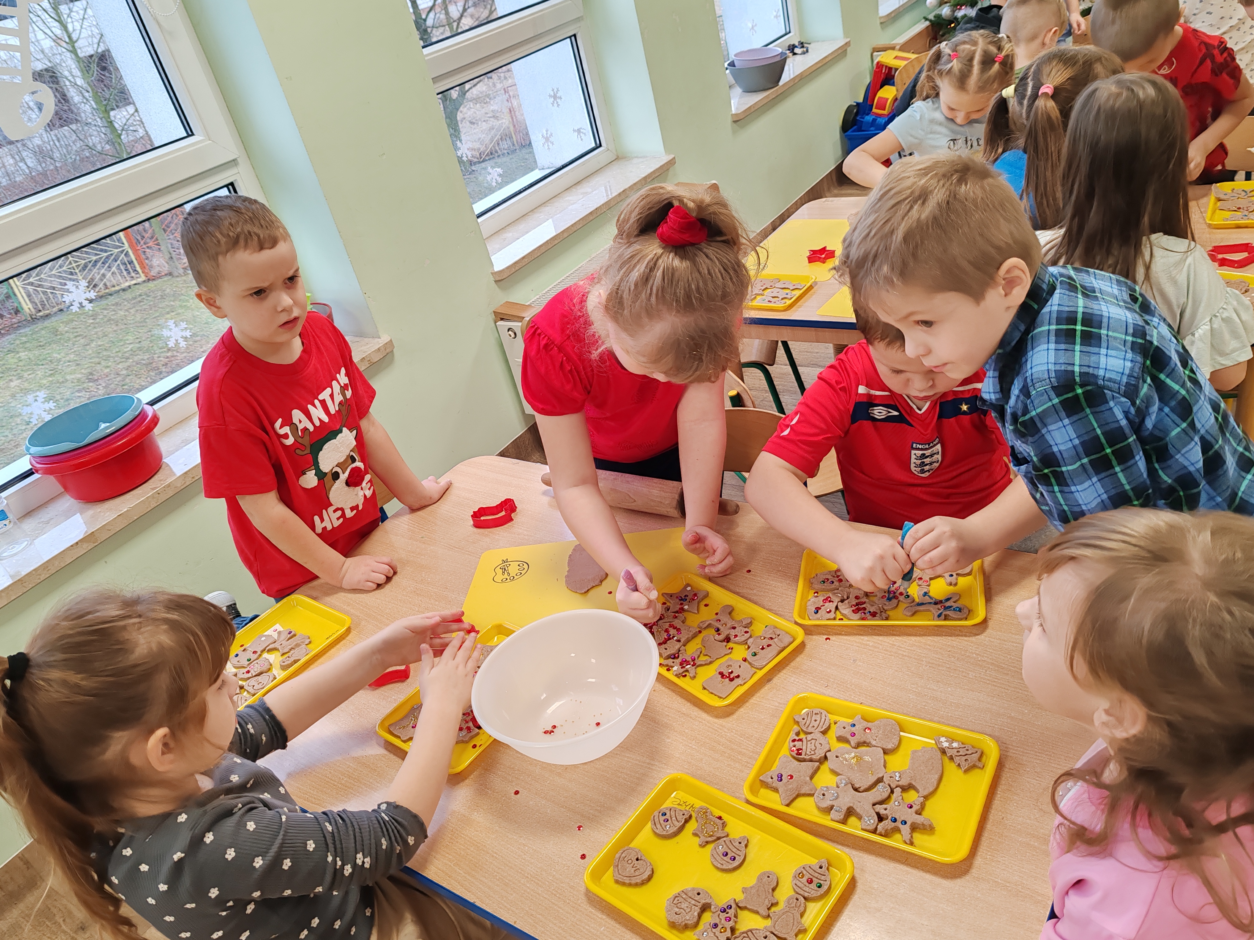 Dzisiaj warsztaty świąteczne przeprowadzila dla naszej grupy p. Kasia - instruktor zajęć plastycznych z SOKIS w Izbicy. Dzieci robiły piernikowe ozdoby na choinkę i brały udział w zabawach ruchowych. Zajęcia upłyneły w miłej atmosferze. Dziękujmy.