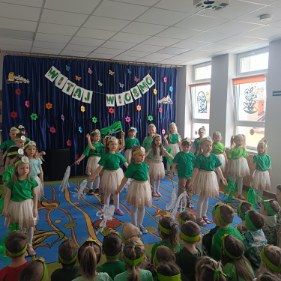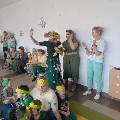 Z okazji Dnia Wiosny w przedszkolu odbył się ,,Wiosenny koncert,,. Wszystkie dzieci z poszczególnych grup z Paniami przygotowały repertuar o tematyce wiosennej. To był miły, wiosenny czas i pojawiła się Pani Wiosna.