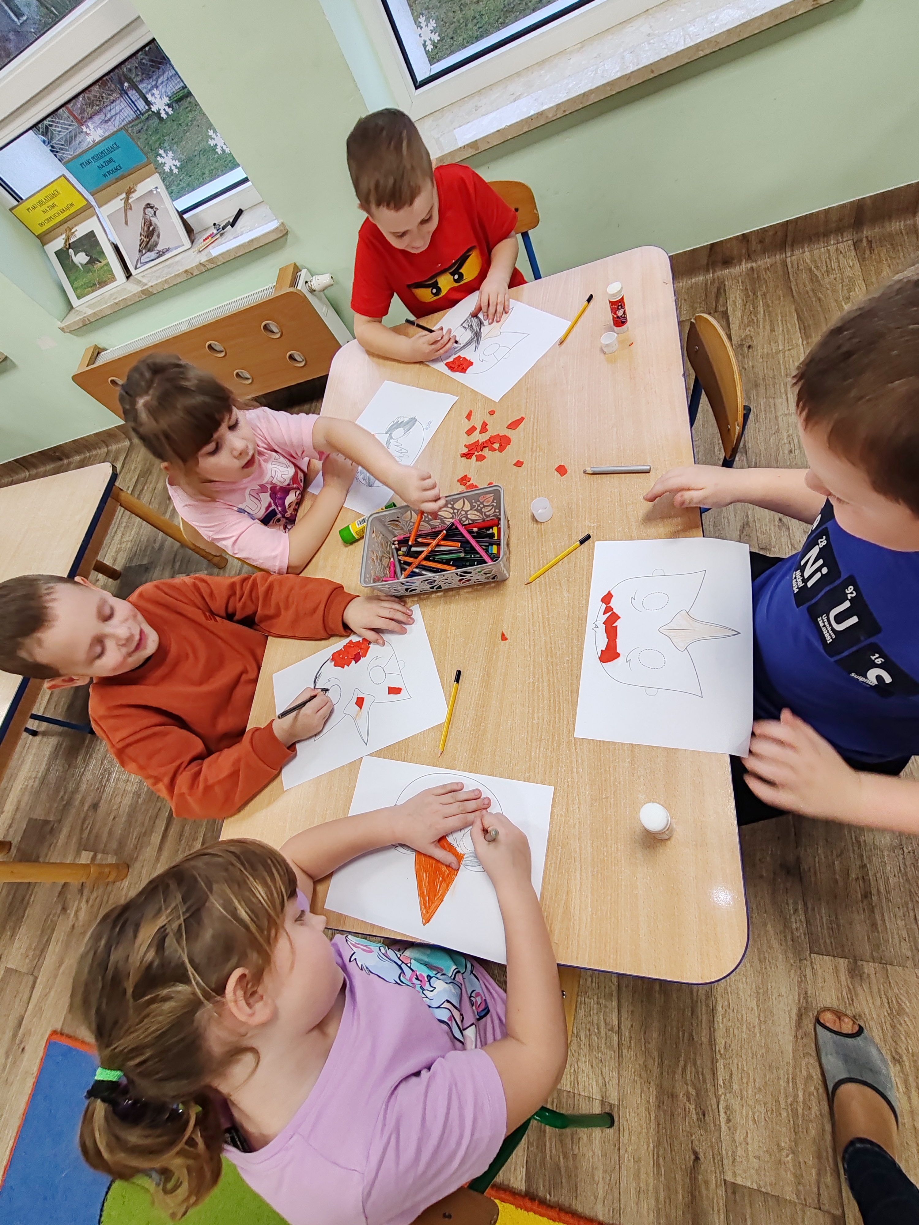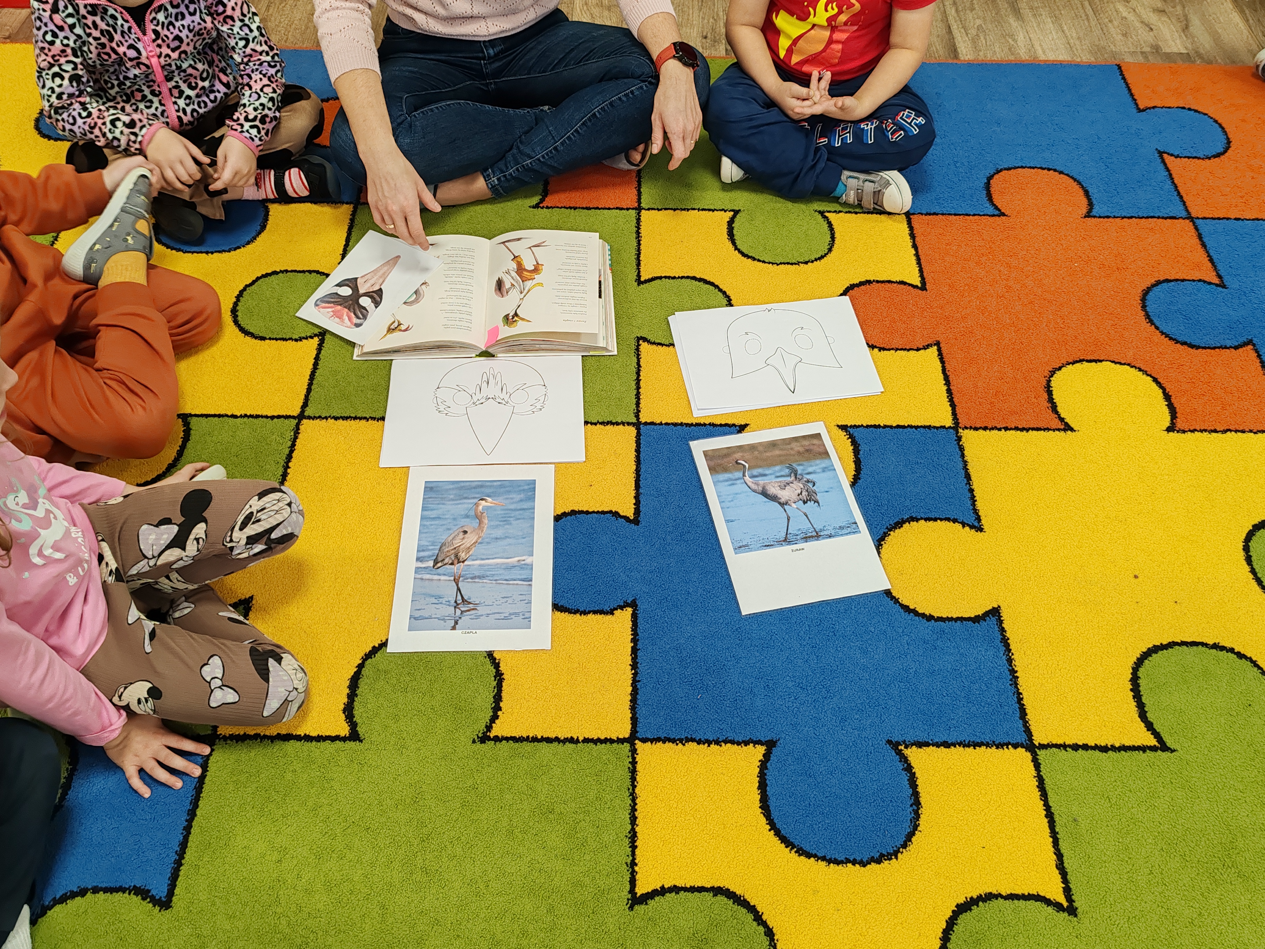 Dzisiaj zrealizowaliśmy kolejne zadanie z projektu czytelniczego. Dzieci wysłuchały wiersza o żurawiu i czapli, rozmawialiśmy o wyglądzie tych ptaków, o tm gdzie żyją, czy mają jakieś cech wspólne i czym się różnią. Dzieci wykonały również maski żurawia i czapli.